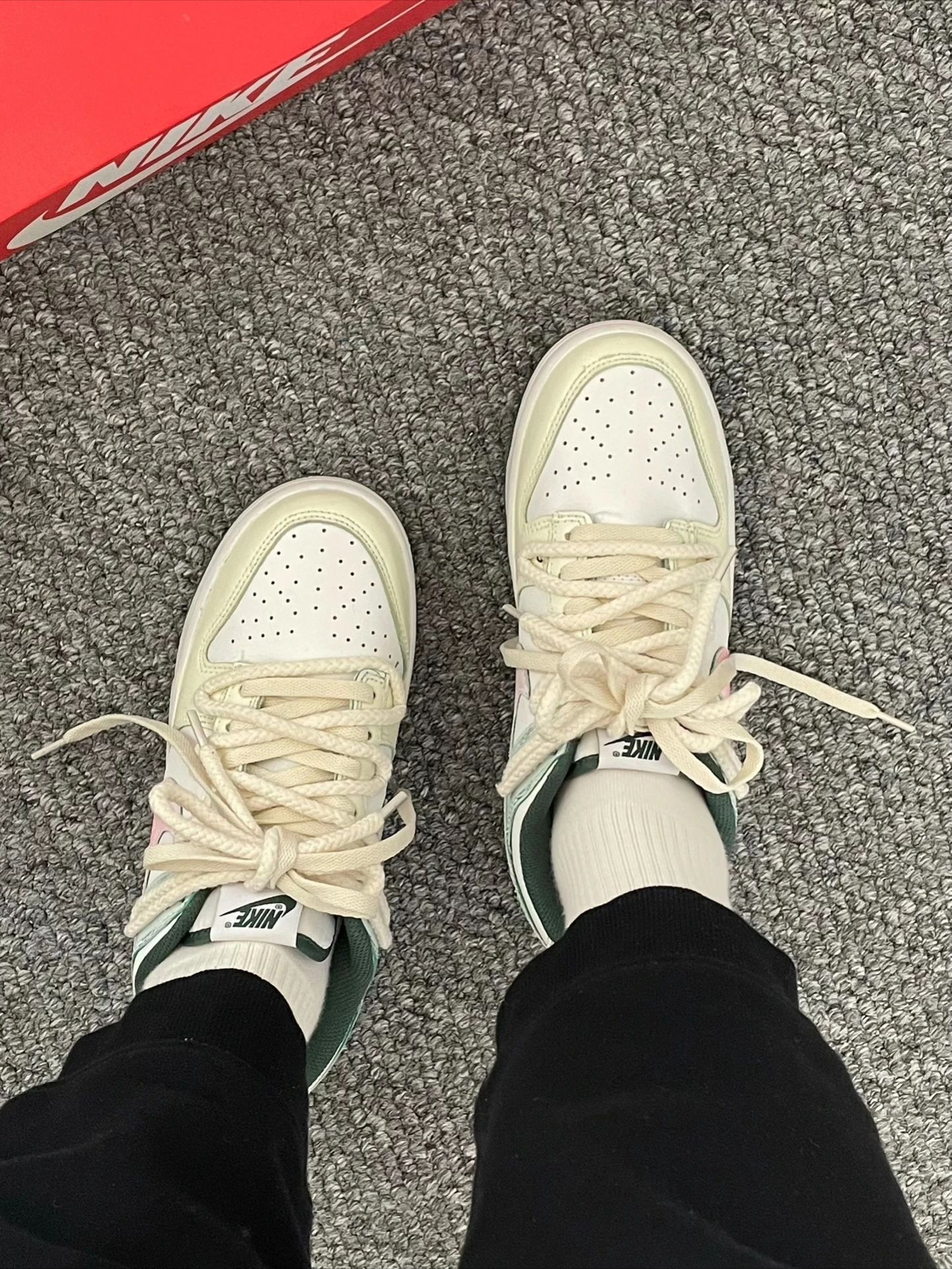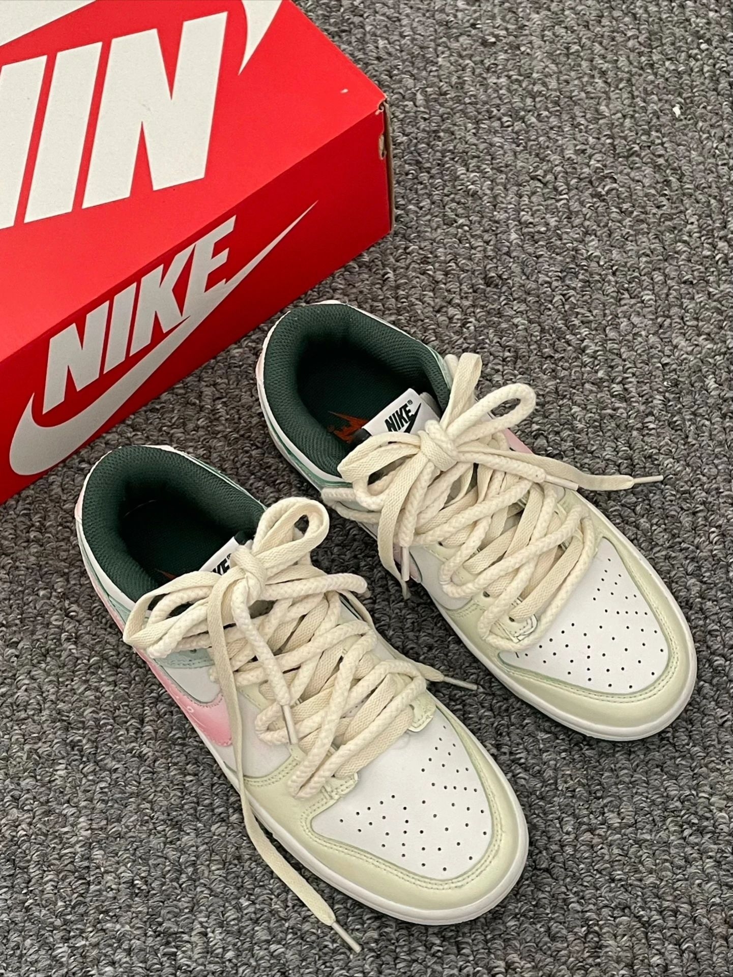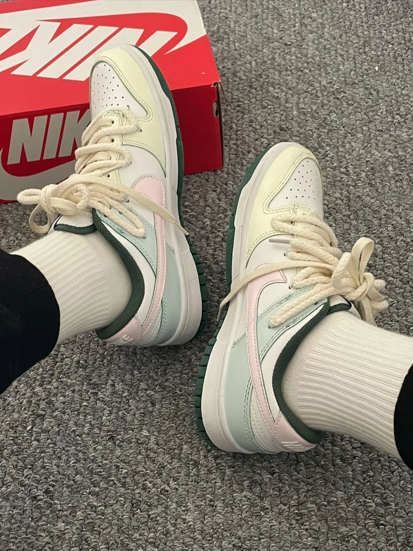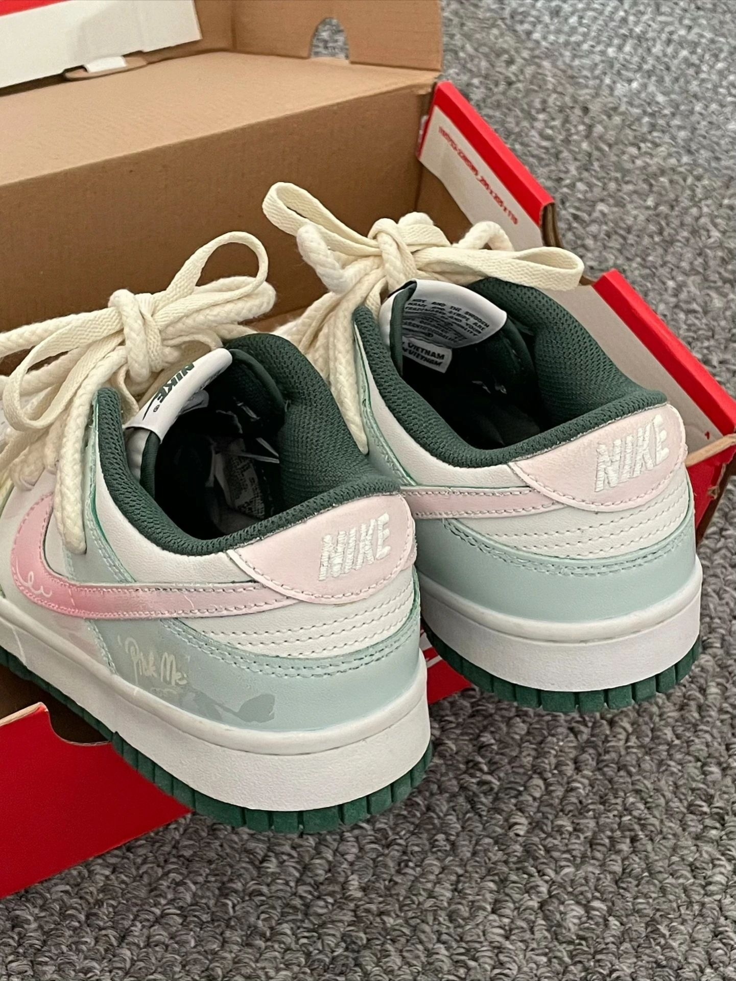 本篇笔记关联了【定制球鞋】 Nike Dunk 板鞋 平跟系带防滑耐磨做旧高街简约百搭潮流复古美式 粉绿春意等商品,为用户提供真实的使用体验和购买参考。