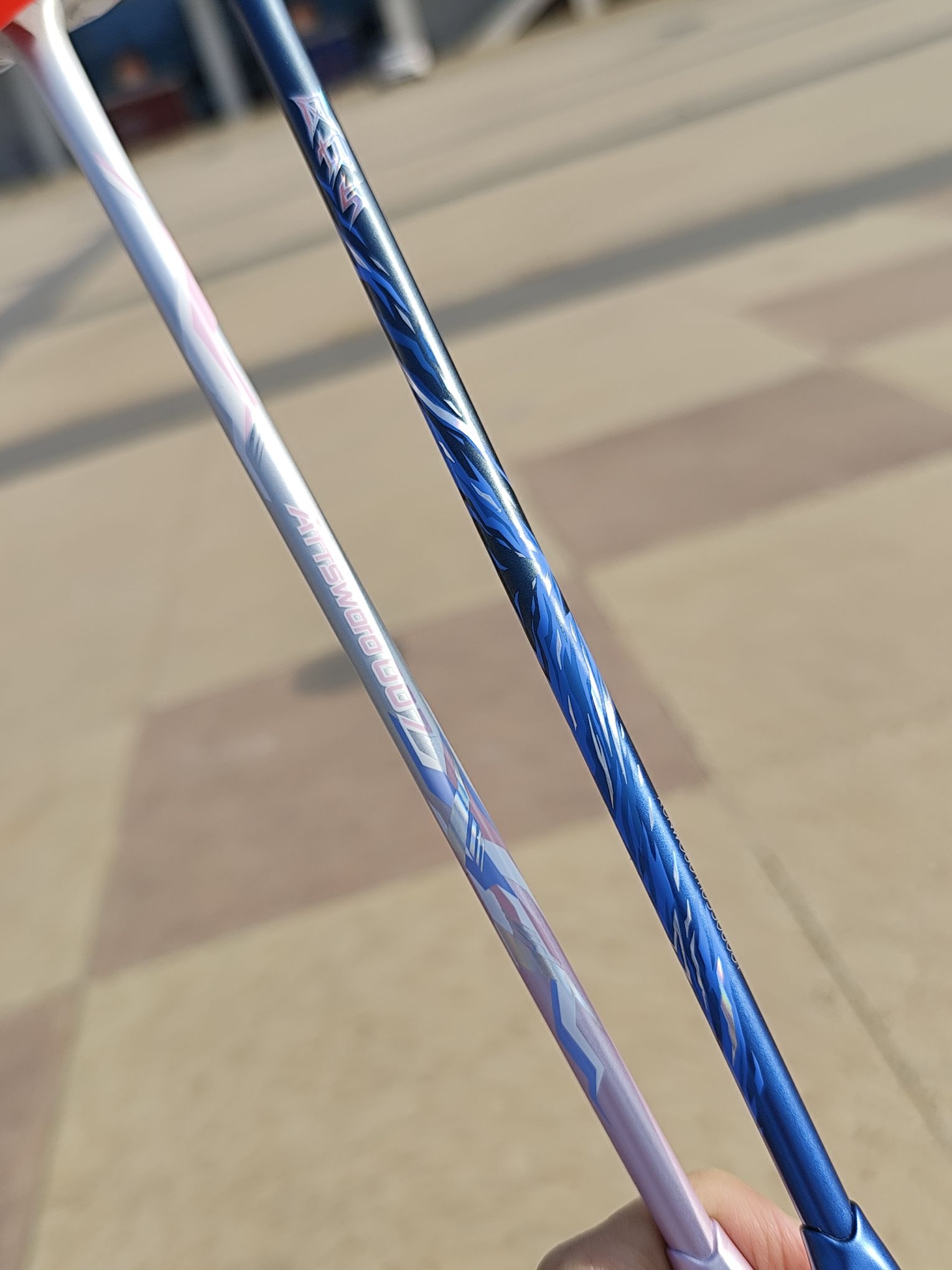 体育馆的羽毛球场地环境比较好,更容易发挥自己的水平。 去体育馆打球,这两支高颜值球拍用哪支好?[耍帅_blue] 我想两支都拿去球场试试。[得意_blue]