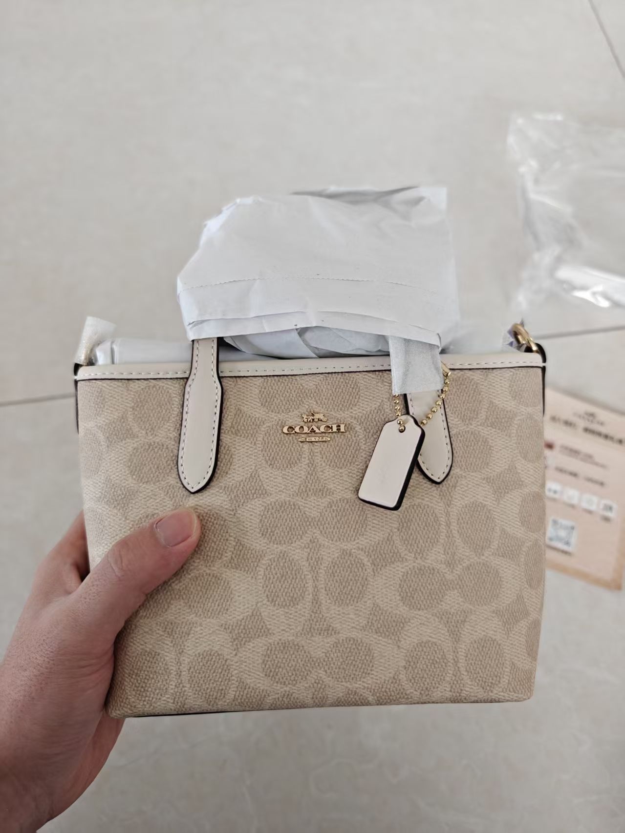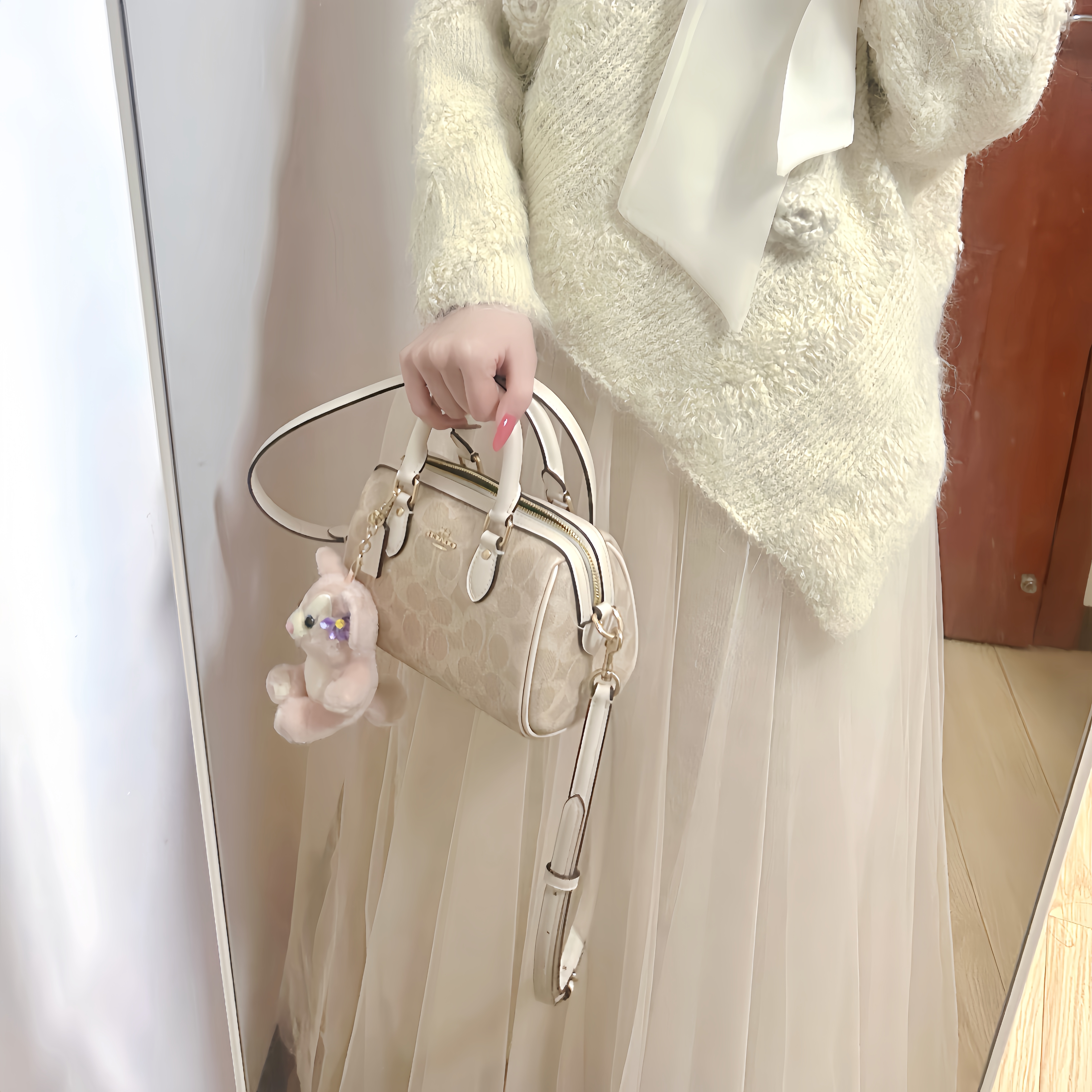 谁能不爱蔻驰的冰川白 真的太好看啦 容量很大 上课通勤首选 放笔记本 平板 书本都妥妥的 日常出门拍照也非常的出片 不知道第一支轻奢选什么 救援蔻驰这款冰川白