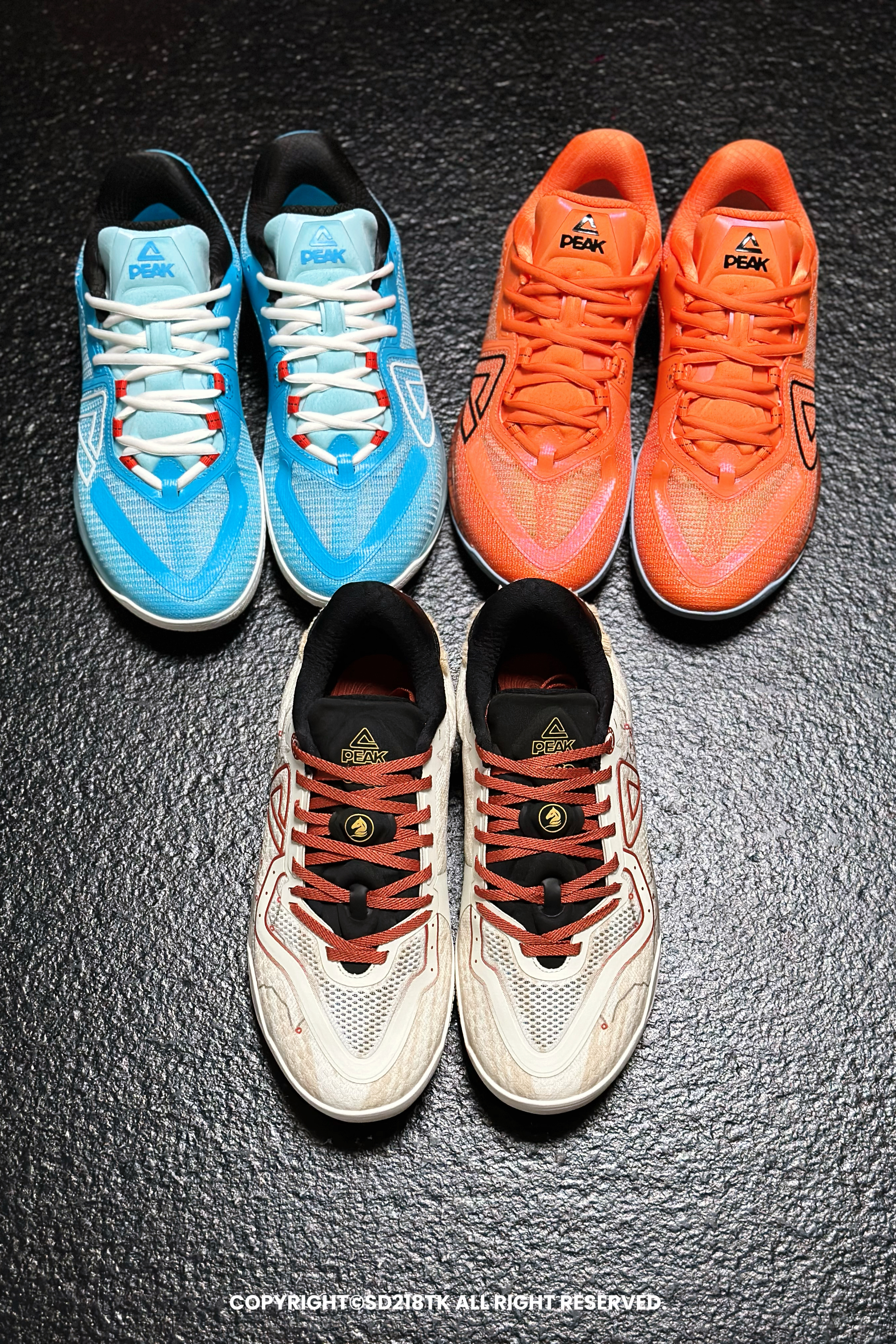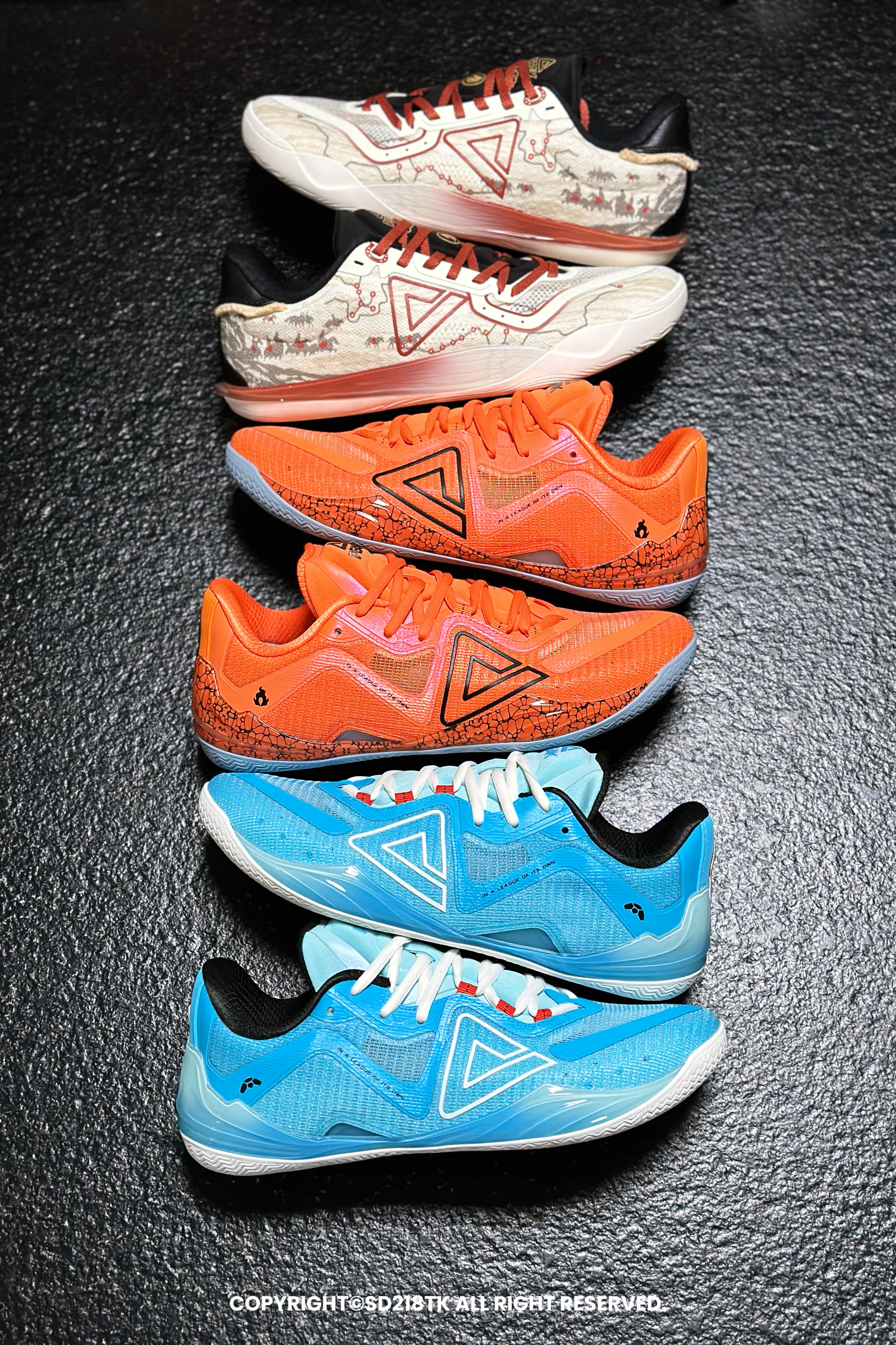 我入的3双匹克无双放一起对比一下,2个无双1个无双EX,无双是最新的熔岩和潮汐配色,无双EX是马年限定配色茶马古道,我觉得主题都很好,各有各的不同,熔岩配色的爆裂纹很酷炫,潮汐配色的渐变蓝很柔和,茶马古道配色则是很有故事性和元素。茶马古道的鞋底我觉得更适合室内场穿着,熔岩和潮汐就更偏向于室外场。这样三双极极致的薄底快靴这么好看你怎么选呢?