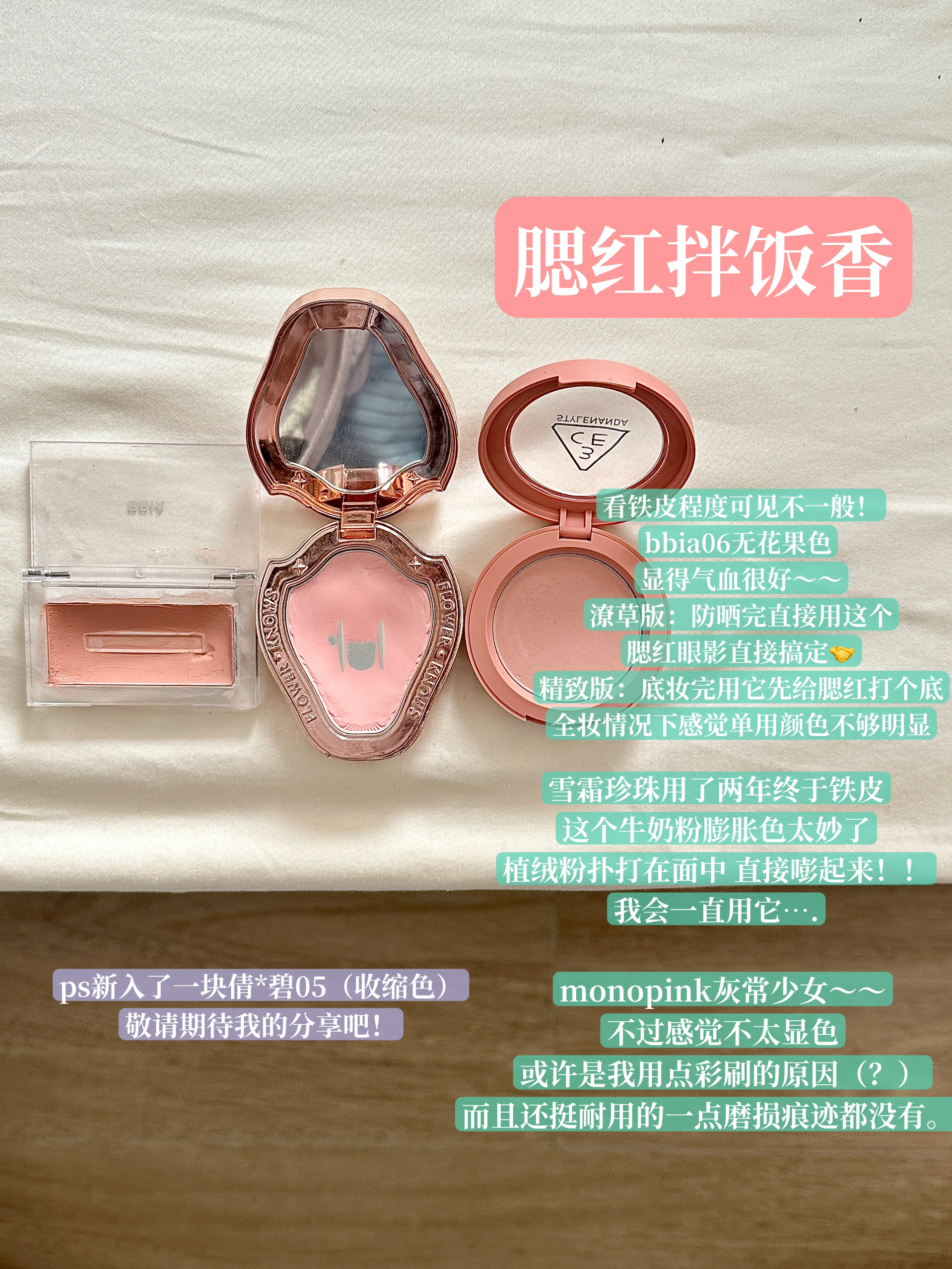 本篇笔记关联了花知晓 独角兽浮雕腮红 清透细腻哑光低饱和 5g 01雪霜珍珠、【油皮】Maybelline/美宝莲 轻亲持妆粉底液 自然服帖雾面 35ml N10象牙白 中调白皙肤色、花知晓 天鹅芭蕾系列六色眼影盘 哑光细闪软糯贴肤粉质细腻 6.5g 01白天鹅等商品,为用户提供真实的使用体验和购买参考。