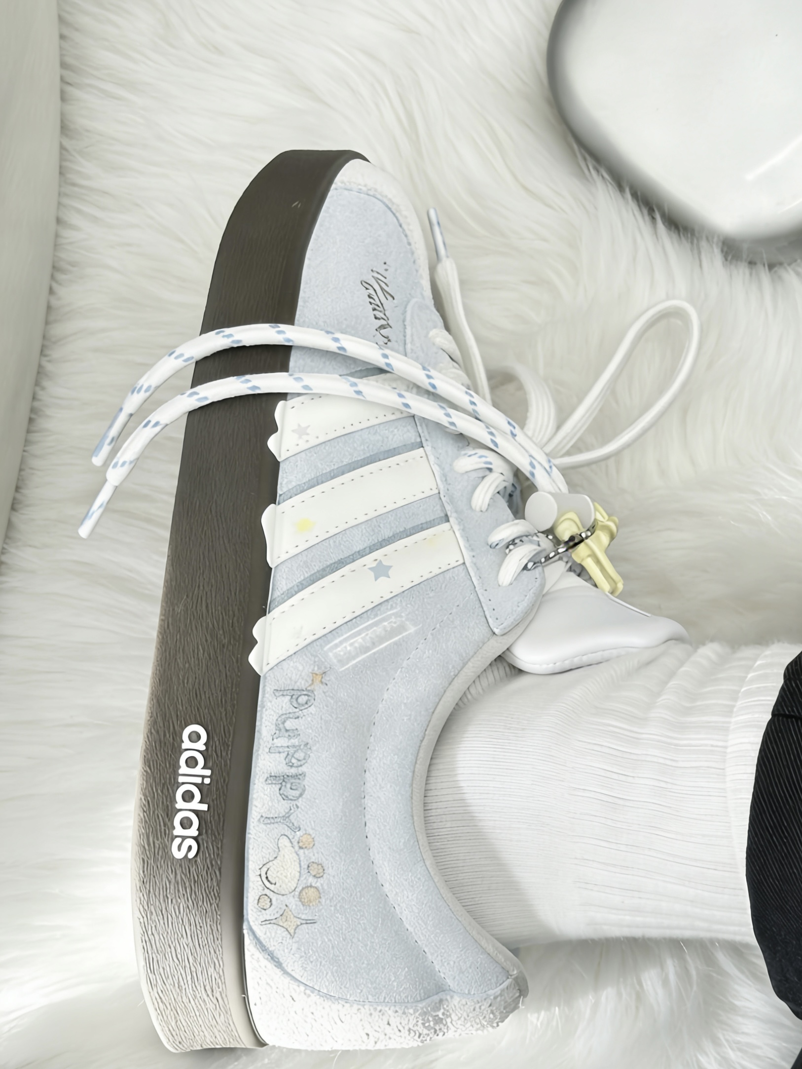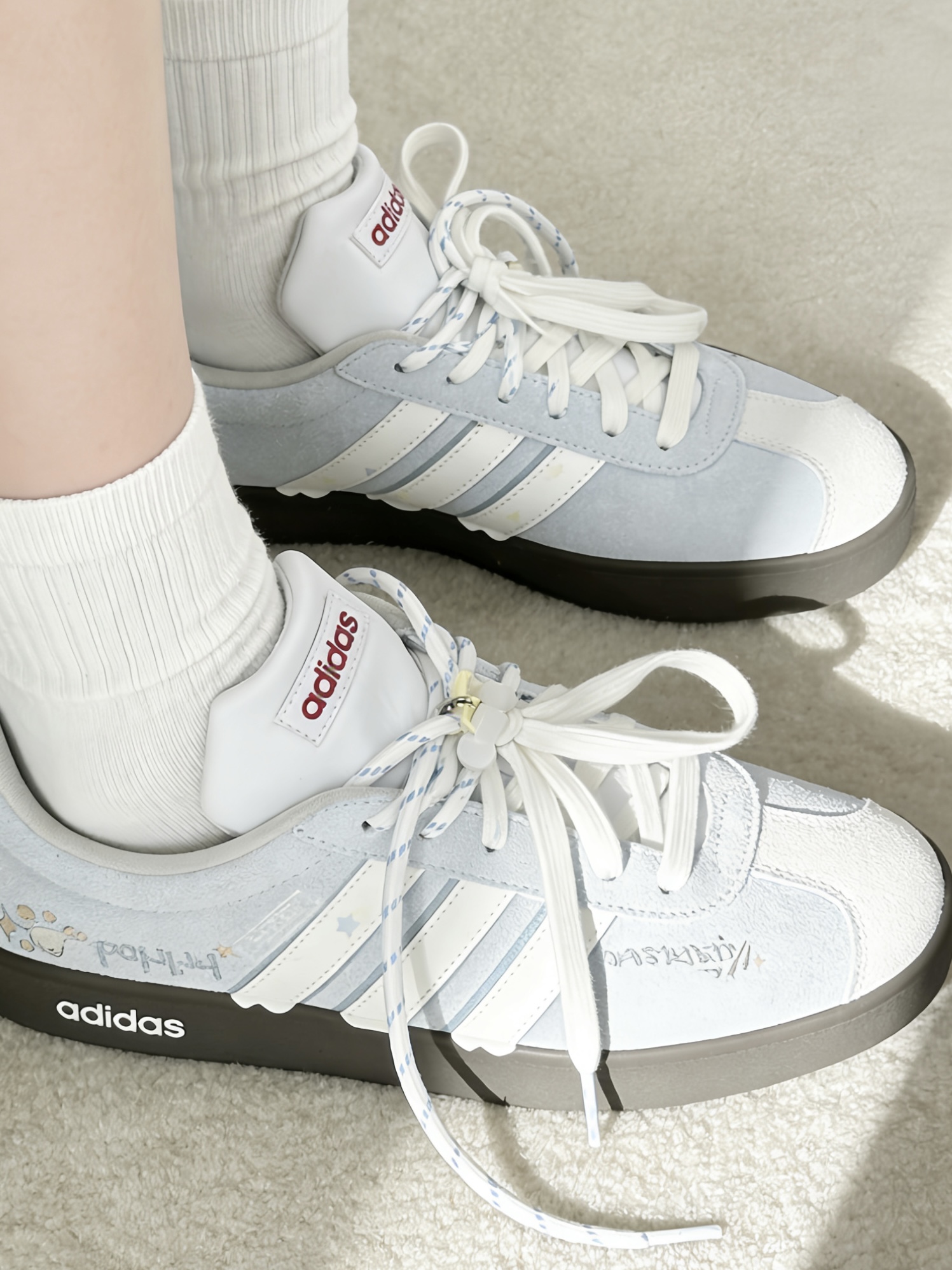 这双浅蓝配色好温柔,看着就舒服。鞋子本身很轻,上脚完全没负担,走再多路脚也不累。那种乖乖巧巧的感觉拿捏住了,搭配碎花裙或者浅色休闲装都好看。逛街或者约会穿它都很加分,虽然浅色得稍微爱惜点,但只要好看这点麻烦算啥