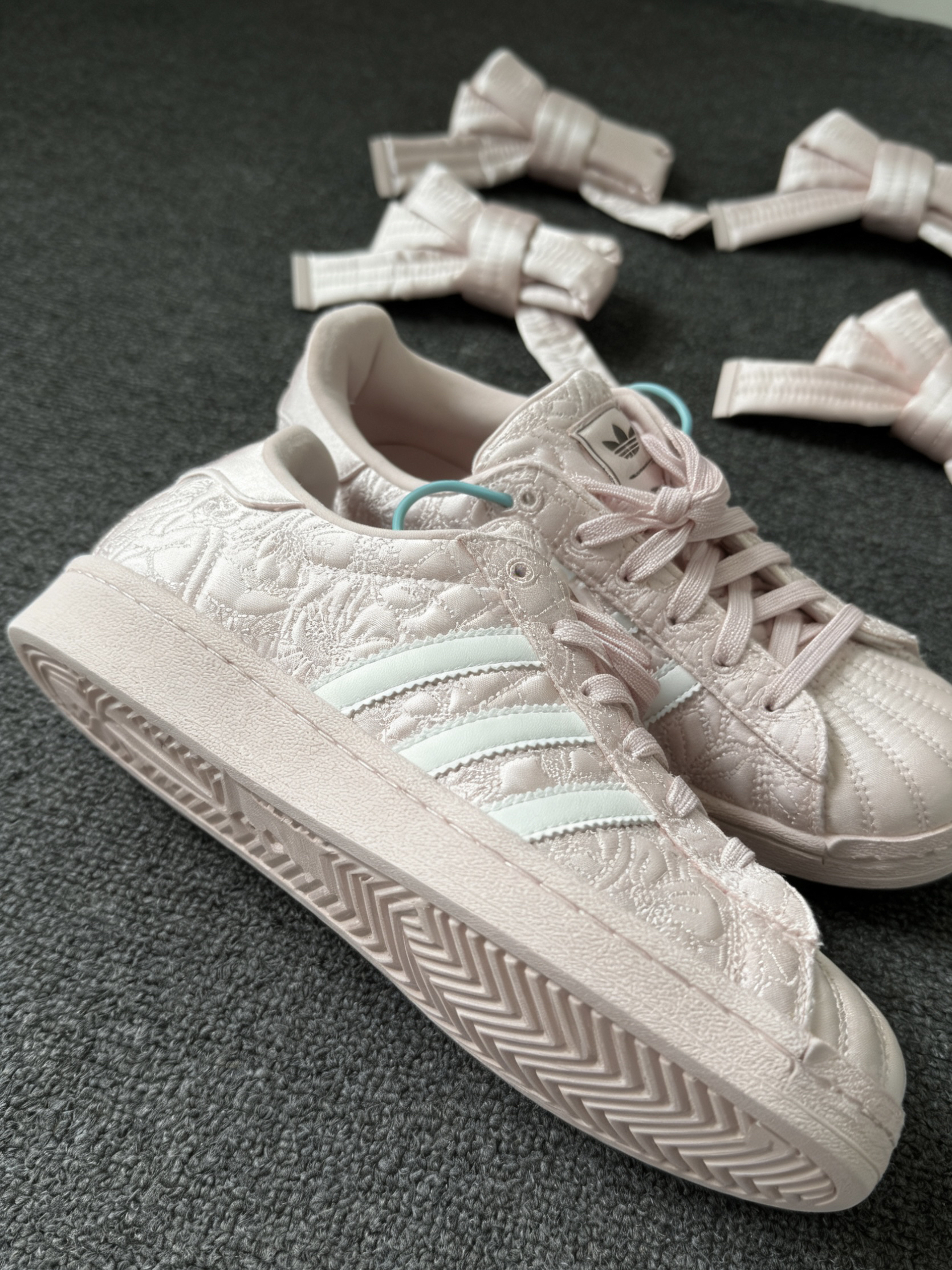 粉缎面质感泰高级,摸起来滑滑的,表面的精致压纹让鞋子一点都不单调。搭配同色系蝴蝶结鞋带系上去,满满的甜妹味,去逛游乐园穿它绝对吸睛,像是在逃公主一样。要是换回普通鞋带,立马变得简单随性,平时逛街或者跟朋友约个饭穿都合适。两种风格随便换,等于花一分钱买了两双鞋!