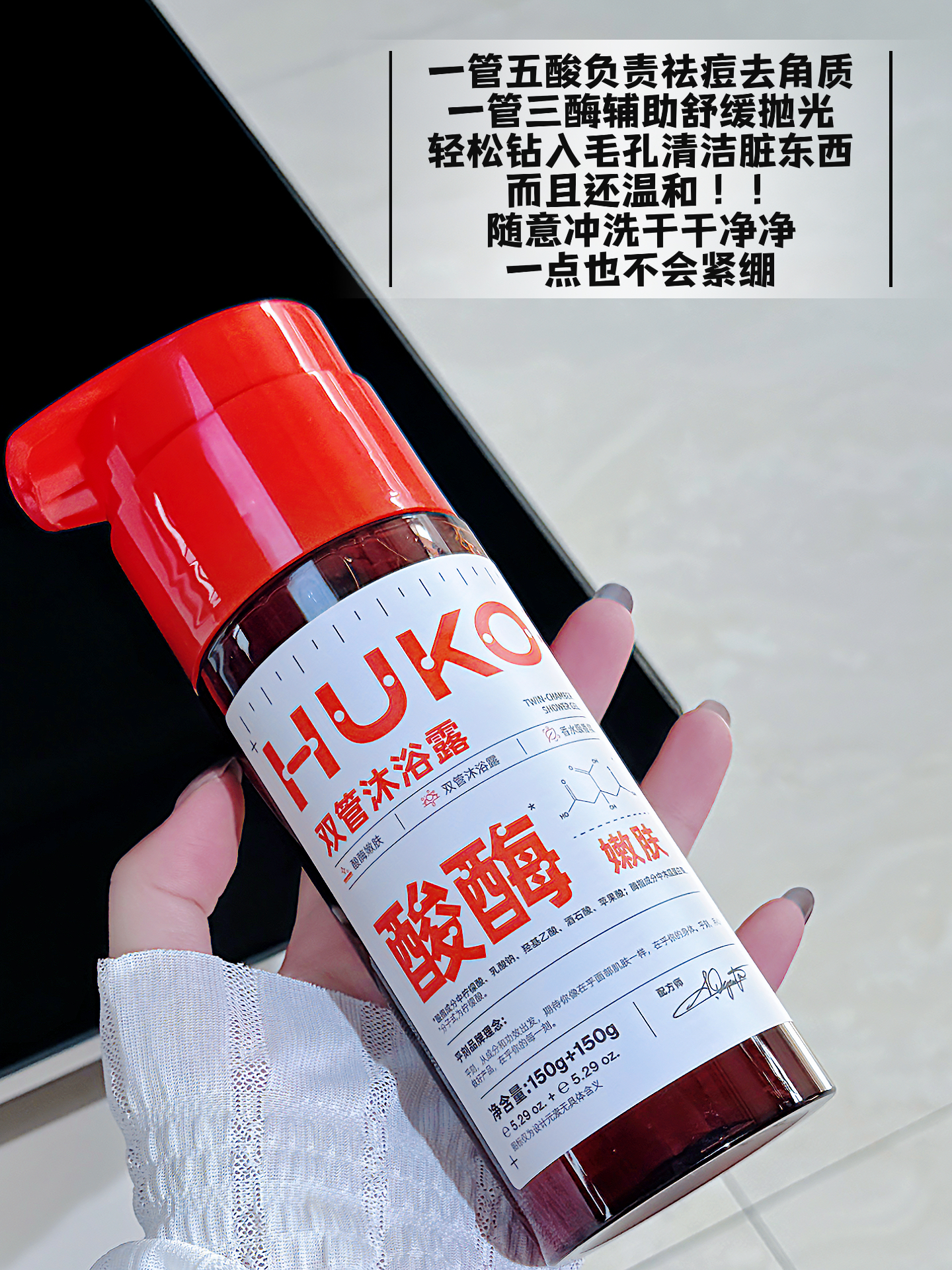 皮肤粗糙起皮屑的我猜你一定没用过乎刻这瓶酸酶双管沐浴露! 5%五酸+三酶的配置真的让人很安心 洗得干净的同时却不会感觉到拔干 - 📝五酸复配猛猛代谢老费角质 像我们关节的粗糙和后背的痘痘在不知不觉中都消失了 皮肤摸起来又滑又嫩 📝三重酶助攻 加速代谢 促进角质新生 添加的皮傲宁专攻痘印色沉 酸酶强强联合! 哪怕你是粗糙痘肌 也能感觉到皮肤正在变得滑嫩亮白