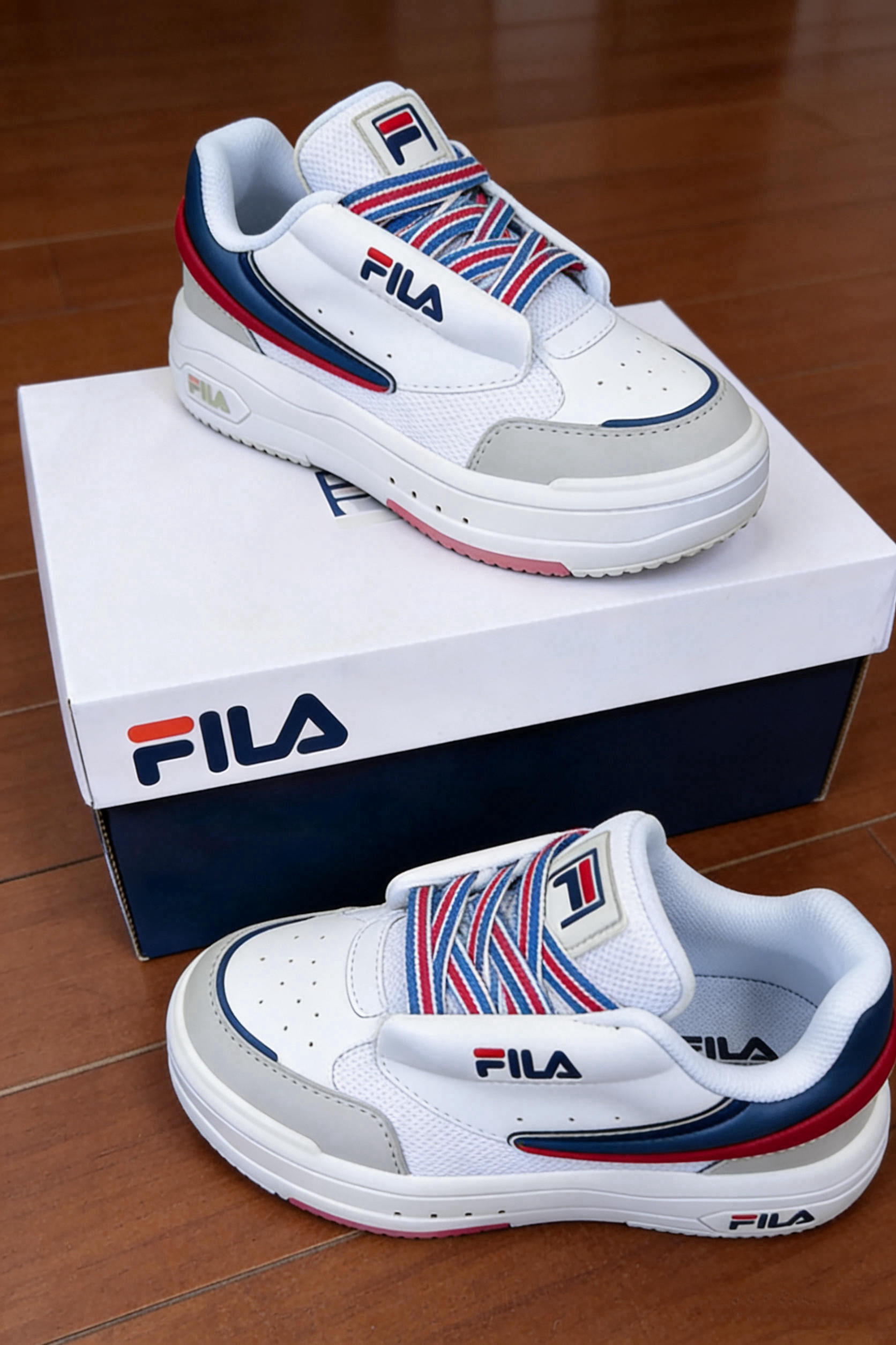 ✨ 颜值暴击 经典的白红蓝配色真的太戳人了! 复古又清爽,完全就是夏日元气少女的标配! 撞色鞋带设计更是点睛之笔,随便搭个牛仔裤或者百褶裙都超有氛围感!
