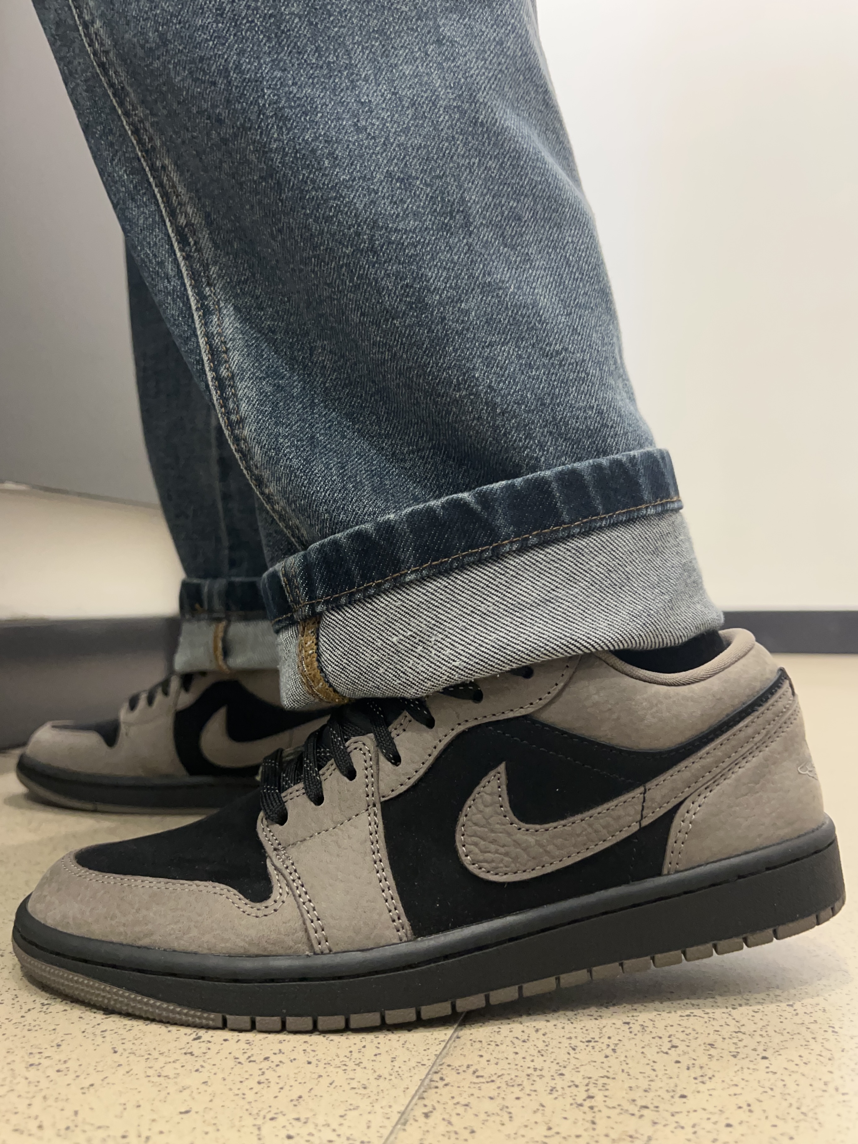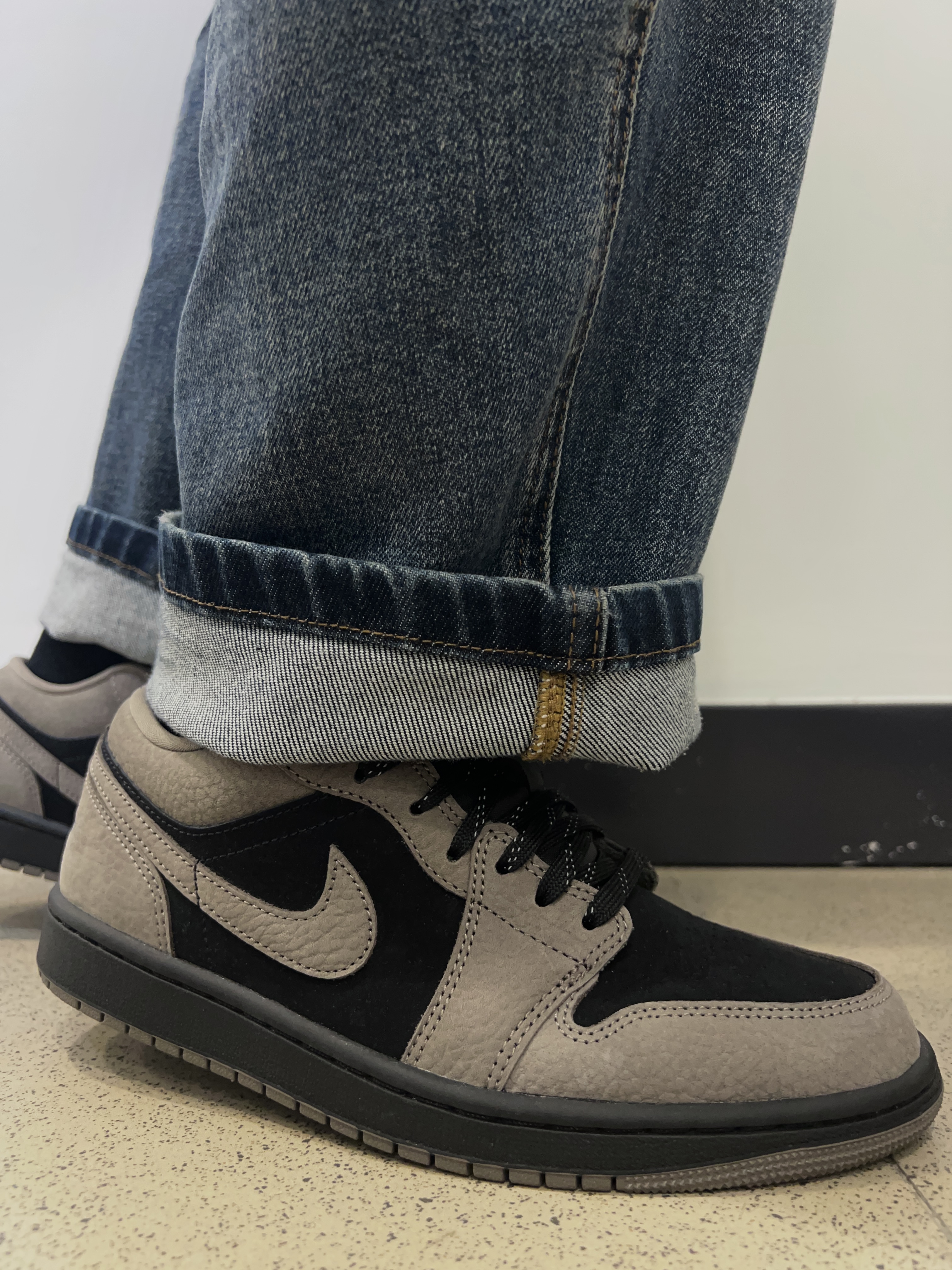 今天与大家拍摄上脚分享的鞋款是Air Jordan 1 Low摩卡小倒钩棕黑色系,一款适合学生党的百搭的通勤约会校园全适配鞋型,低帮造型显腿长配色易打理而且鞋楦也相对友好对于宽脚伙伴也能轻松驾驭,对比倒钩来说性价比更亲民学生党过年上脚也是很不错的选择