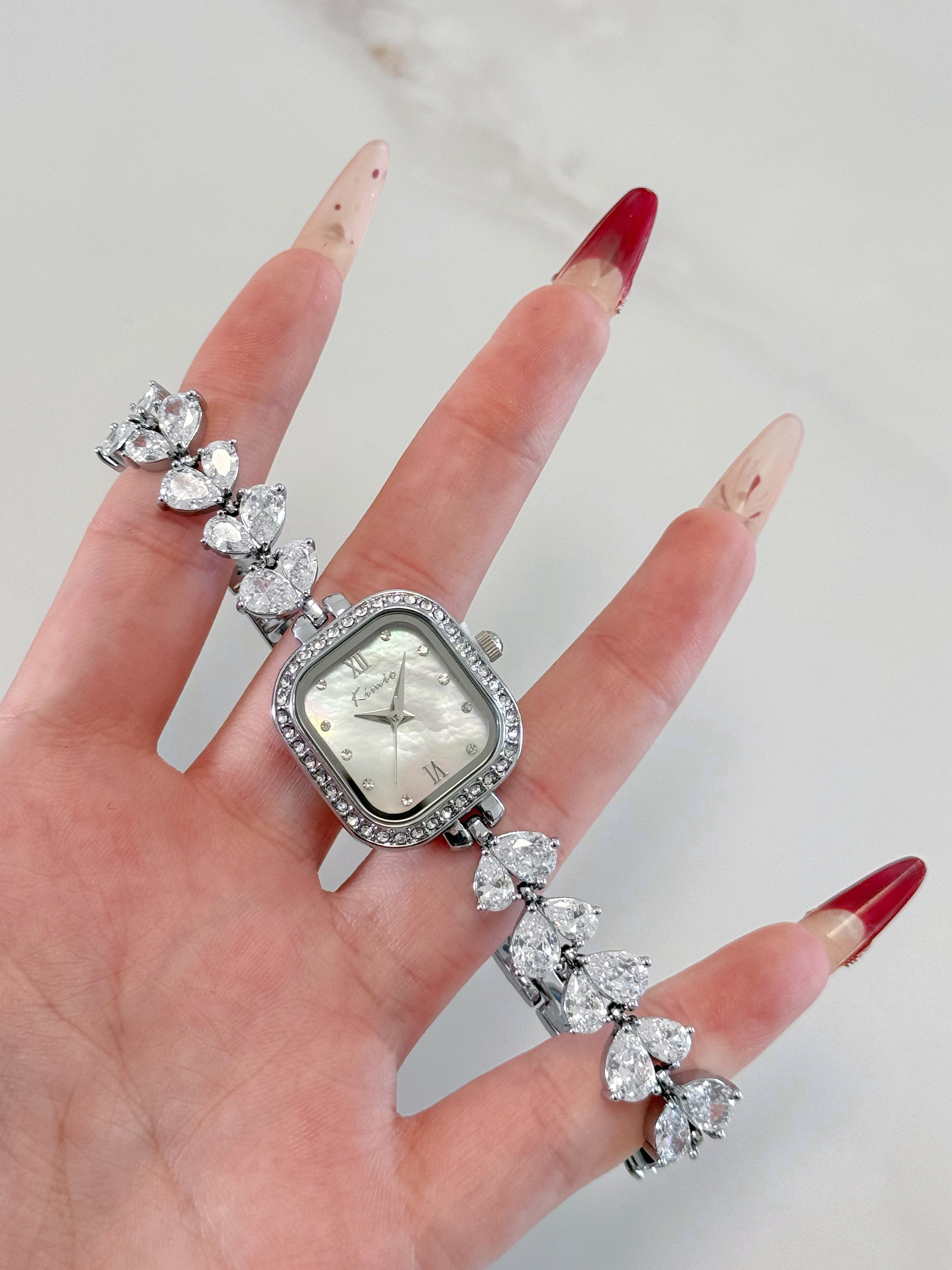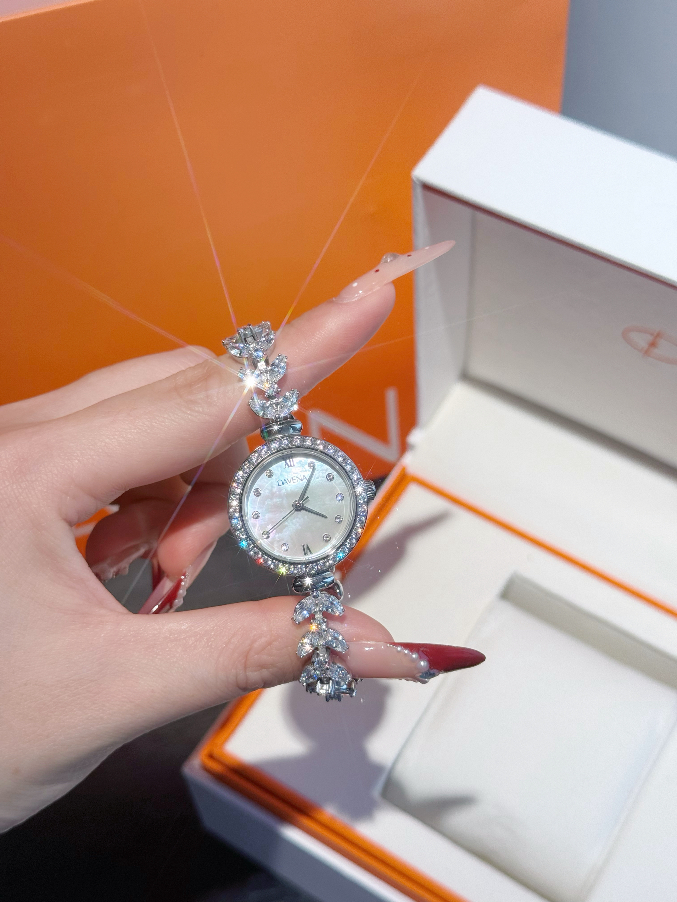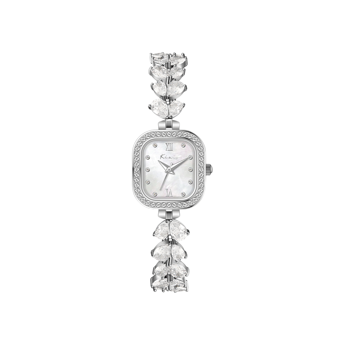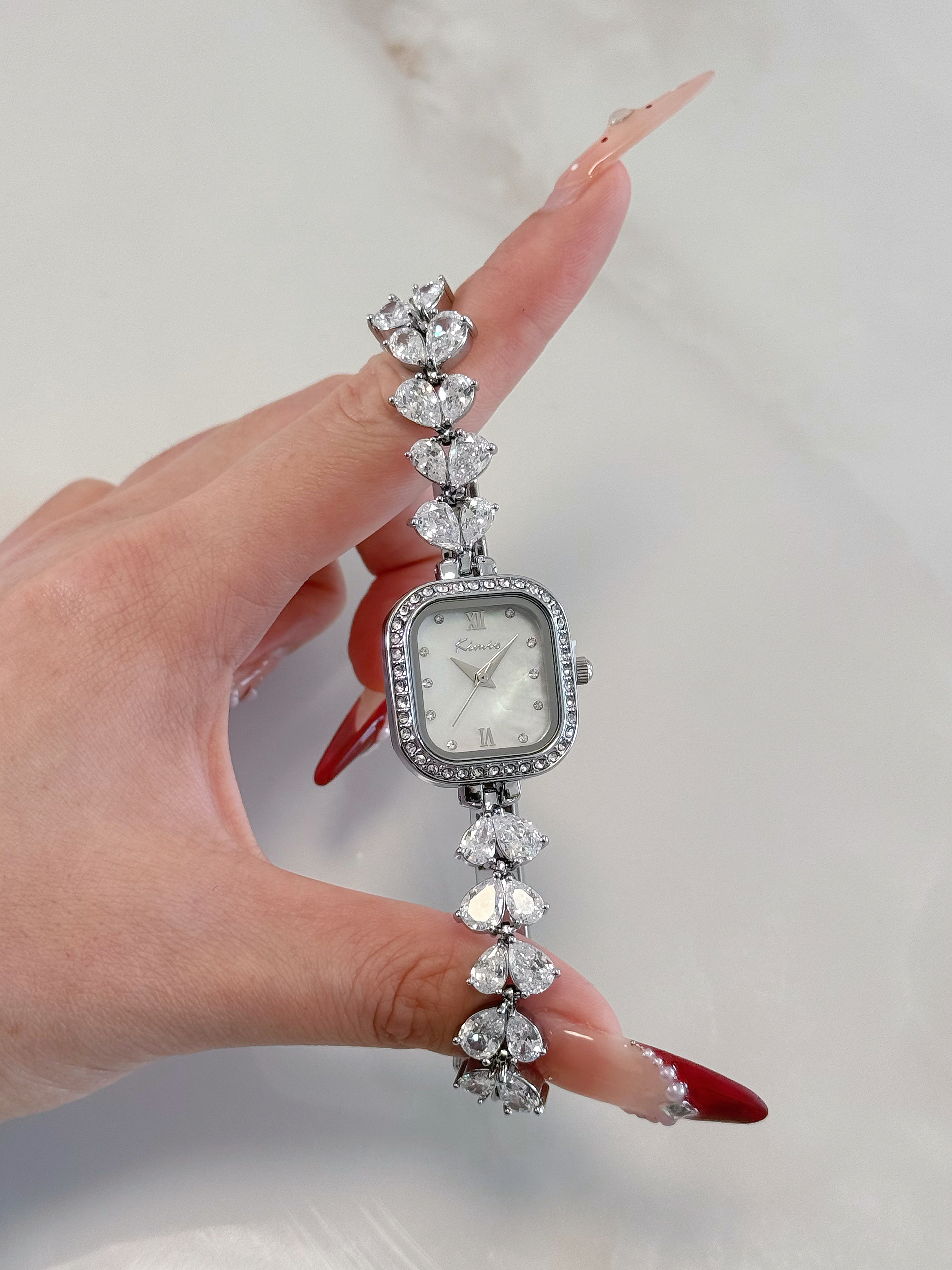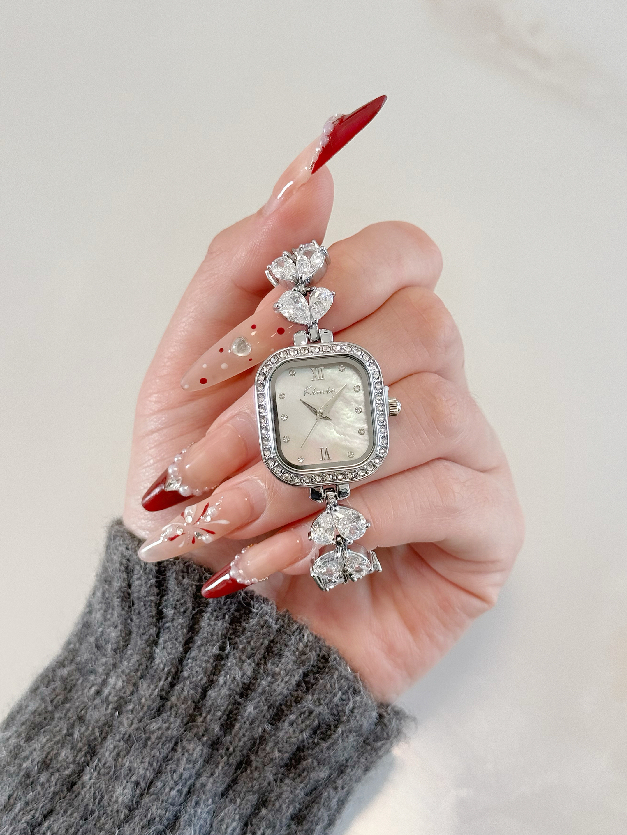 近期收到的超喜欢的配饰!kimio这块美人鱼系列手表,表带的水晶在光下真的巨闪,贝母表盘自带温柔光泽,小方糖造型精致又百搭。 日常穿休闲卫衣或者约会小裙子都能搭,质感完全不像两百多的价位。情人节送闺蜜或者对象都很合适,温柔又有仪式感~