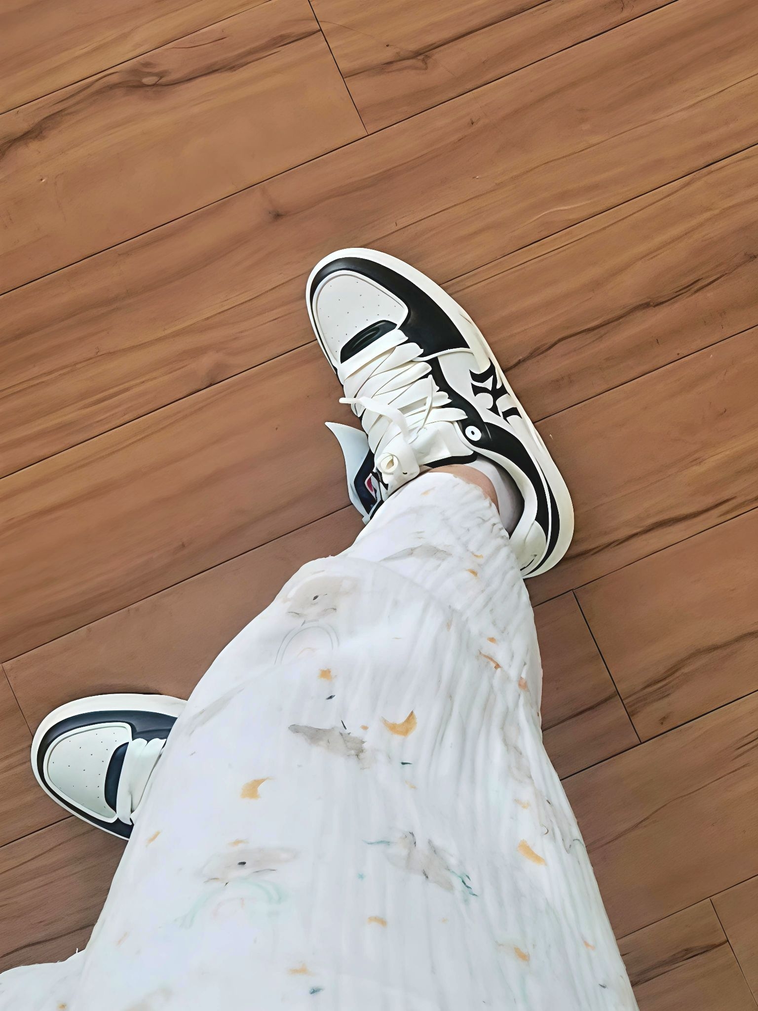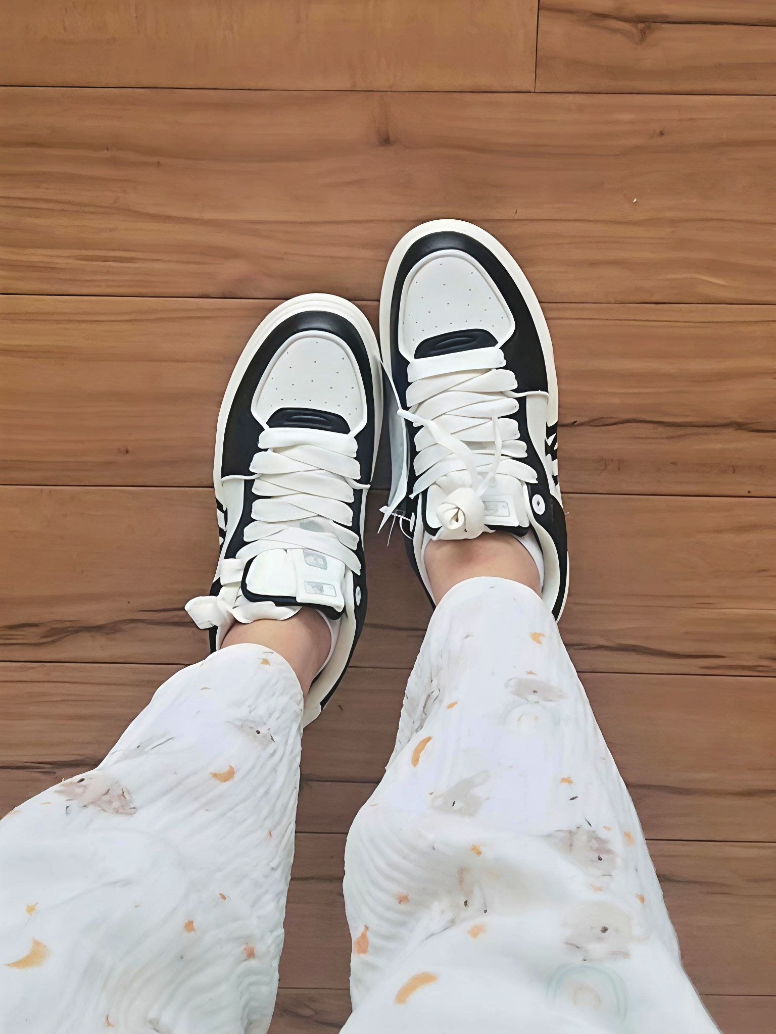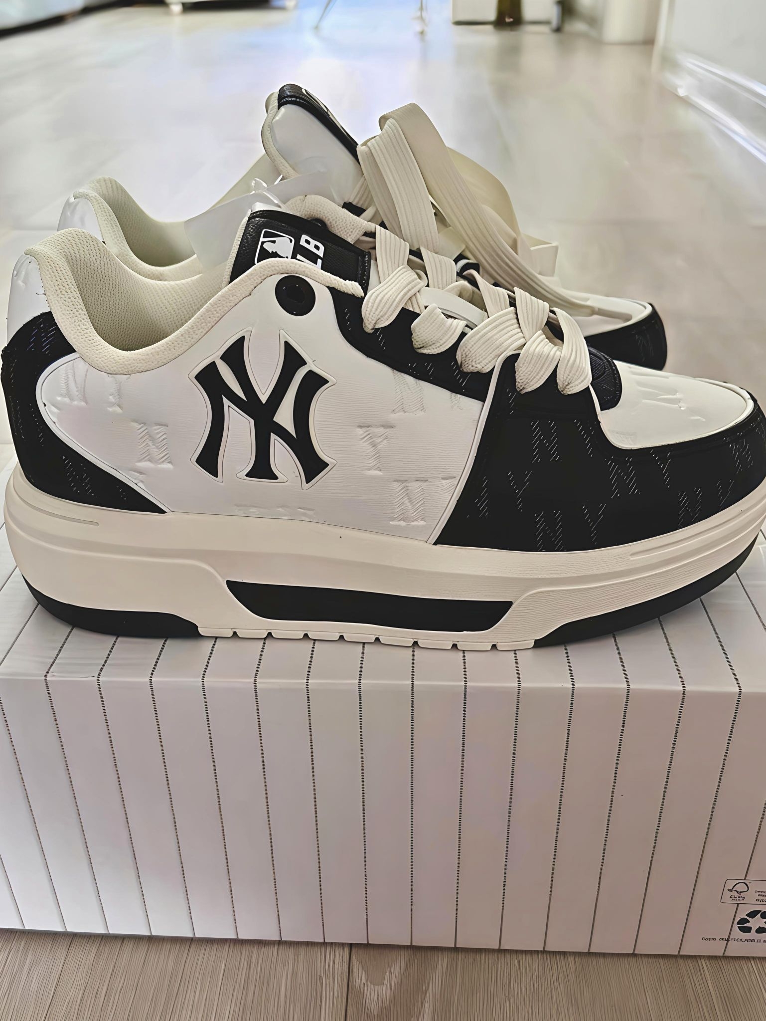 谁懂啊家人们!新入手的这双MLB黑白板鞋真的长在我审美点上了🥹。 经典的NY老花标,黑白配色怎么搭都不会出错,配我的泼墨白裤子直接氛围感拉满! 鞋型是那种微微厚底的,悄悄增高还不累脚,走一天都没问题。鞋带是宽宽的米白色,系成蝴蝶结超可爱,不喜欢太甜的直接系成普通鞋带也很百搭。 穿上它感觉自己就是街头最靓的崽,回头率直接拉满!今天也是被新鞋治愈的一天~😆