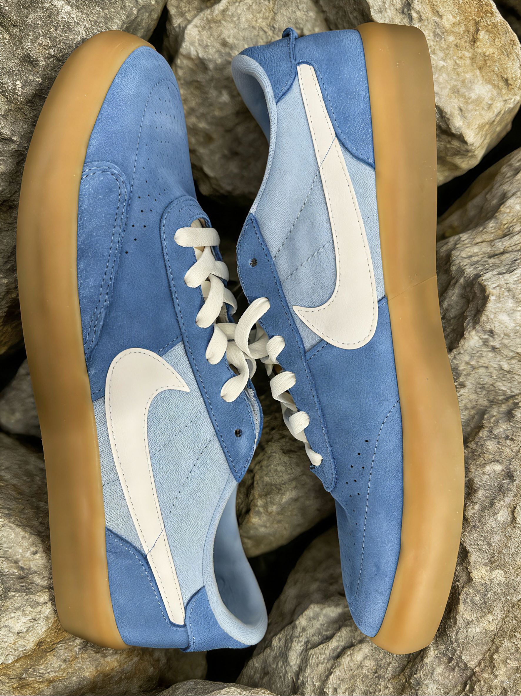 这双蓝白配色的板鞋刚到手就戳中了我!💙 鞋面是细腻的翻毛皮材质,摸起来柔软有质感,而且自带轻微的绒面肌理感,视觉上很显高级。亮眼的蓝白撞色清爽又活力,不管是搭配运动裤还是百褶裙都很出彩,日常通勤和周末出街都能穿。 上脚后体验感很棒,鞋型贴合脚面但不挤脚,鞋口的织带设计包裹感适中,走路时脚踝不会滑动。中底软弹度刚好,能缓冲走路时的震感,长时间穿着也不会觉得累。白色橡胶大底纹路清晰,抓地力不错,防...