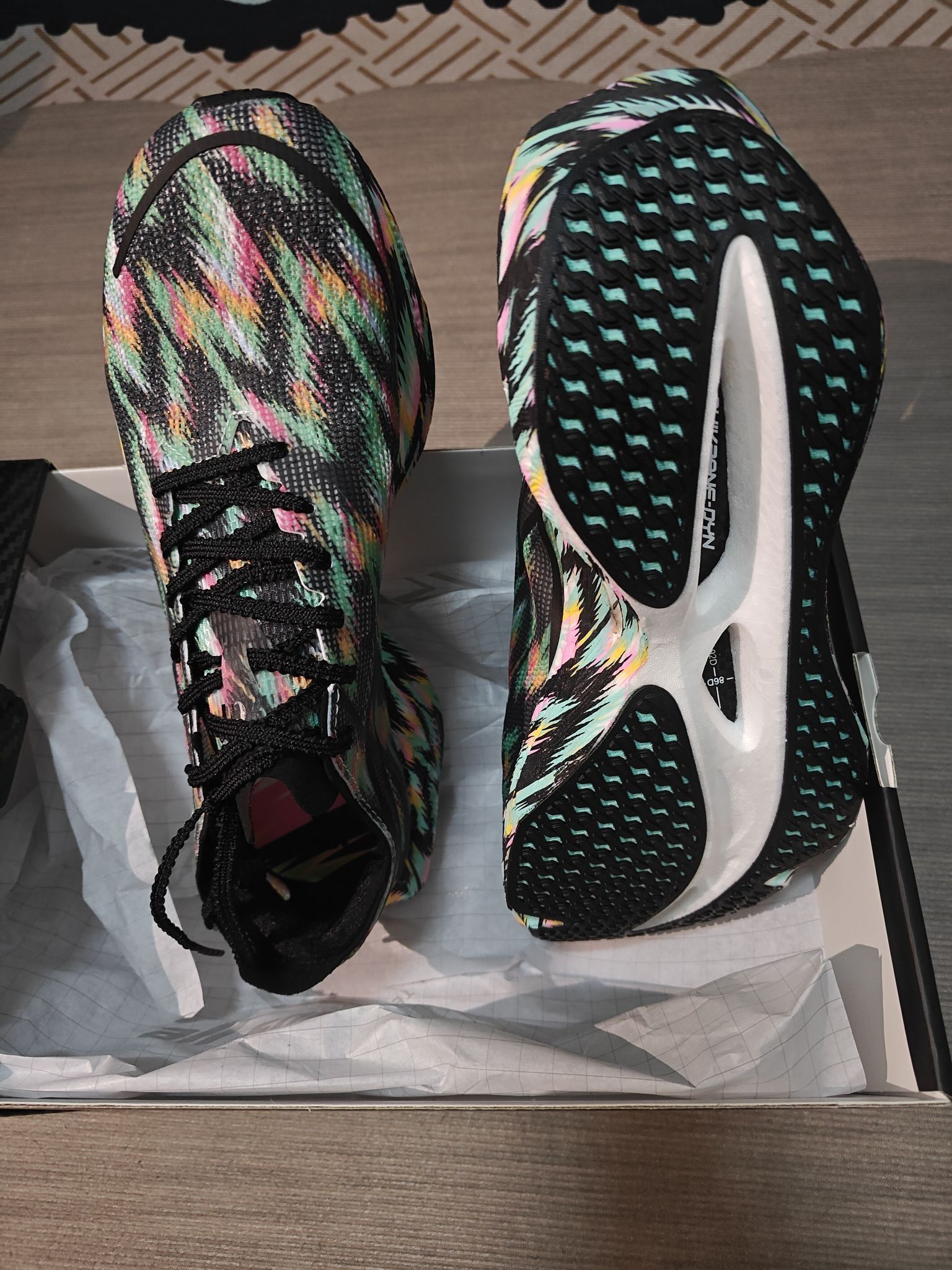 入手361°飞燃3风起黑绿款太惊喜了!低帮设计贴脚不磨踝,碳丝鞋面透气性拉满,晨跑十公里脚里也干爽不闷汗。全掌动态碳板的推进感超明显,蹬地时韧弹回馈很及时,跑马拉松后半程也没明显衰减,6mm坡差对小腿特别友好。3D纹路大底抓地力超赞,雨天路跑也不打滑,耐磨度也在线,跑了两百多公里没明显磨损。男女同款的黑绿配色低调又耐看,日常训练和竞速都适配,作为碳板跑鞋驾驭门槛不高,新手也能轻松上手,性价比直接拉...