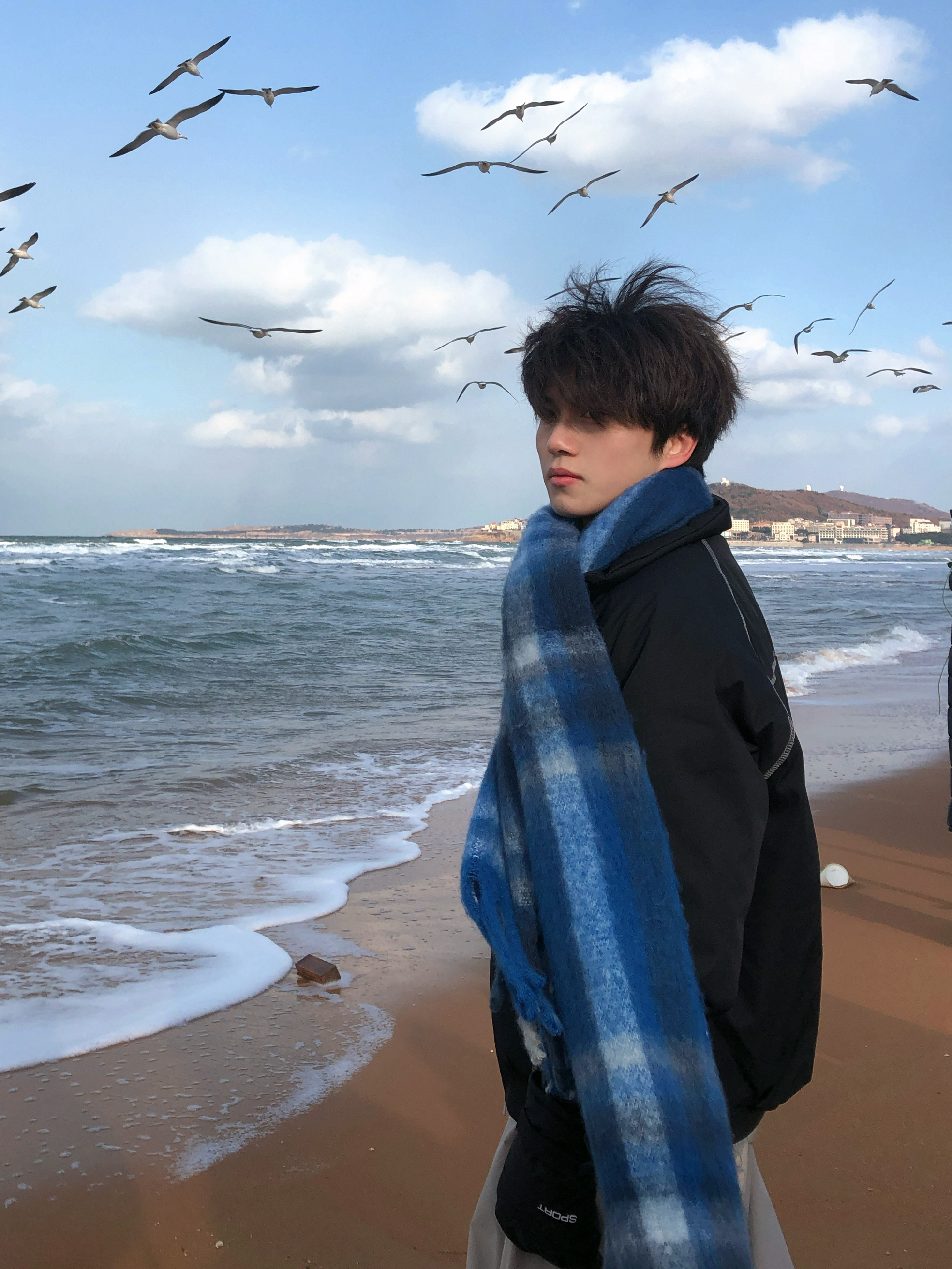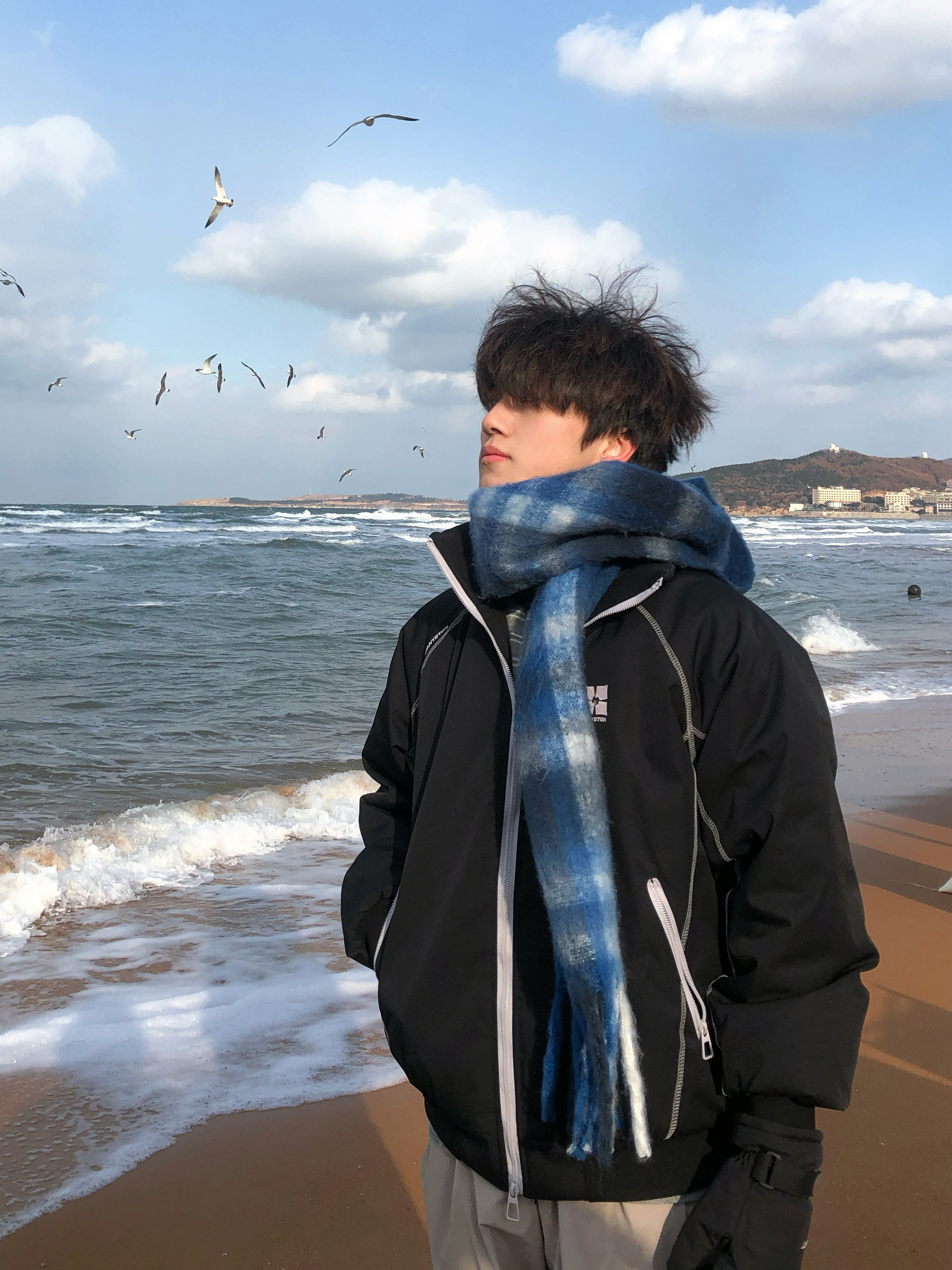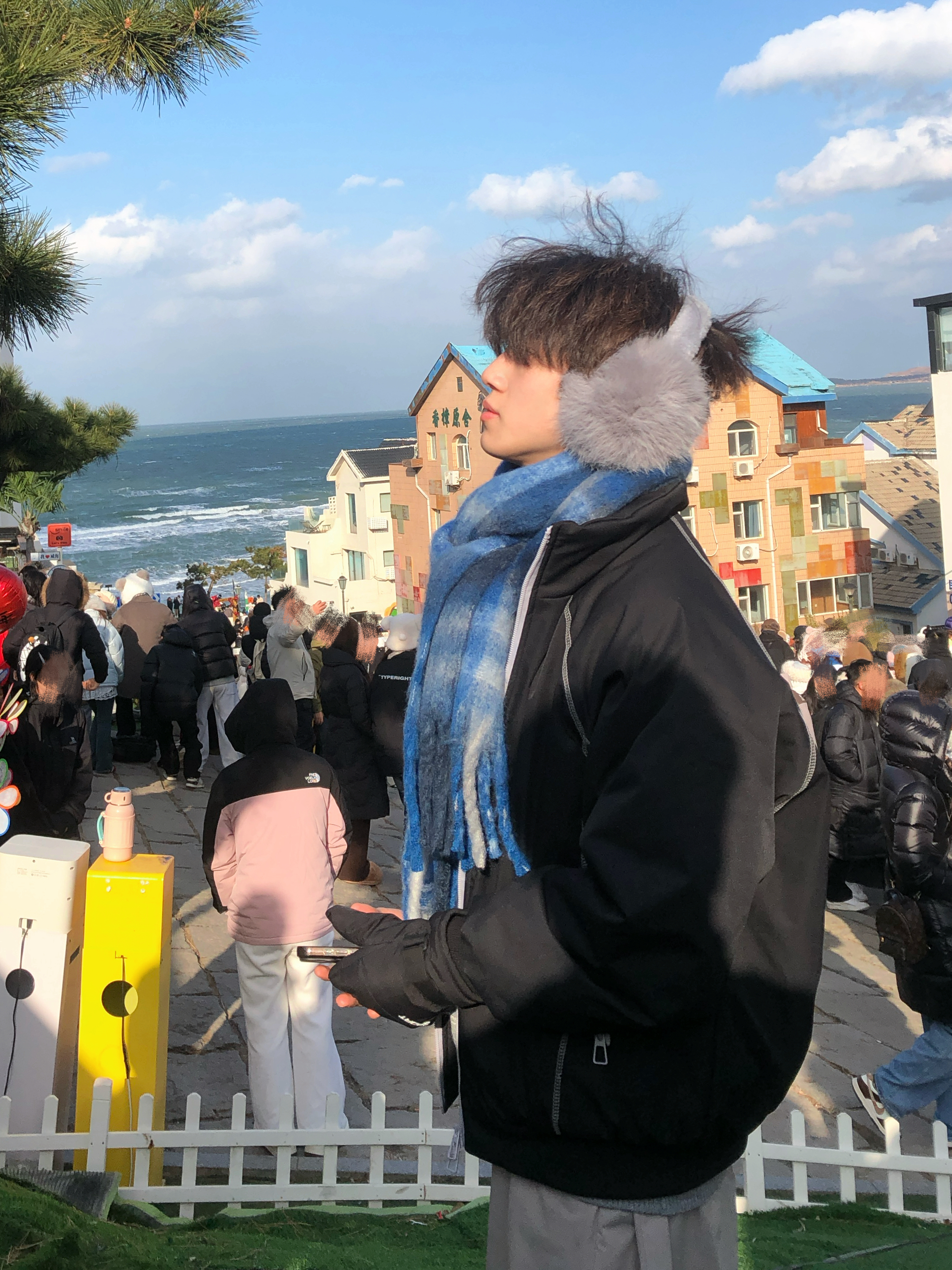 秋冬氛围感穿搭就这样穿 上身一件纯色线条高领棉服 加厚设计包裹性很强,防风防雨 内搭连帽卫衣或者白色打底衫都可以 下身随意搭配条灰色阔腿直筒裤 灰黑搭配穿搭不累 最后再来一条蓝白撞围巾 就像一套你穿你也帅