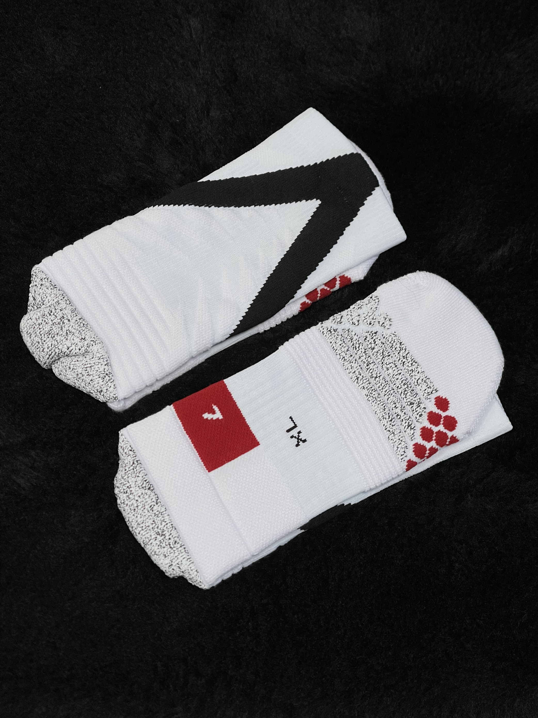 最近看“赴战”比赛🆚,看到好多球员都上脚这双赛事级篮球袜🧦,搜了一下价格挺划算赶紧给自己安排一双💰,今天穿着打了两小时篮球发现果然不一样⛹🏻,整体的分区设计各司其职,太专业啦👍!侧边比较容易磨坏或急停变相的位置添加了红色的防滑矩阵,高密度防滑砂线,既提供了更好的包裹性也延长了使用寿命⌛️,我觉得袜子是比较厚实的,落地时有一定的缓震效果🔥,我47.5的脚XL也可以穿🦶但是穿的时候有些费劲💦,穿上...