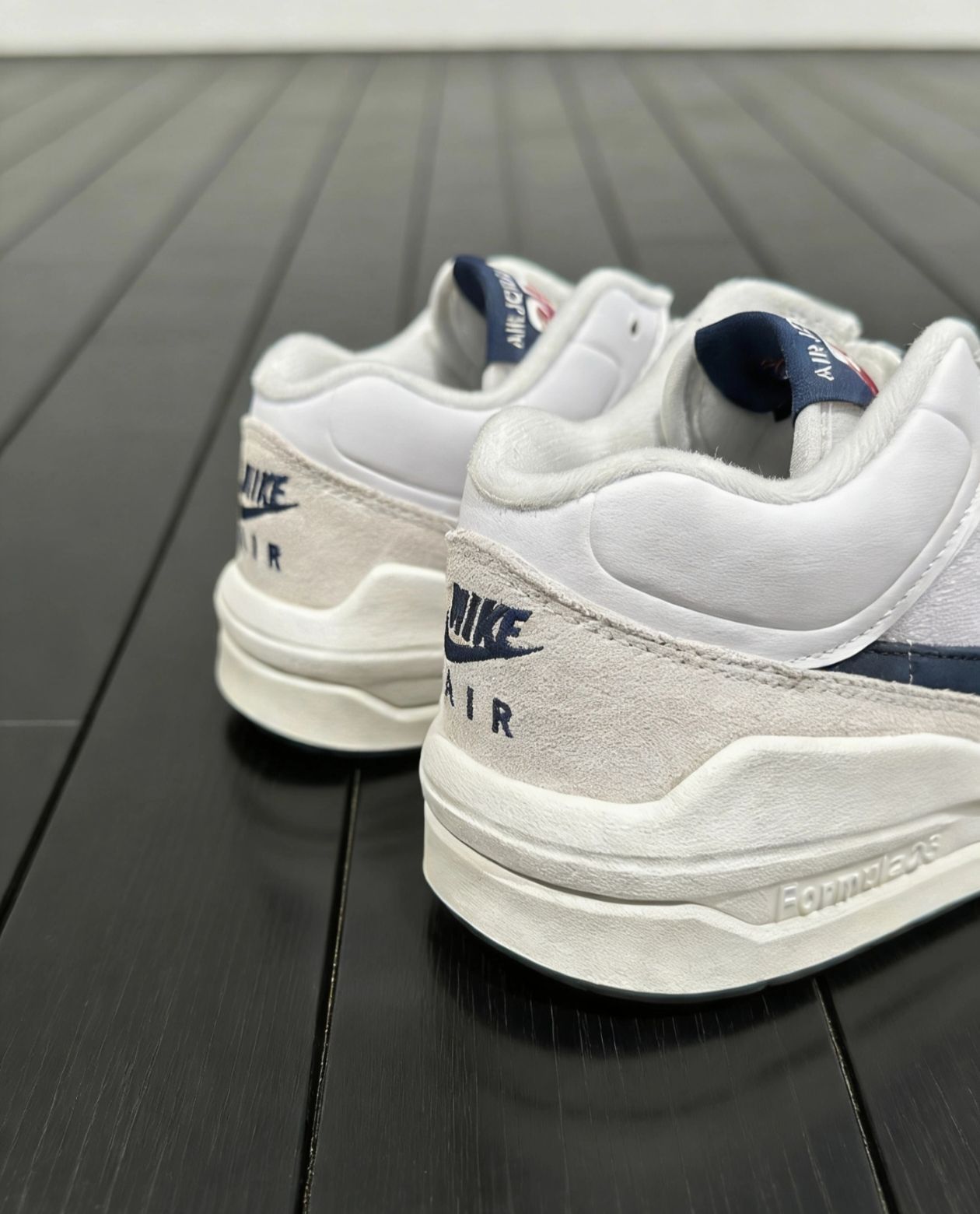 Jordan Stadium90 米白色 真的太百搭辣 皮革翻毛皮组合➕深蓝色swoosh 外观非常吸睛。从图片中可以看到,它的设计很有特色,整体造型有着浓郁的运动风。其颜色搭配简洁又不失时尚感,大面积的白色为主色调,看起来干净利落。