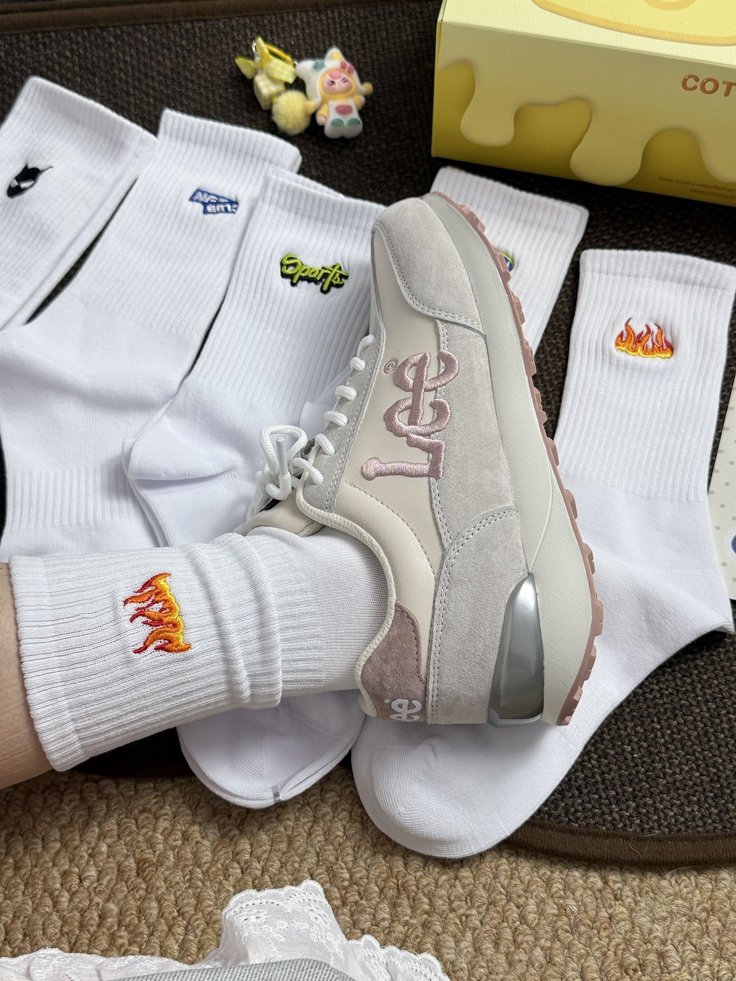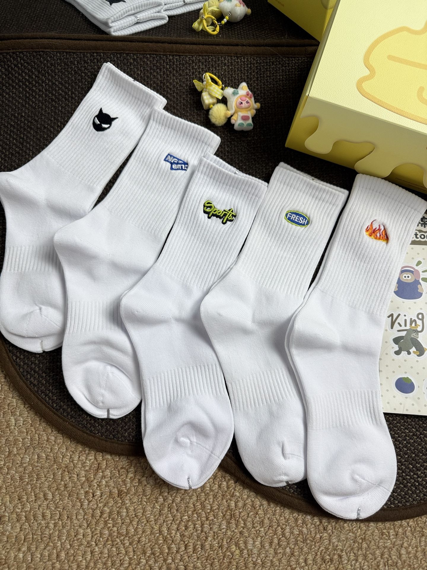 刺绣小白袜就是百搭呀🌟 什么鞋子衣服穿它都不会出错~ 而且是纯棉的 会比较吸汗耐 也不容易臭脚 中筒的高度夏天搭短裤也好看 没双都还是独立包装 盒子里边的香卡也好可爱 整个都很精致 当小礼物送人都OK #宝藏小白袜 #马年袜子 #穿搭开红运 #软糯小白袜 #马年本命年袜子
