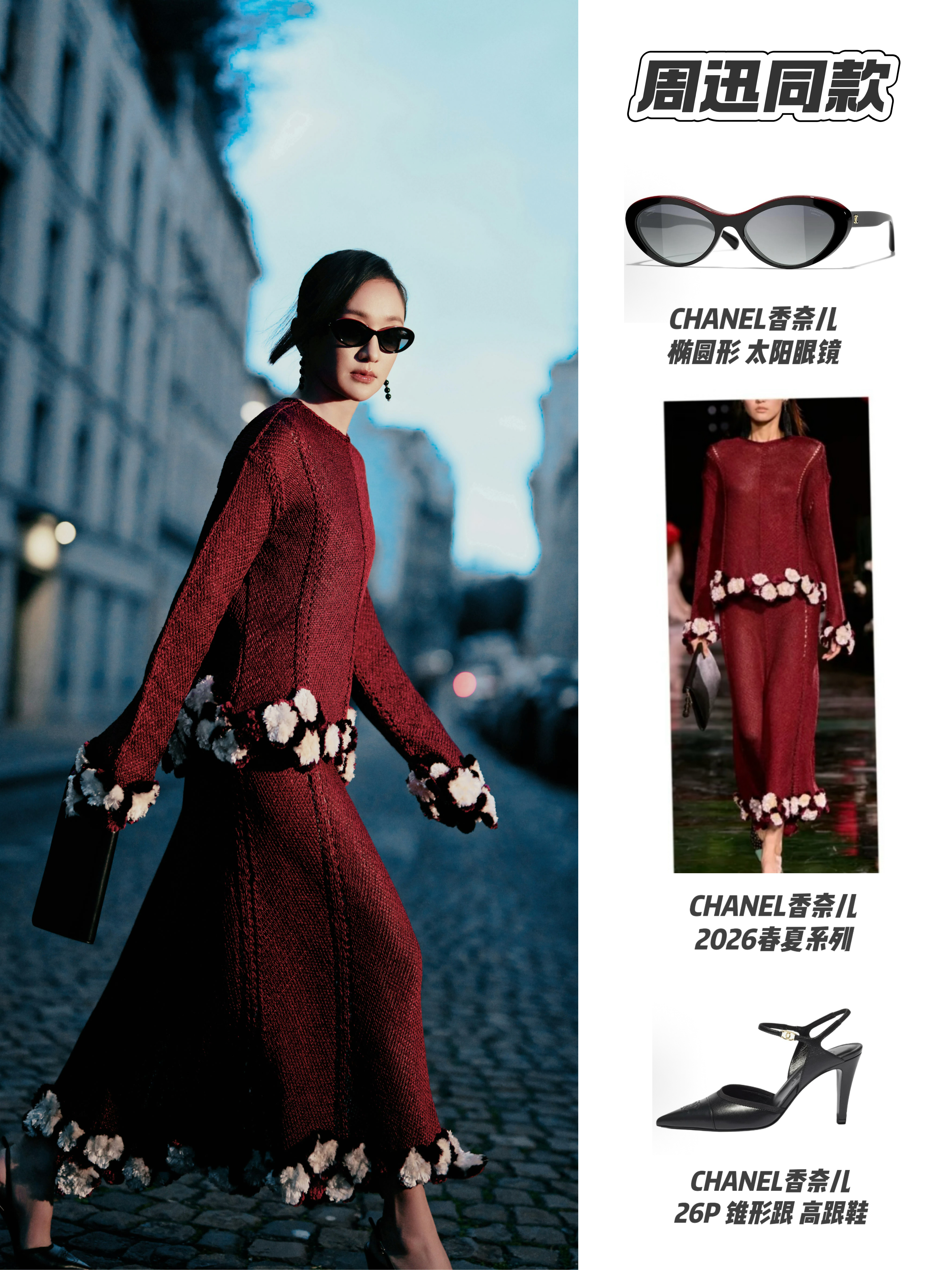 周迅的状态也太好了,这套红裙简直是春节战袍天花板! 酒红色调自带华贵感,立体花朵点缀在裙身和裤脚,灵动又雅致。香奈儿的单品加持让整体造型高级感拉满,穿上它走亲访友,既有节日的红火氛围,又能尽显优雅品味,妥妥的新年C位担当~