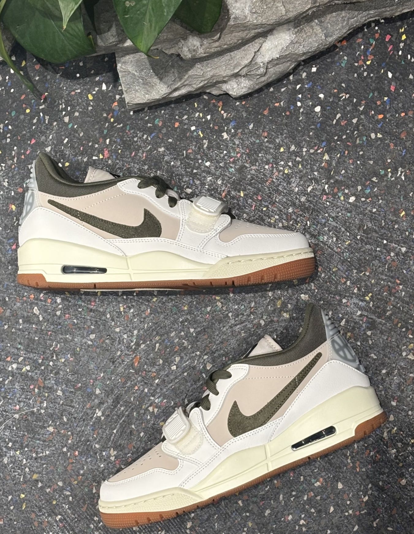 刚拿到这双Air Jordan Legacy 312,直接戳中我的心巴💘 橄榄绿+米白的配色太绝了,低饱和度色调自带复古滤镜,Swoosh用的翻毛皮质感拉满,生胶底更是把复古氛围焊在脚上。不管是搭工装裤还是牛仔裤,随便一穿都是街头画报感,通勤、约会、打球都能打,百搭到犯规! ✅ 脚感惊喜:内置Air Sole气垫,走一天都不累,魔术贴还能调节包裹度,宽脚星人狂喜! ✅ 细节控狂喜:鞋舌的「下站东单...