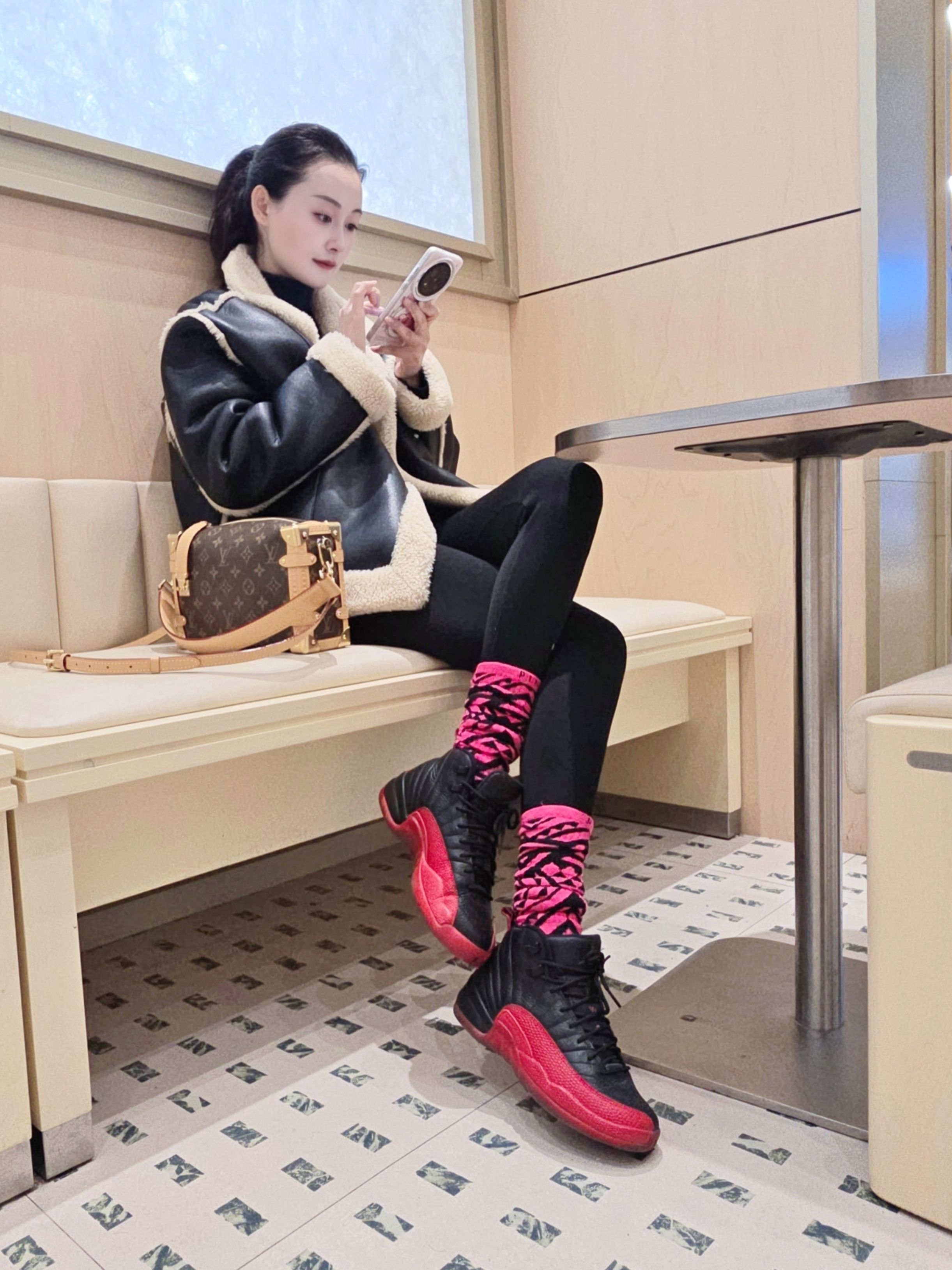 冬日韩系甜酷感拉满!羊羔绒座山雕皮夹克飒酷又保暖,搭配黑红撞色球鞋和堆堆袜,瞬间打破沉闷。紧身裤遵循“上松下紧”法则超显瘦,日常出街轻松拿捏甜酷又帅气的韩味冬日穿搭!