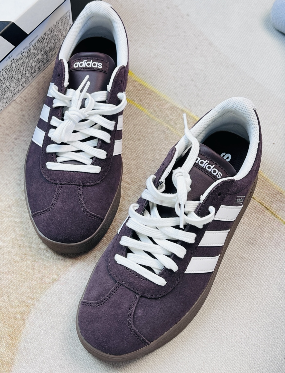 本篇笔记关联了adidas VL Court 2.0 T头鞋 德训鞋 板鞋 百搭轻便复古防滑耐磨轻运动合成革 暗灰棕/白色/树脂黄等商品,为用户提供真实的使用体验和购买参考。