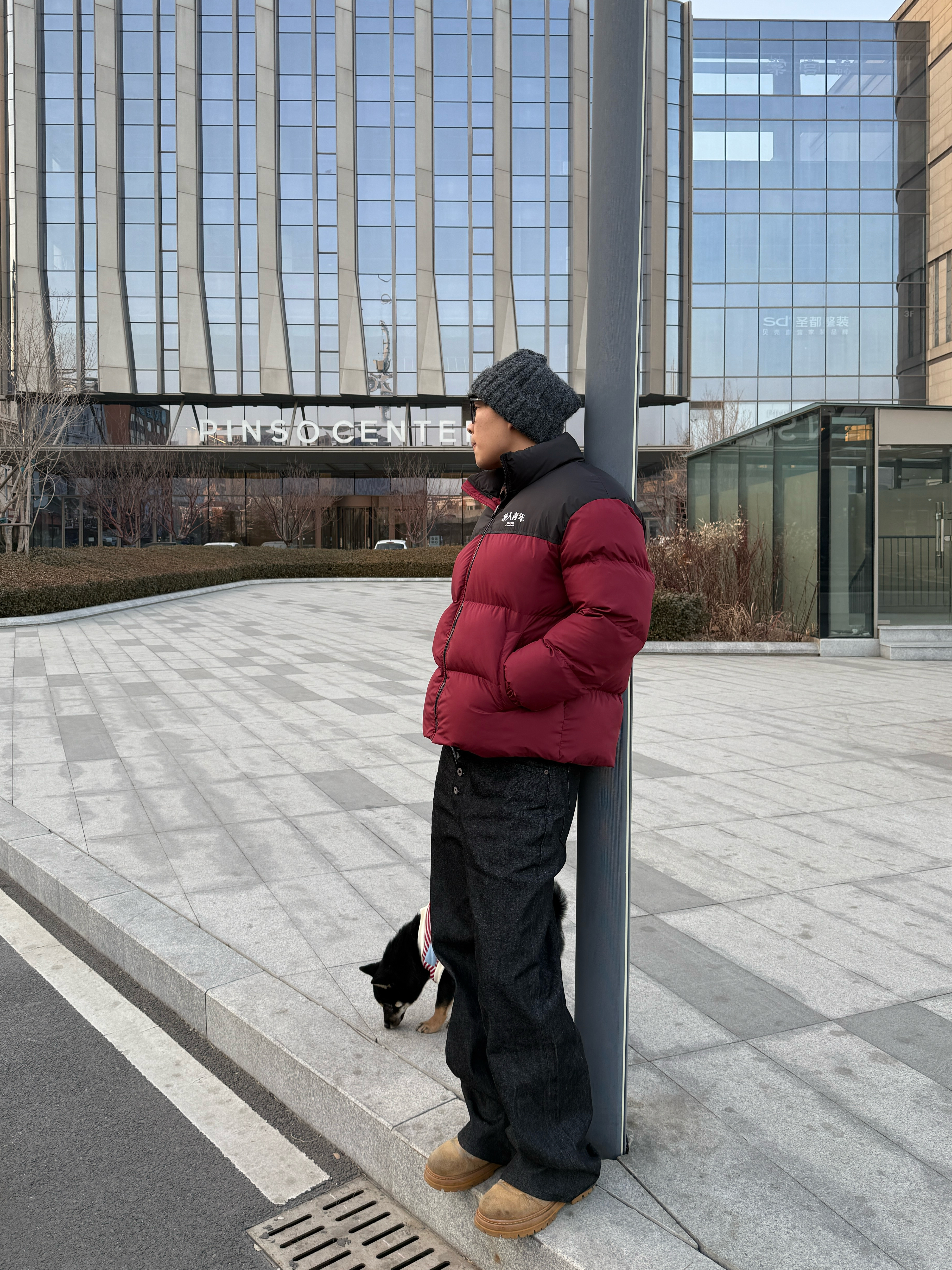 无非就两点 你得有颜值得有保暖度吧 这款华人青年的我觉得可 我最喜欢的颜色就是红黑版 穿上暖暖的 这个颜值我觉得一点没毛病 裤子是原牛 配上小马丁靴 也是嘎嘎好看的 178 72 xl码