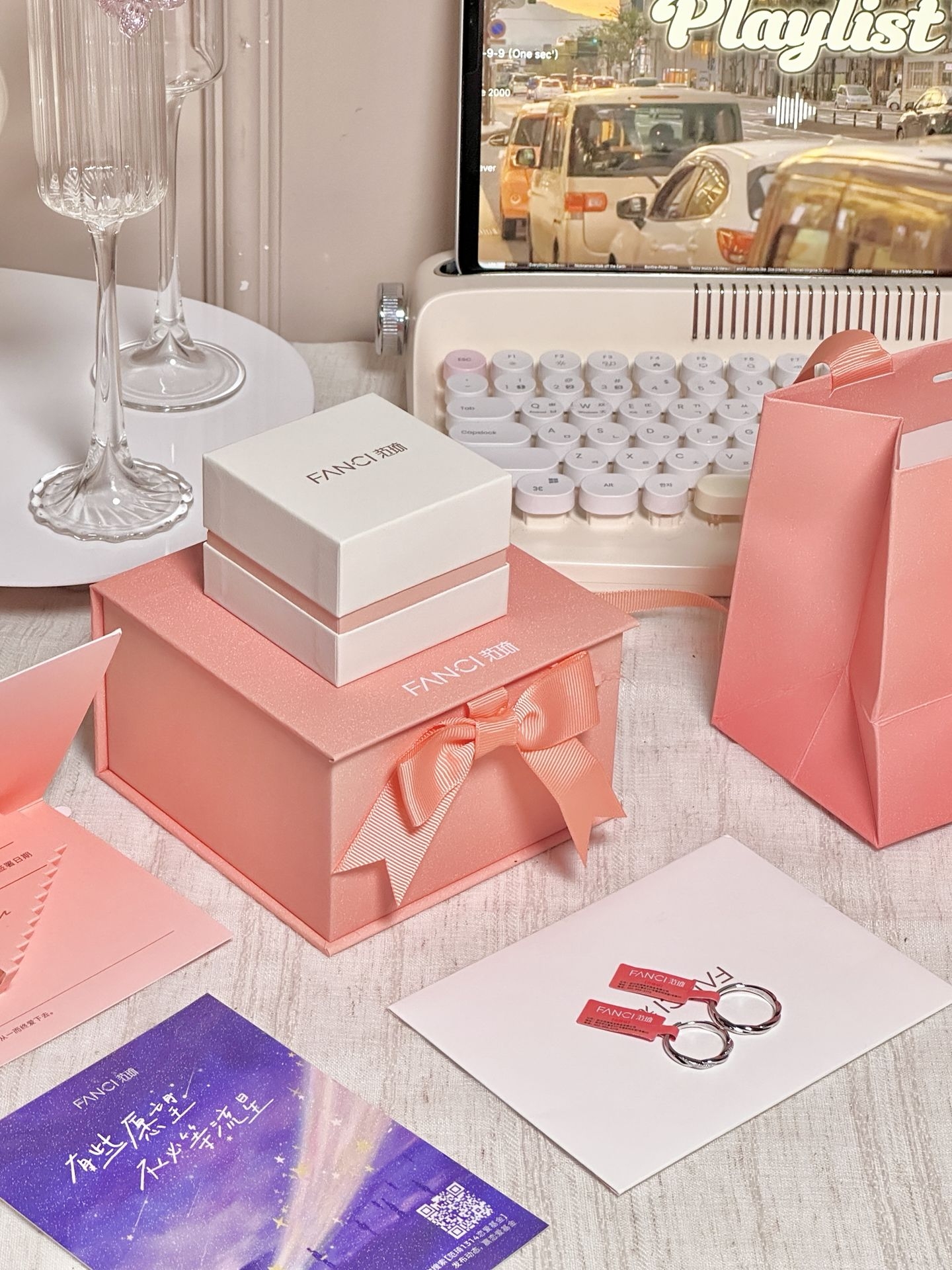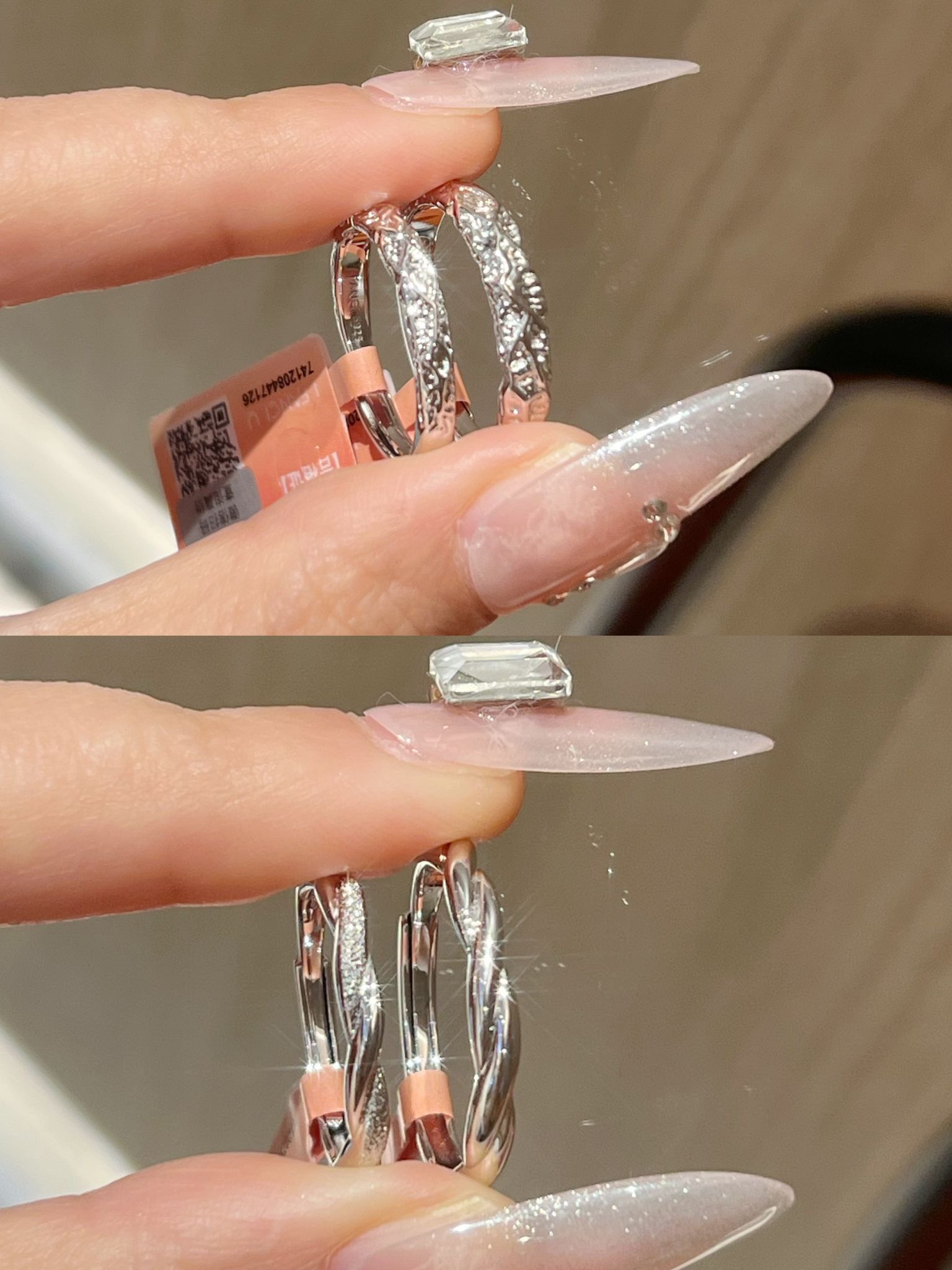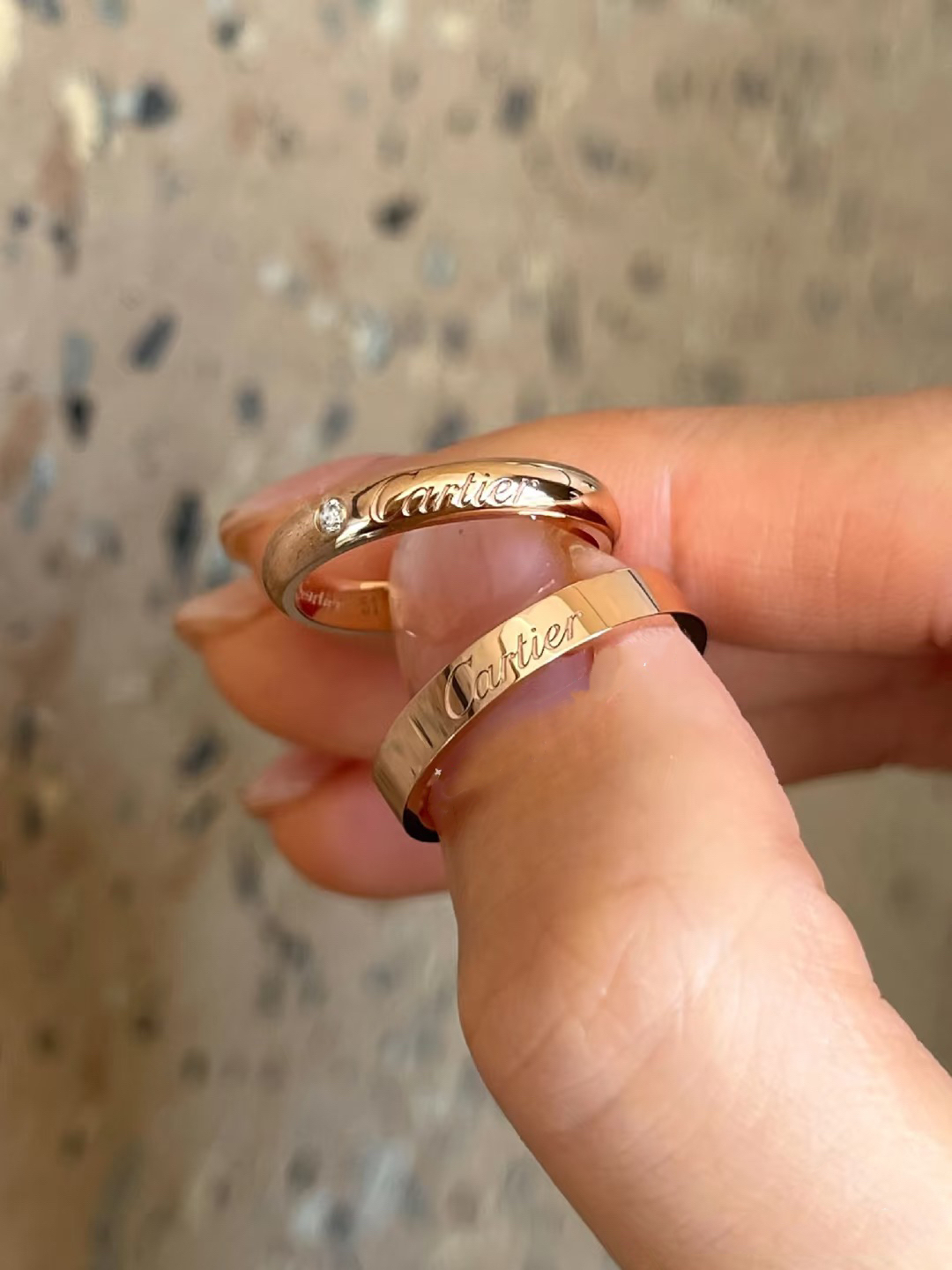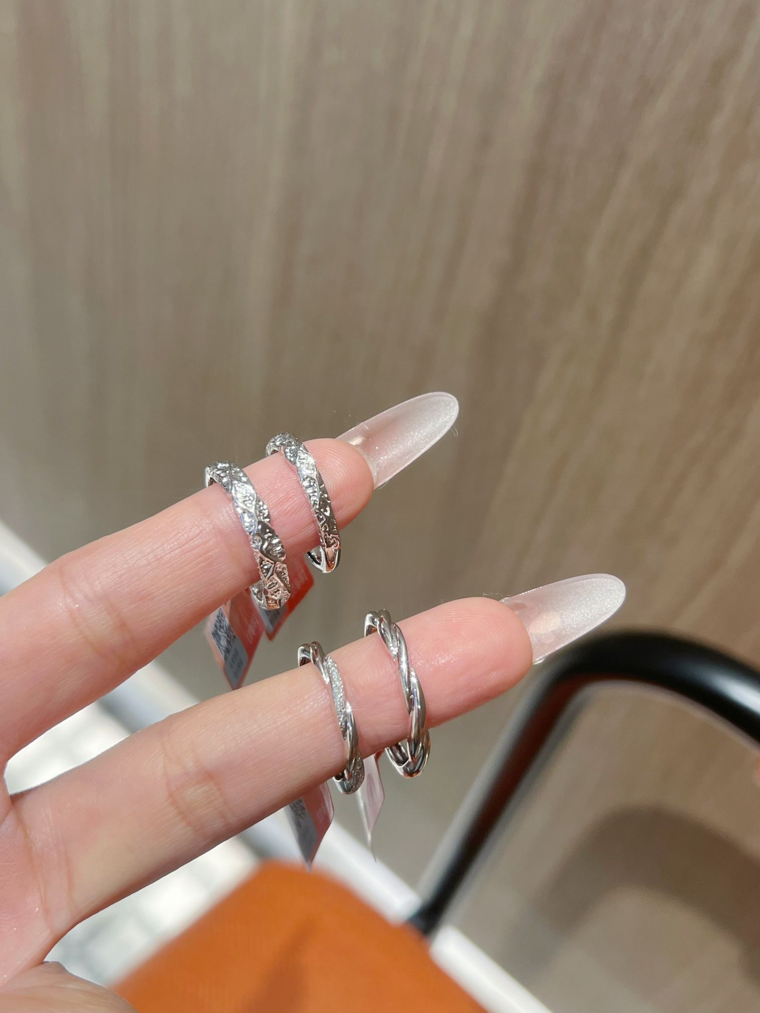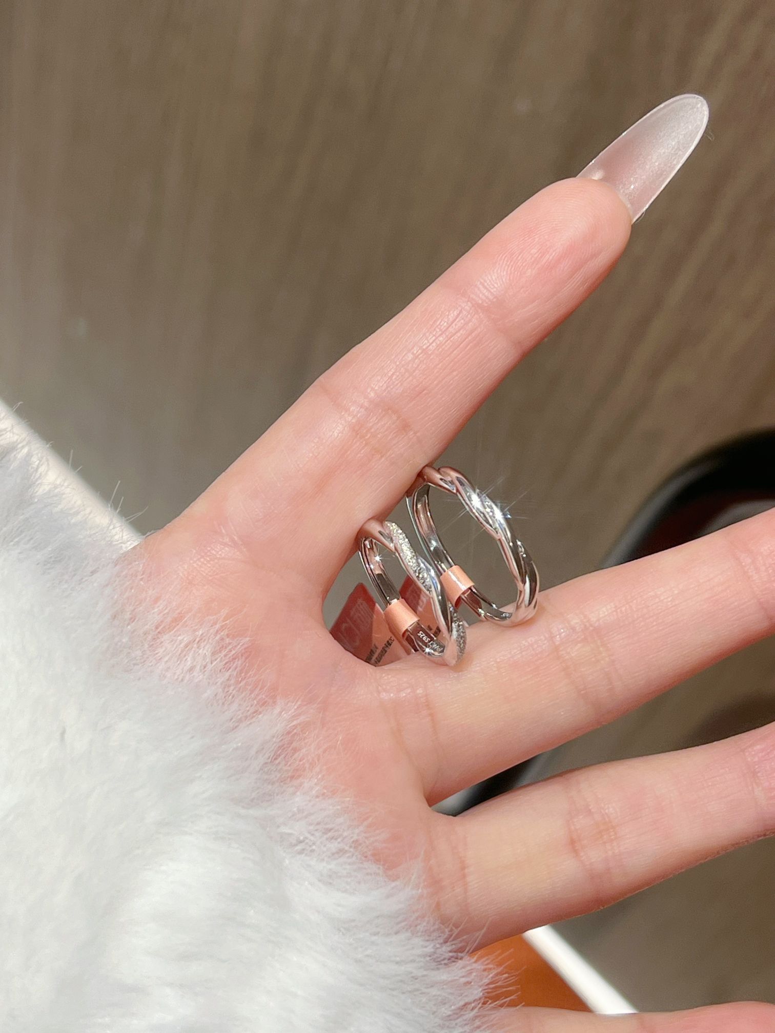 情人节马上到了 情侣对戒又添两对啦 这个质感我还是蛮喜欢的 一款是范琦熔岩之恋的糖果纸纹理hen有质感 寓意“熔岩般炙热的爱” 另一对是情意绵绵 带范琦情意绵绵与你岁岁年年 有一排小碎钻 好闪好精致