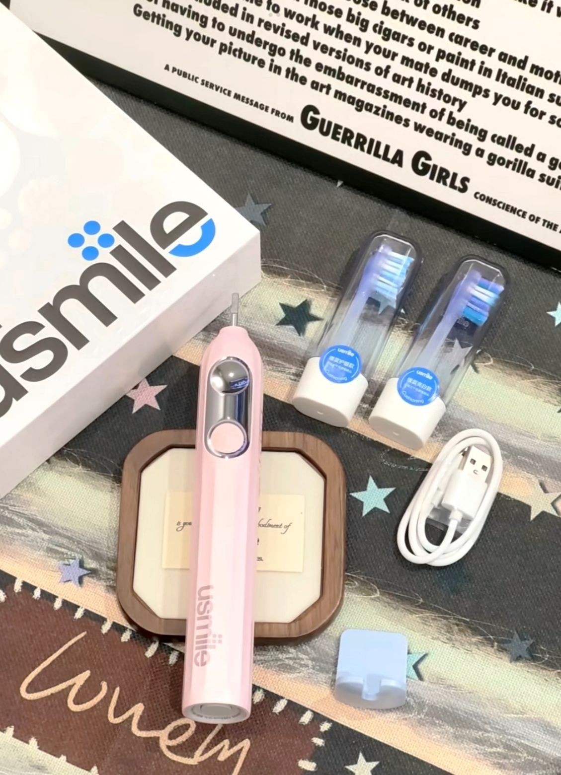 eon Usmile介个Y30pro电动牙刷我尊滴爱上了 智能电动牙刚 选的baby粉配色好好看呀 也可以连接手机操作 还配了充电线 挂架 代言人梓渝小卡送人也是敲有面儿~