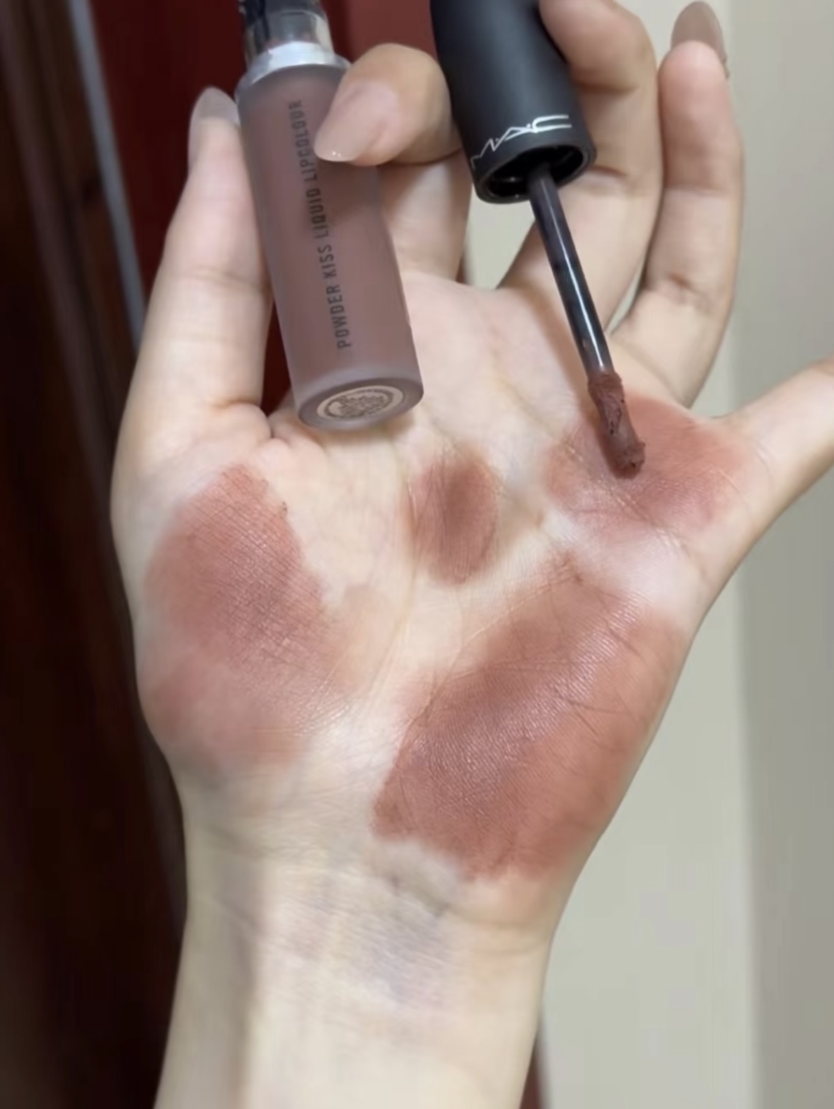 💄mac997 非常适合甜酷辣妹的色号 薄涂杏仁裸色,厚涂吃吐奶咖色 质地很软糯不会倒拔干,轻微掉色,还是一如既往的巧克力味🍫