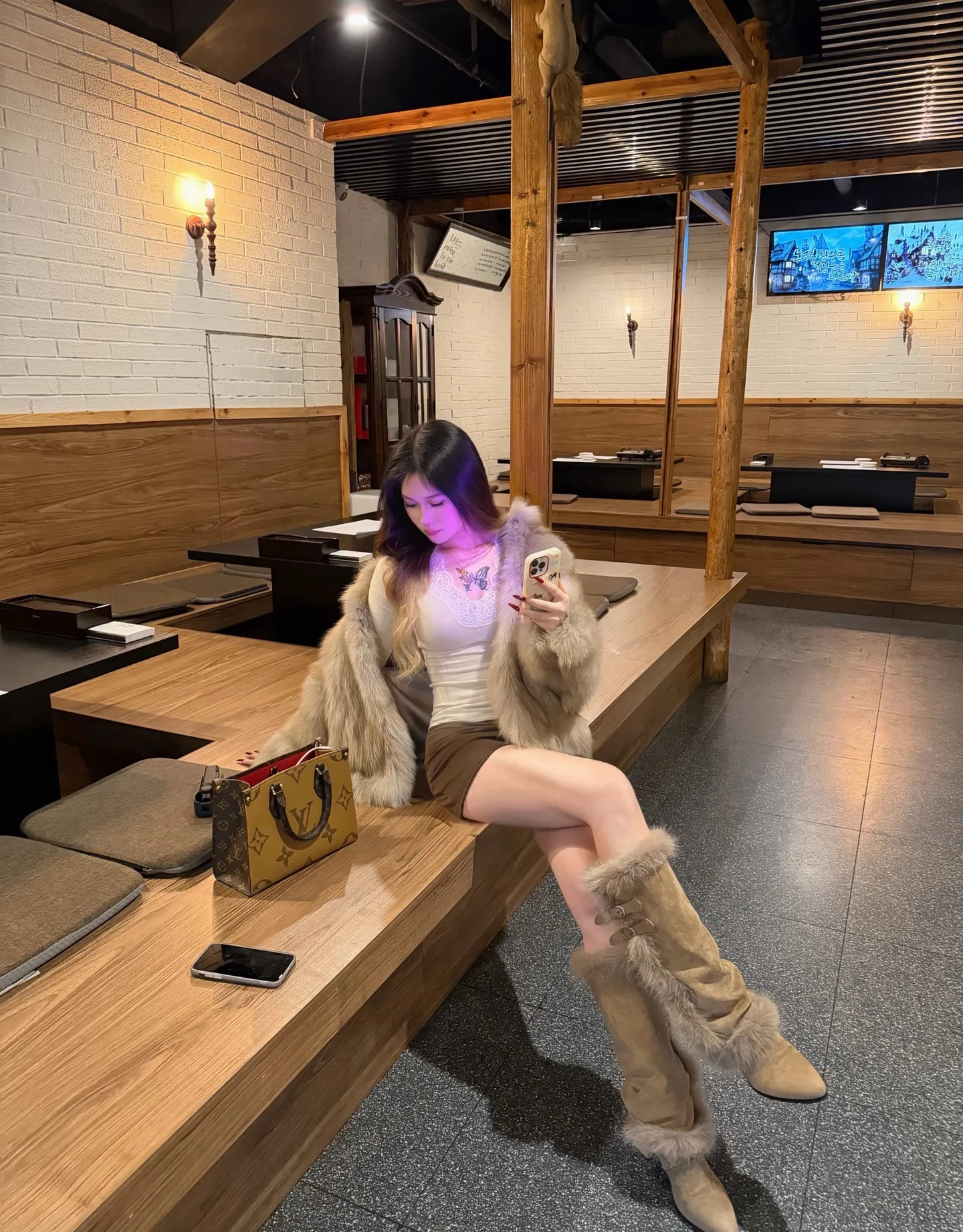 降温后终于把压箱底的皮草翻出来了,搭配新买的老花包,走在街上回头率直接拉满。 这家店的氛围太适合拍照了,木质结构+暖光,随手拍都自带复古滤镜。坐下来点杯热红酒,看着窗外的车水马龙,突然觉得这种松弛又精致的状态,才是生活该有的样子。 其实冬天不用把自己裹成粽子,一件质感皮草+简约内搭,再配上经典款包包,保暖又显贵。建议姐妹们试试同色系搭配法则,浅棕皮草+米色长靴,视觉上更显高挑。 不用盲目跟风...