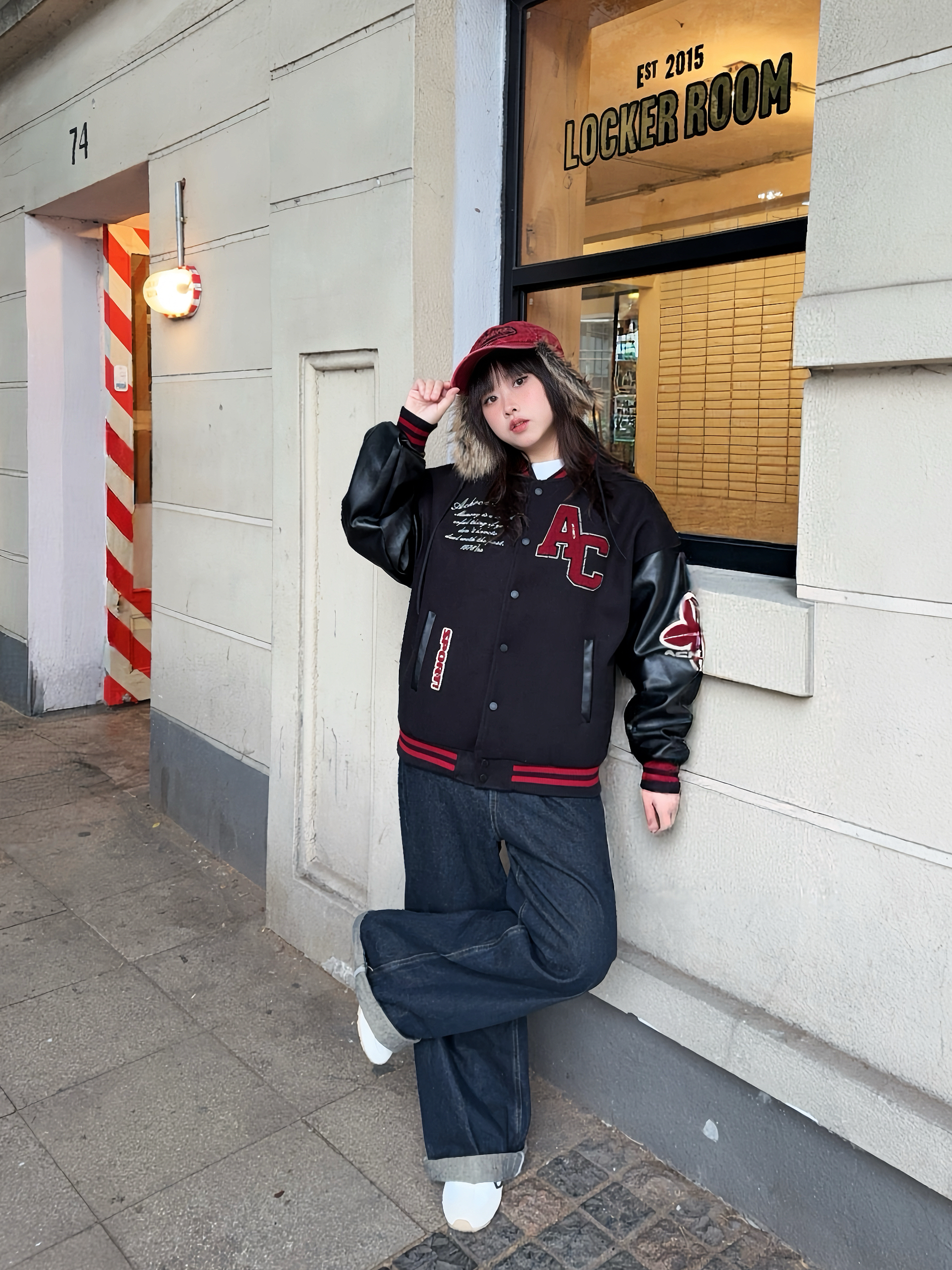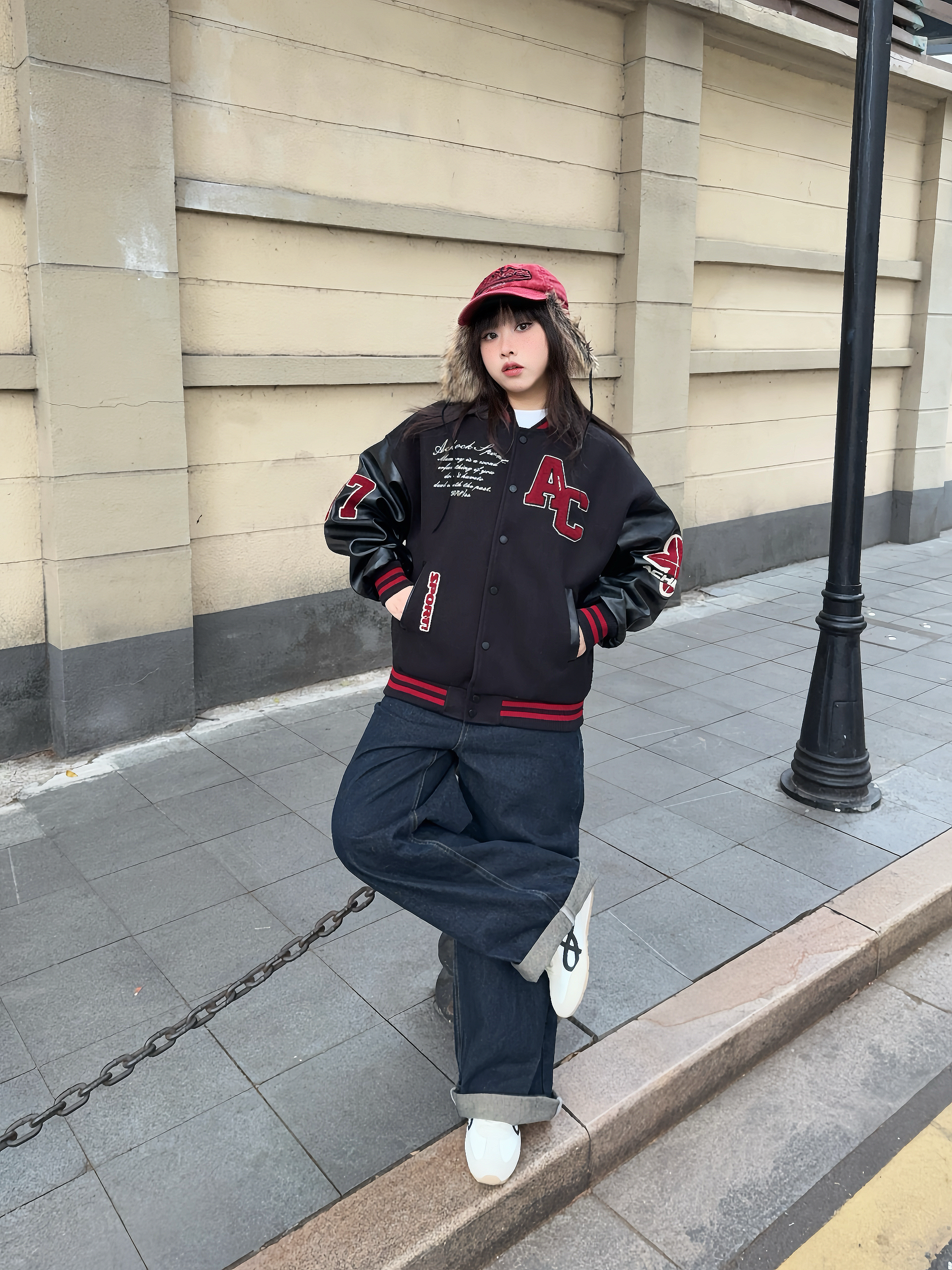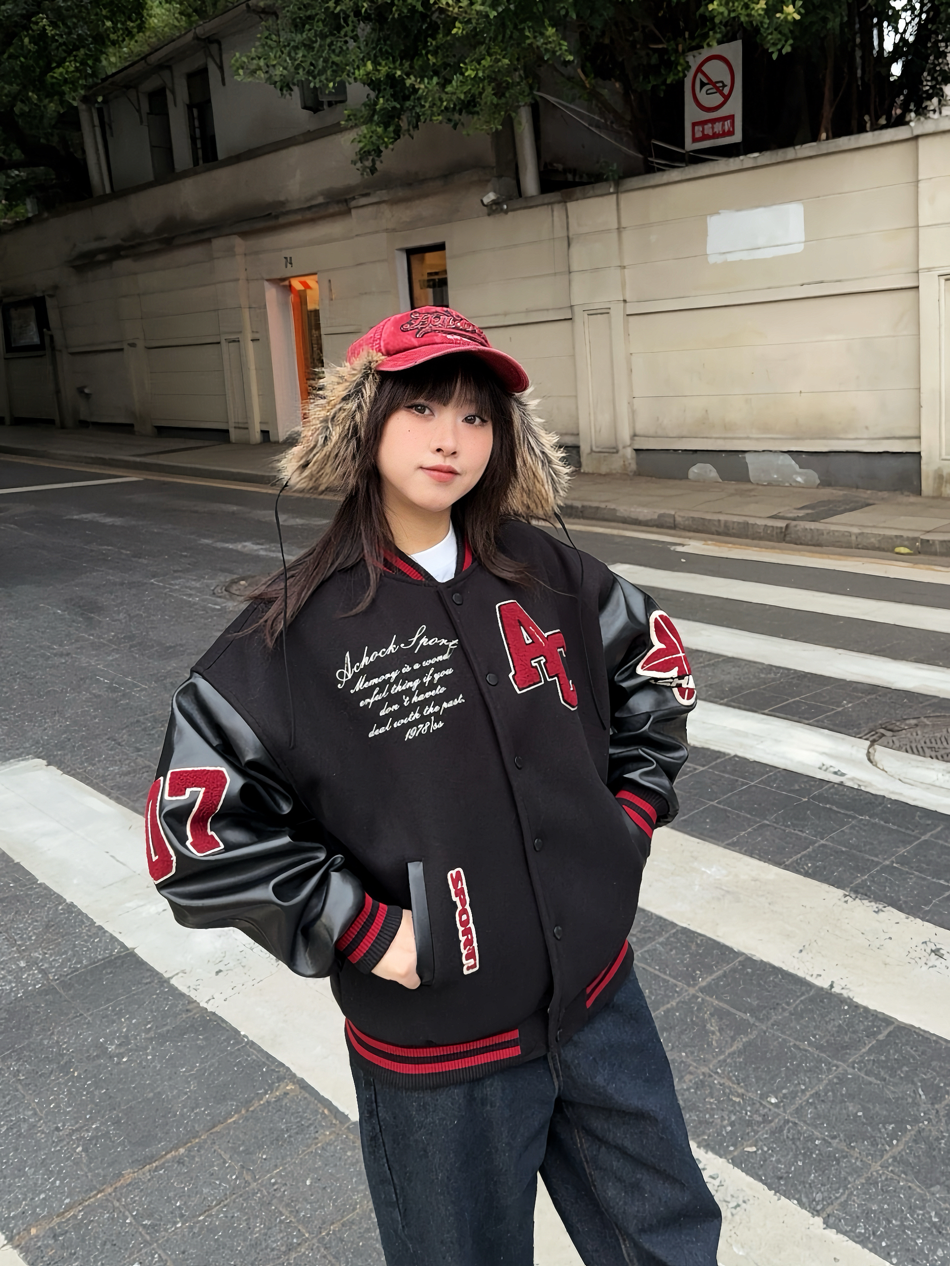 冬日万能搭配非棒球服莫属! 📍Achock这件黑红配色,上身自带街头潮流感,厚度也比较厚,有型又保暖! 穿上复古牛仔裤和同色系棒球帽,硬帅就对了,红色系也适合新年穿✌🏻