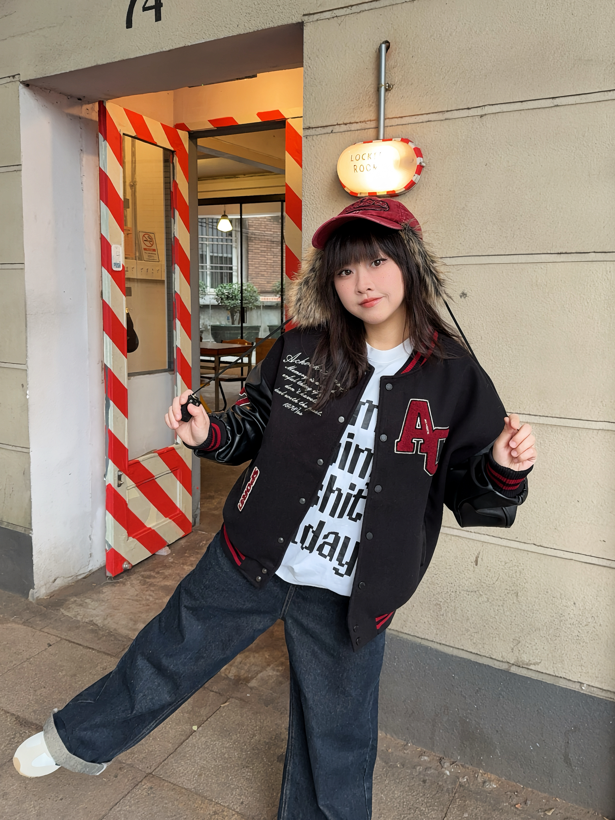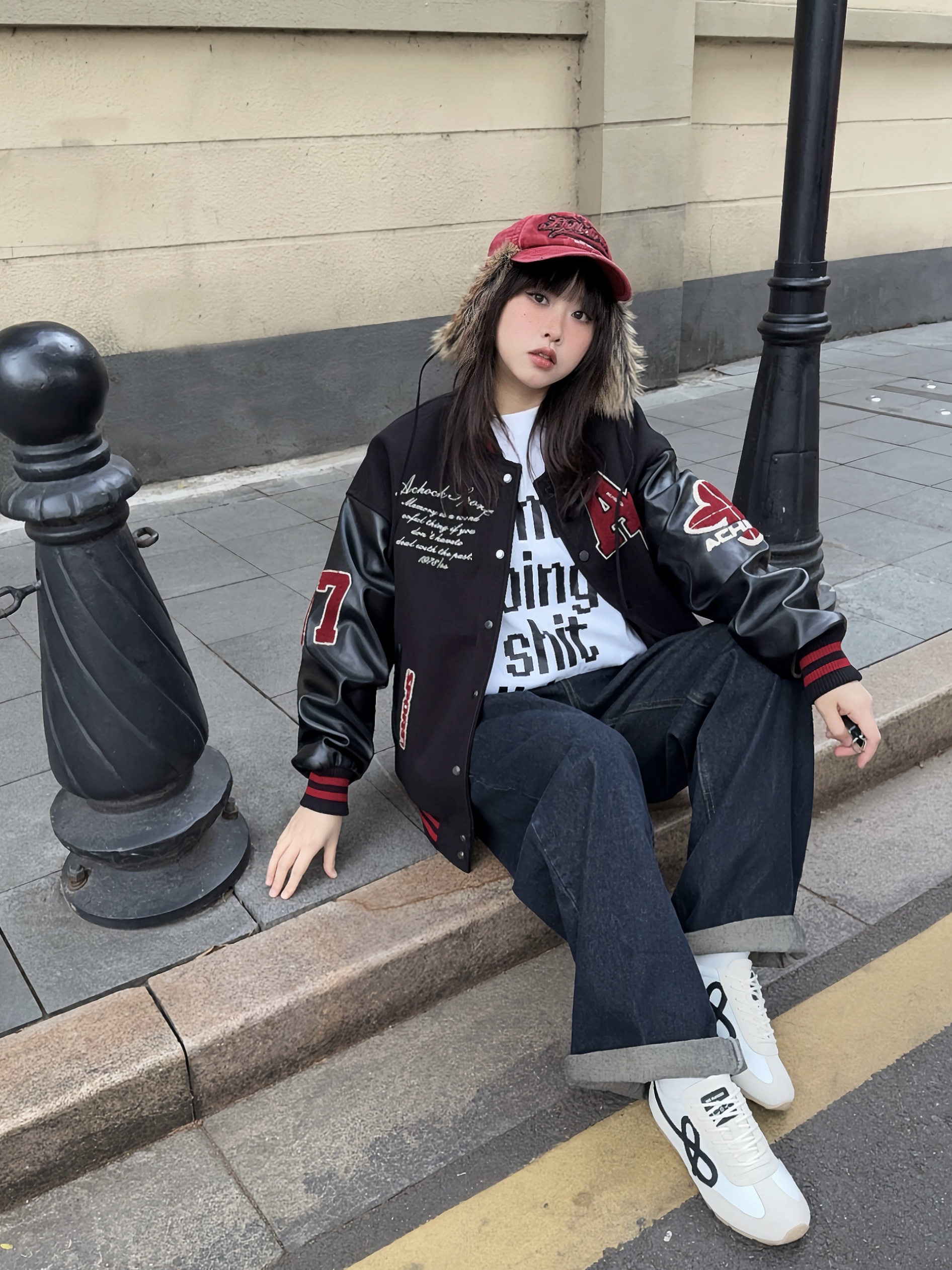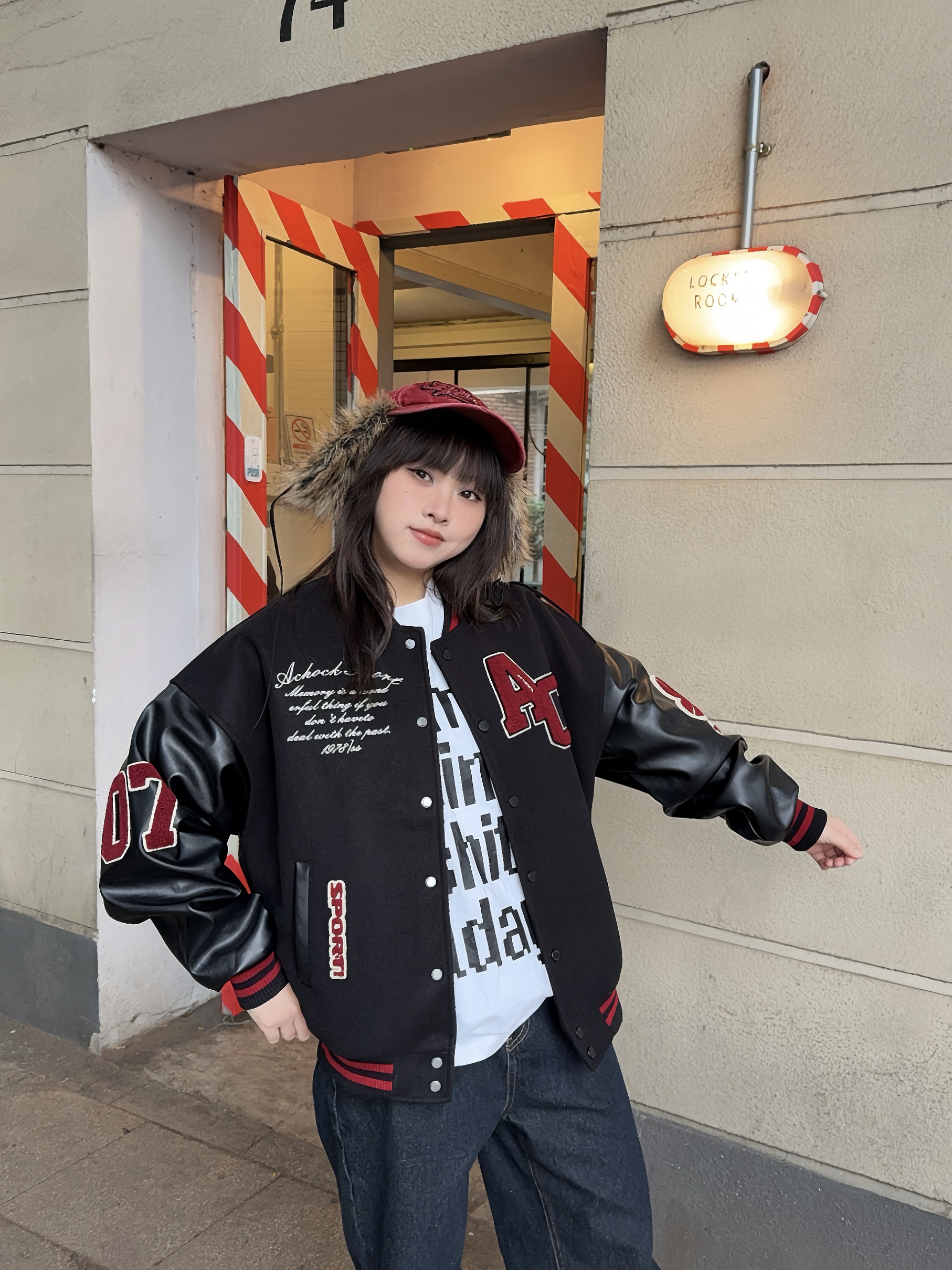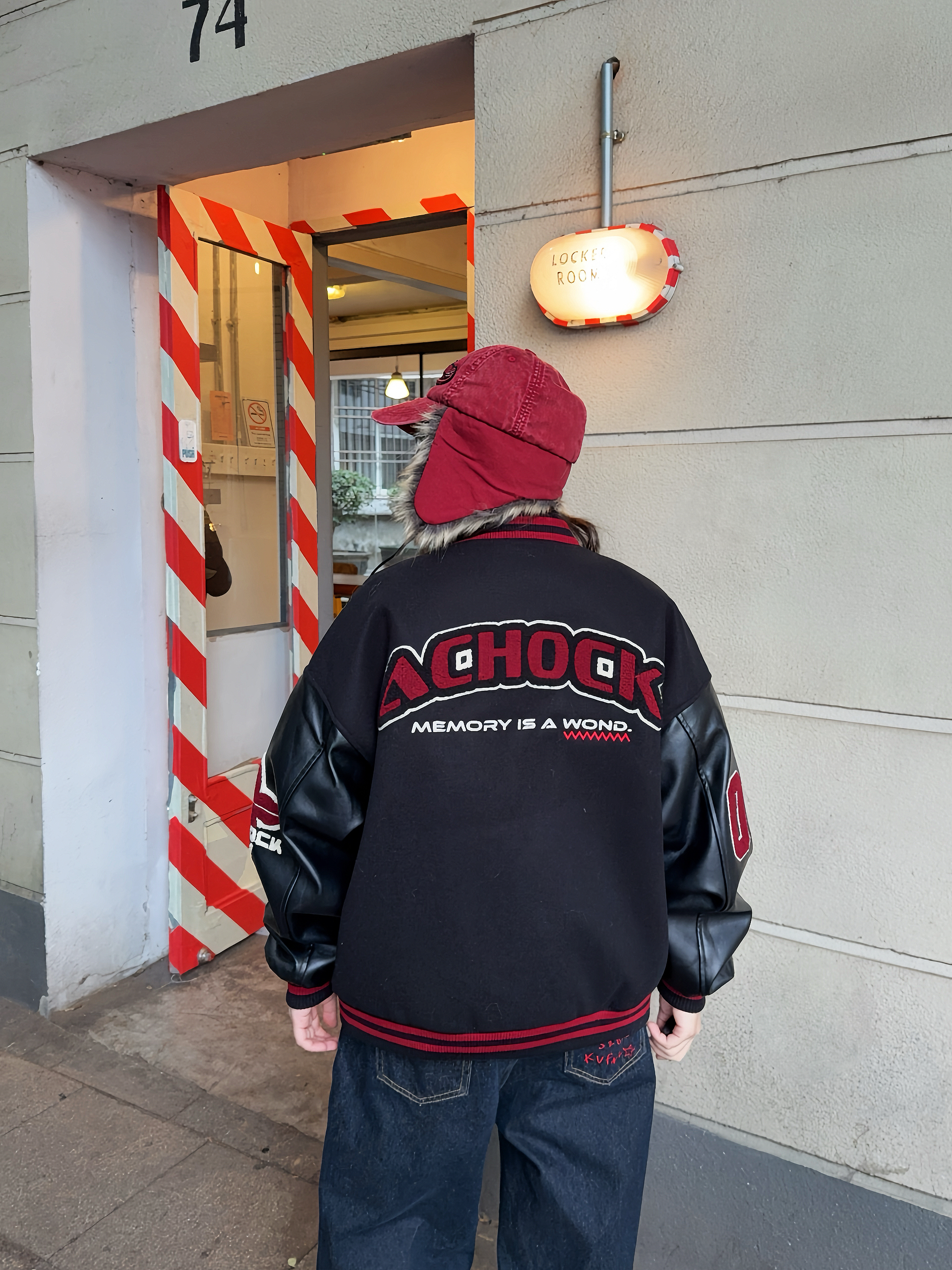 冬日万能搭配非棒球服莫属! 📍Achock这件黑红配色,上身自带街头潮流感,厚度也比较厚,有型又保暖! 穿上复古牛仔裤和同色系棒球帽,硬帅就对了,红色系也适合新年穿✌🏻