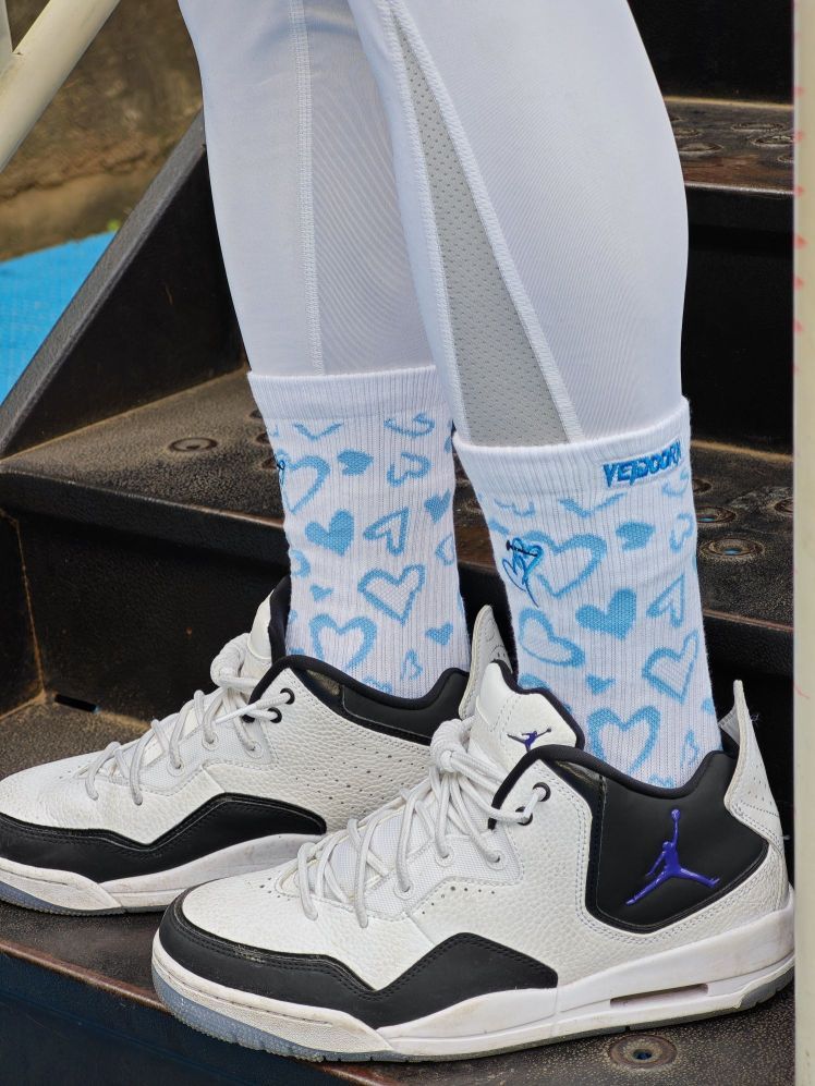 情人节快到咯,今天应景穿这双情人节限定,维动相印系列,寓意心心相印。 整双球袜设计上很不错,袜身大面积的爱心,和情人节搭调,正面和侧面都刺绣了logo,正面是一对爱心❤️🔥,侧面是维动专属标识,整体设计自然美观。 前掌还区分了左右脚,足弓有压缩设计,贴合度相对不错,外加前脚背处透气网眼设计,整双球袜细节满满,目前打一场球下来还没有起球现象。 总的来说,这双球袜不管是送礼物🎁还是搭配打球,都是很...