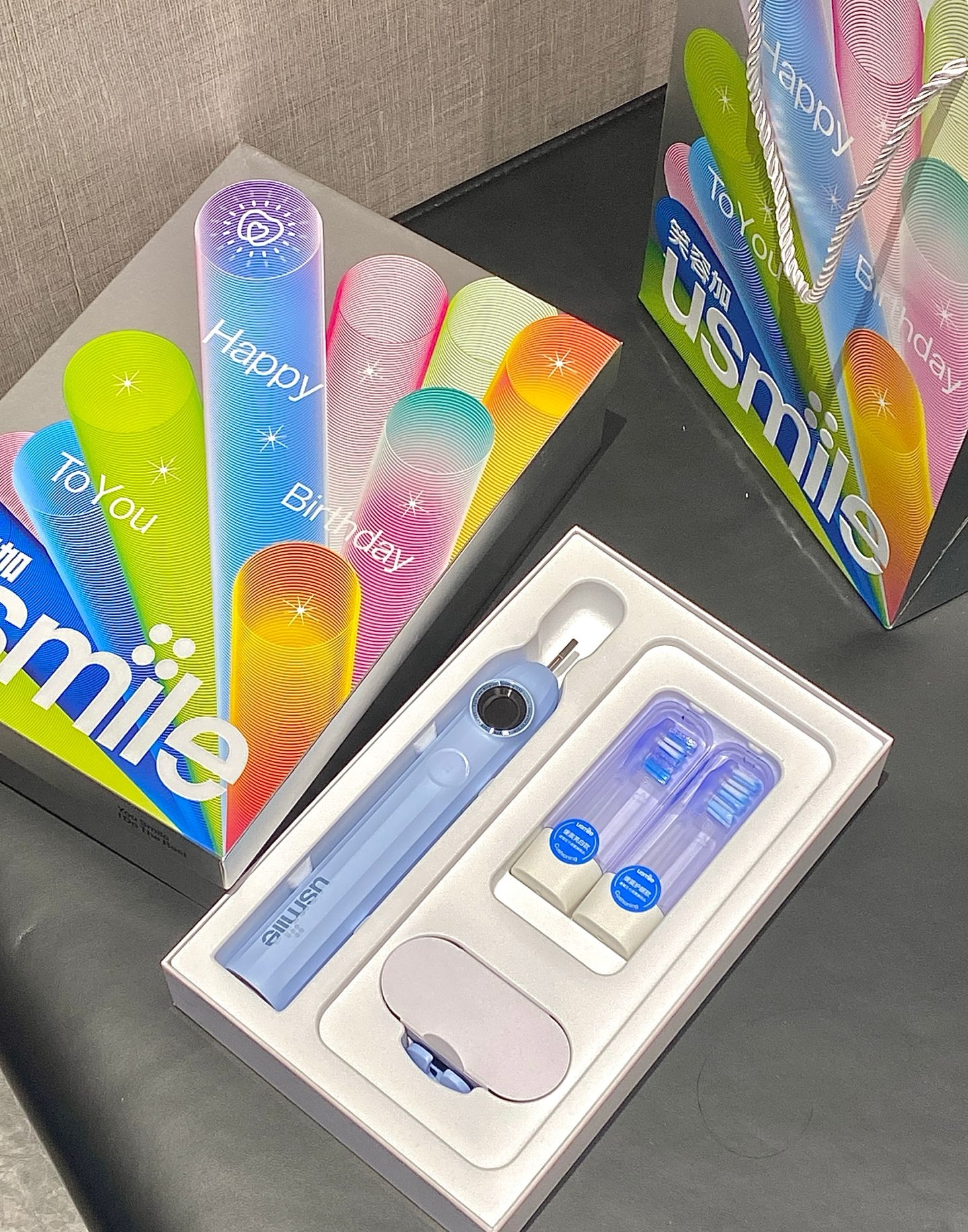 看看我一直在用的这个usmile电动牙刷他这个颜值就很多巴胺 真的很心动而且他很好用 还有智能提醒和帮助我们记录刷牙频率他搭配的这个刷头也是软软的 刷得干净的同时不伤牙龈我和npy用同款还是精美的礼盒 我觉得自己用或者是送你重要的人都不错