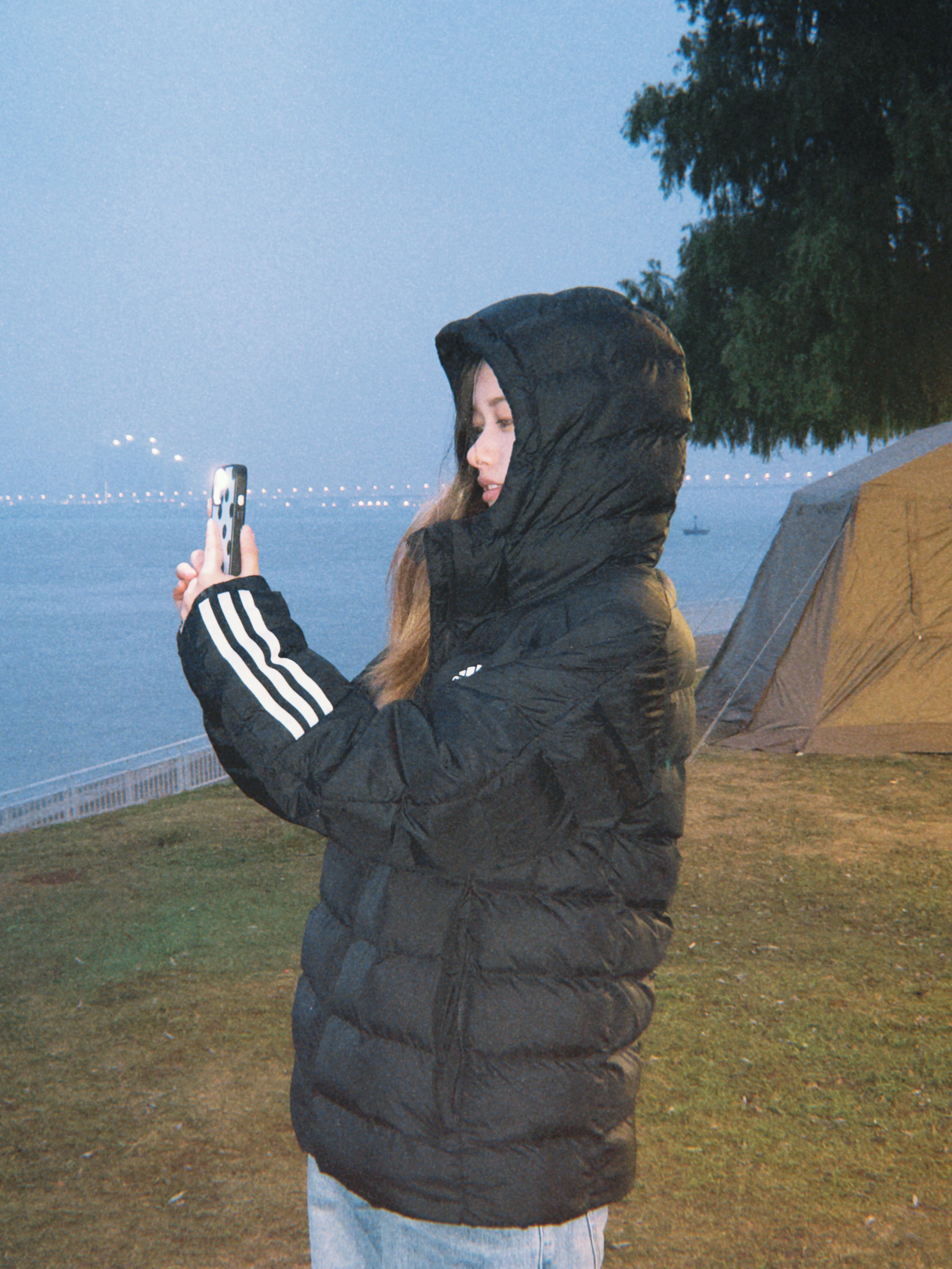 这件Adidas棉服外套拿到手比想象中轻,裹上的时候肩膀不会压得慌,但也因为轻,在江边风大的时候,后背会有点透凉 比如上周降温那天,我裹紧了还是觉得冷😮💨 袖子上的三条杠洗了一次,没起球,但口袋是斜的, 不过内衬里面还有一个口袋 只不过在里面 拿取东西会很麻烦😮💨揣手机总怕滑出来,已经掉过一次在地铁座位缝里。 长度刚好盖到胯,配牛仔裤还行,但穿厚裤子会有点卡腰。面料是哑光的,沾了奶茶印子,拿...