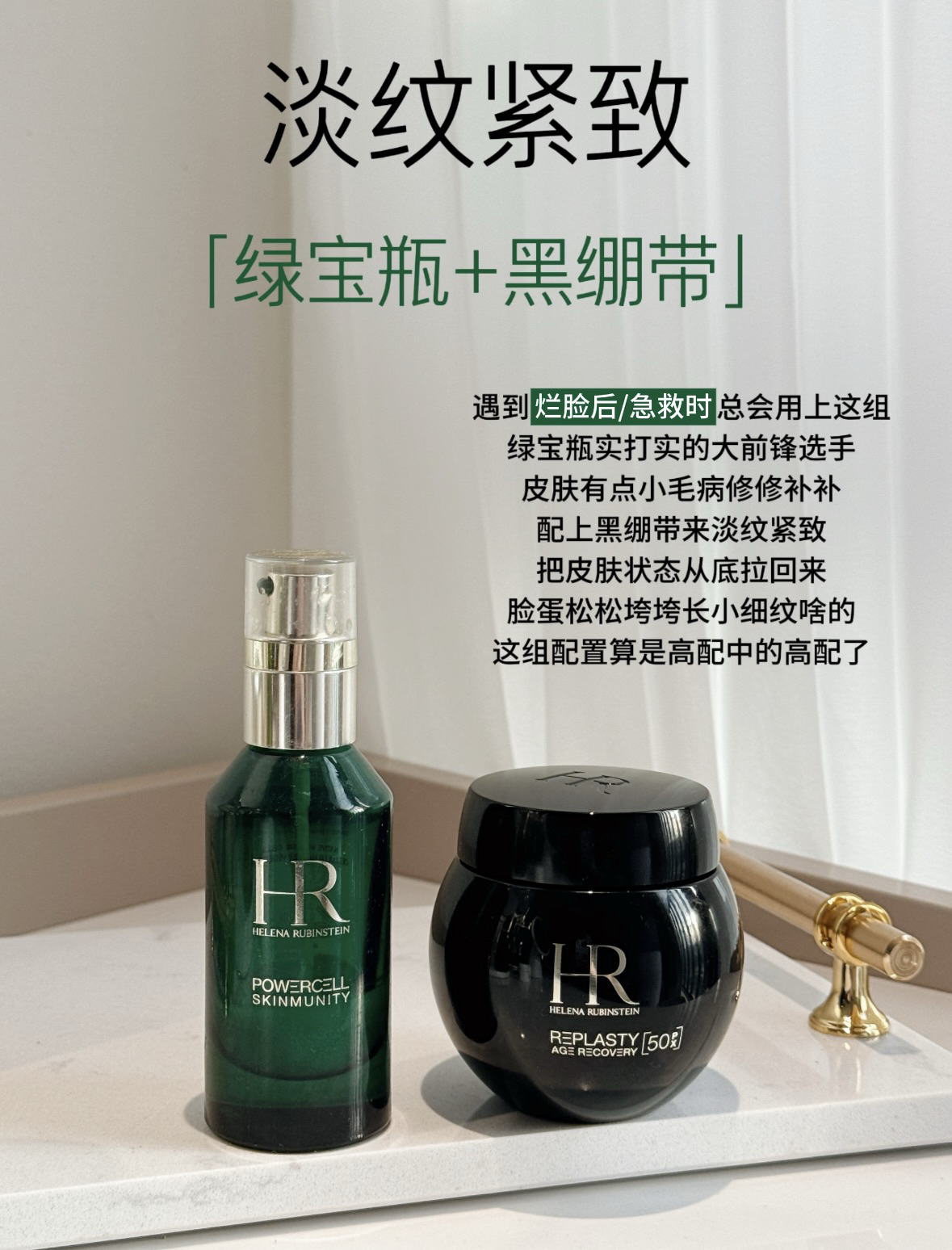 1. 急救回春组:淡纹紧致「HR绿宝瓶精华 + 黑绷带面霜」 • 烂脸急救后、皮肤松垮、细纹明显时 • 绿宝瓶为修护前锋,快速修补皮肤小毛病;黑绷带含高浓度玻色因,从底层促进胶原再生,实现淡纹紧致。 • 适合肤质:所有肤质,尤其熟龄肌、屏障受损肌、有松弛细纹困扰的肌肤。 2. 透光灯泡组:抗氧提亮「SK-II神仙水 + 小灯泡精华」 • 熬夜暗沉、肤色不均、气色差 • 神仙水温和代谢角...