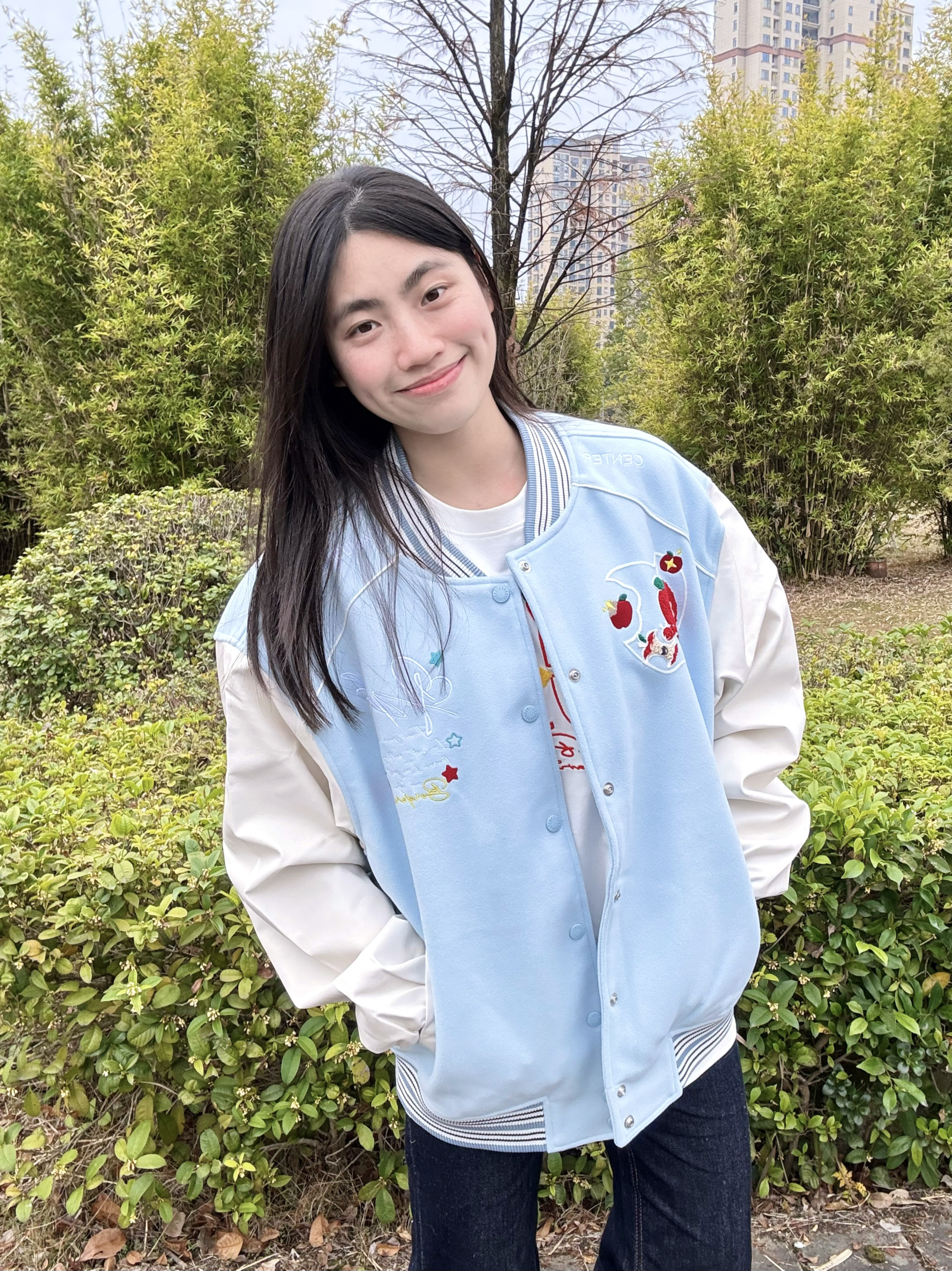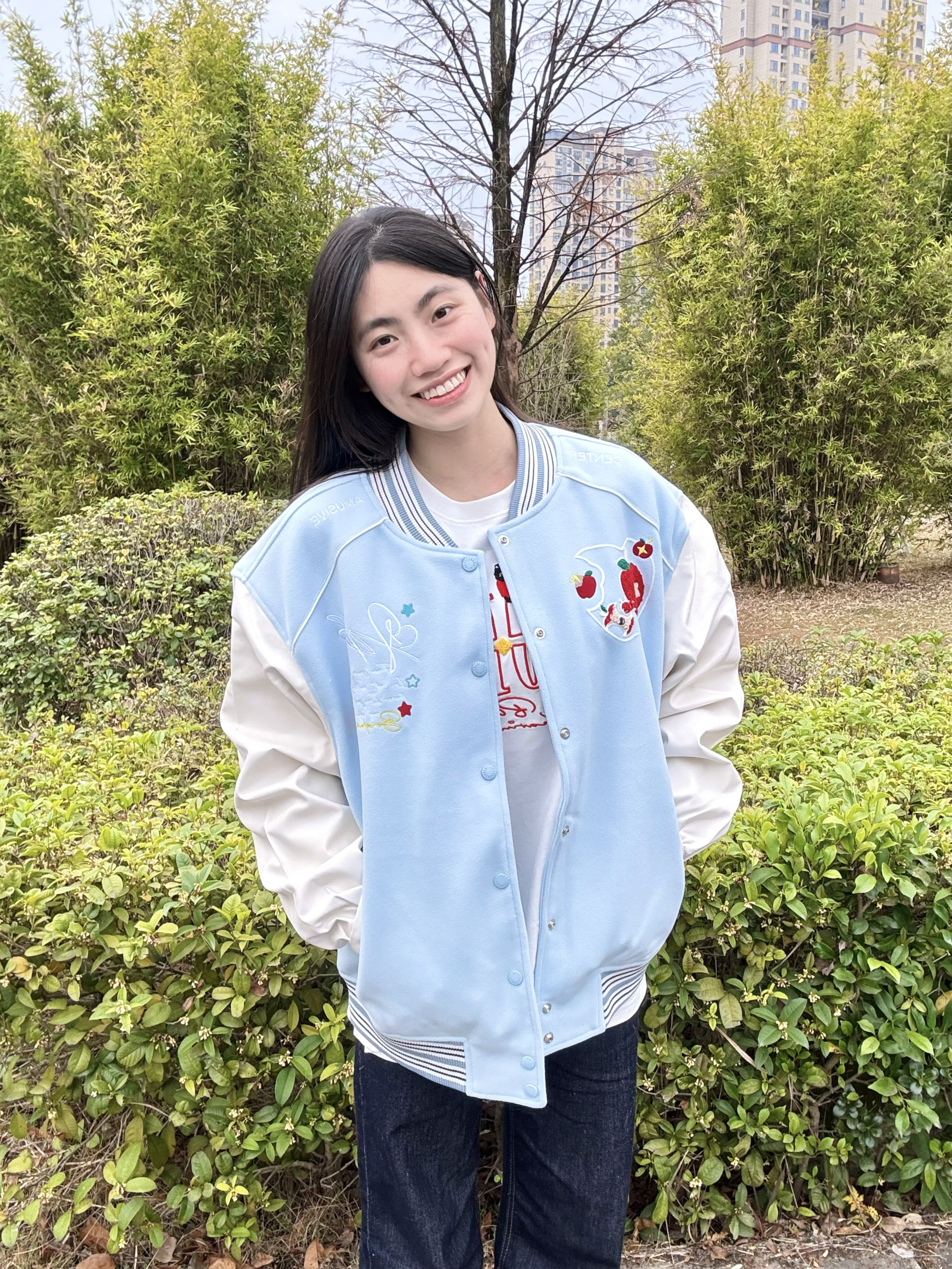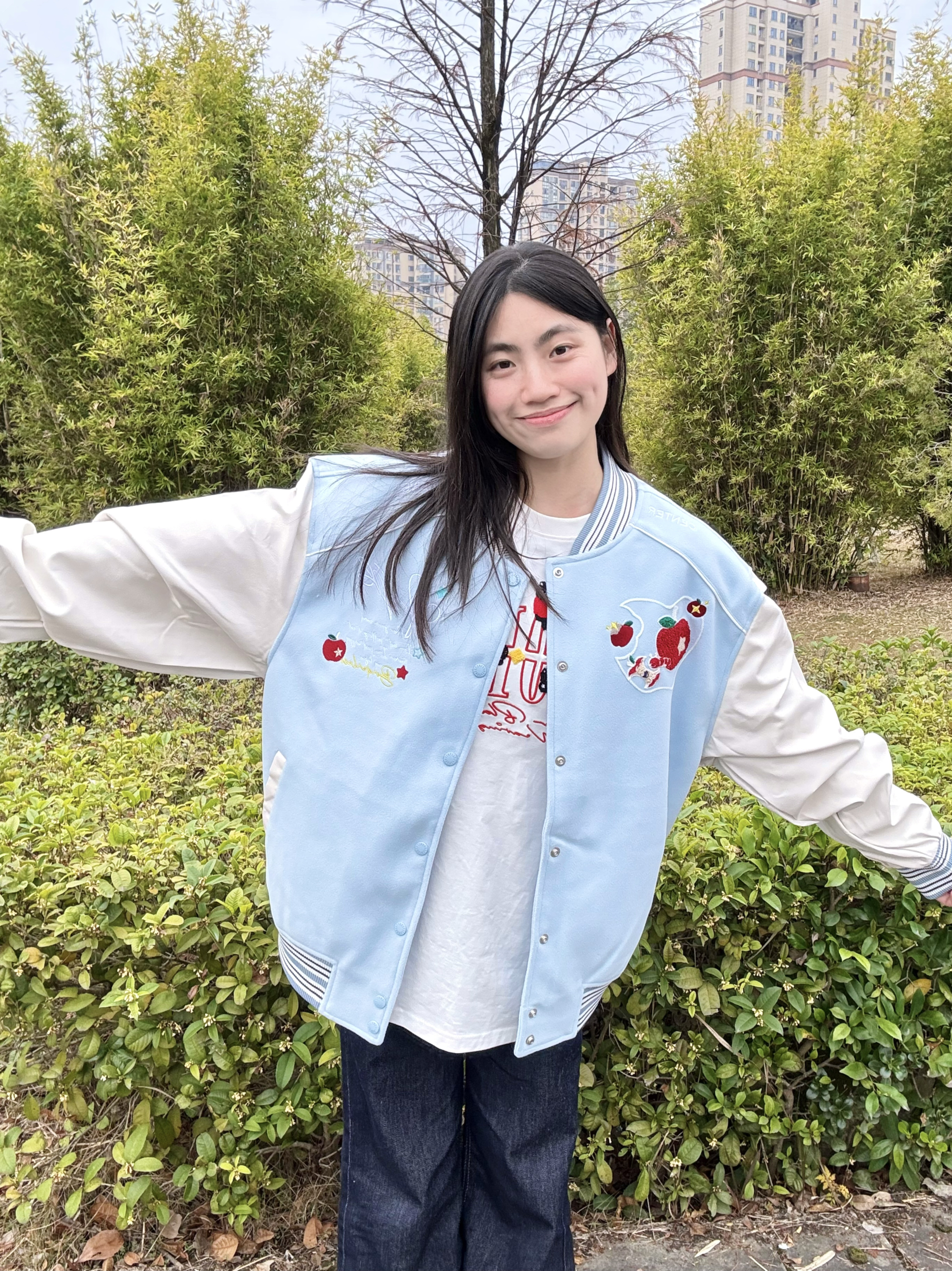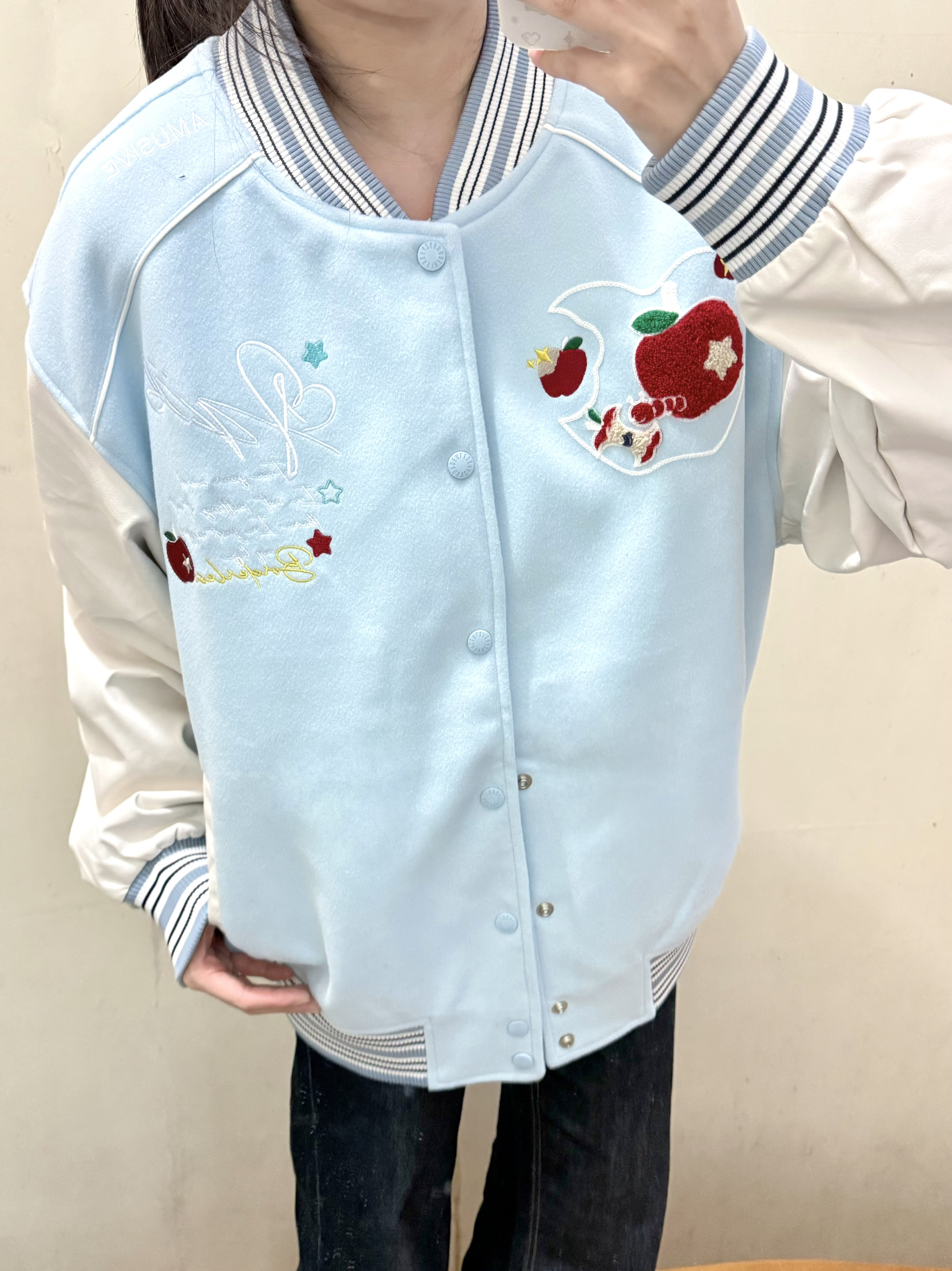 166 102穿的是M码 今日份甜妹穿搭被这件蓝白棒球服承包了!蓝白拼接的配色温柔又舒服 不是传统棒球服的酷感 穿上就是软乎乎的奶甜少女 宽松版型对身材超友好 不会臃肿呢 喜欢的宝宝可以参考一下哦