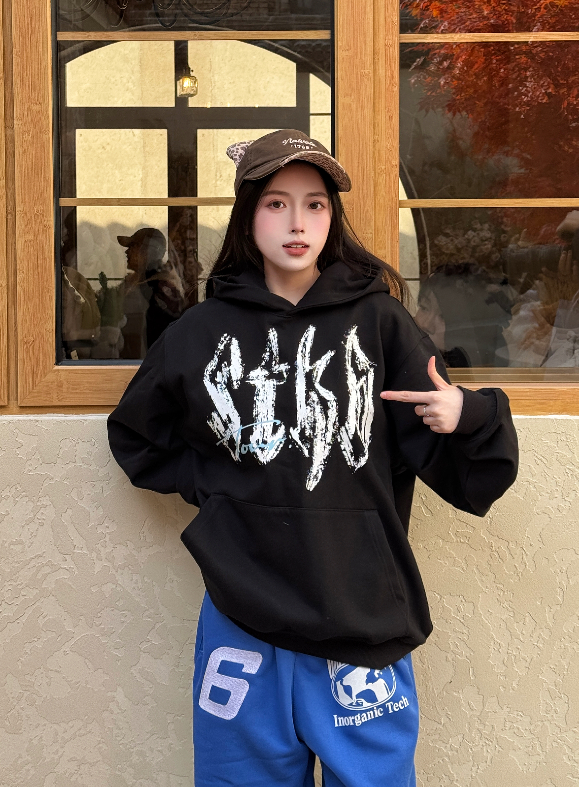 ASEN主理的STK真的太会了 整个设计黑底白字连帽衫 学生党和上班族都超适合 oversize版型对各种身材都很友好 下身搭个亮色卫裤 美式复古那味儿直接就出来了 这波是把rapper的穿搭密码焊在身上了