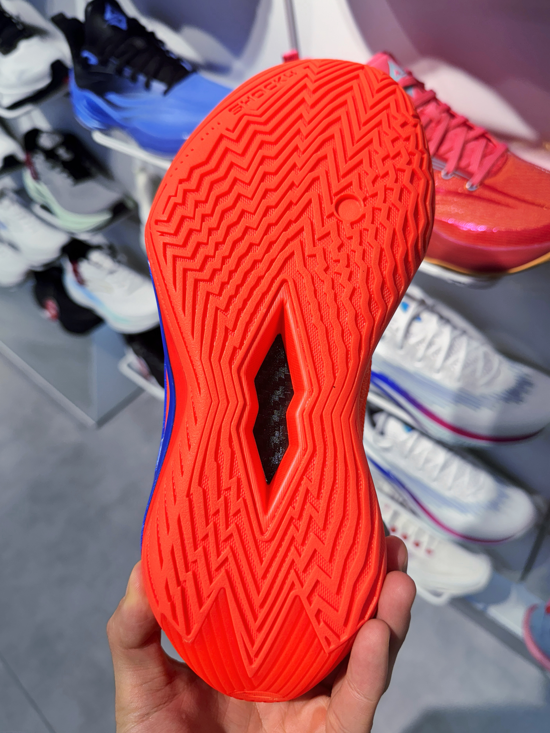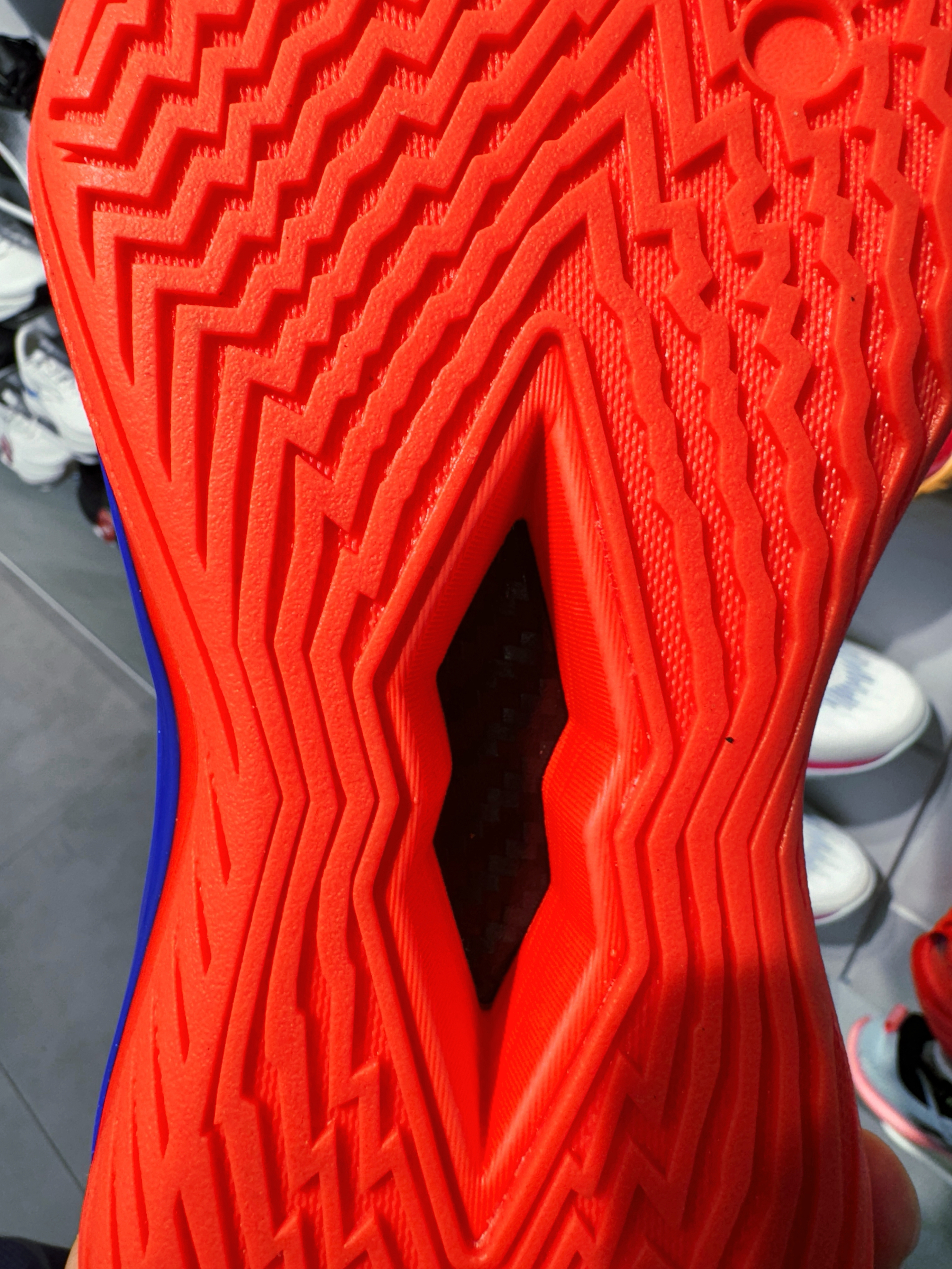 这双狂潮7我在专柜远看到时候还以为是gtcut2 真的是确实帅啊!!大红的设计深蓝点缀这不就是妥妥的男主角配色嘛❗️ 透气的网面材质,打足一整天也不闷汗!全方位的包裹性也不用担心它压脚!全掌的减震真的能好好的保护膝盖!中足的碳板怎么变形也不怕变形!稳稳的抓地力!弹性反馈感是真的好啊!很适合我这种灵活型的锋线!!打了一天底版的纹路也是清晰可见,水泥地杀手啊🥷 想要一双超强减震和帅到没朋友的!那...
