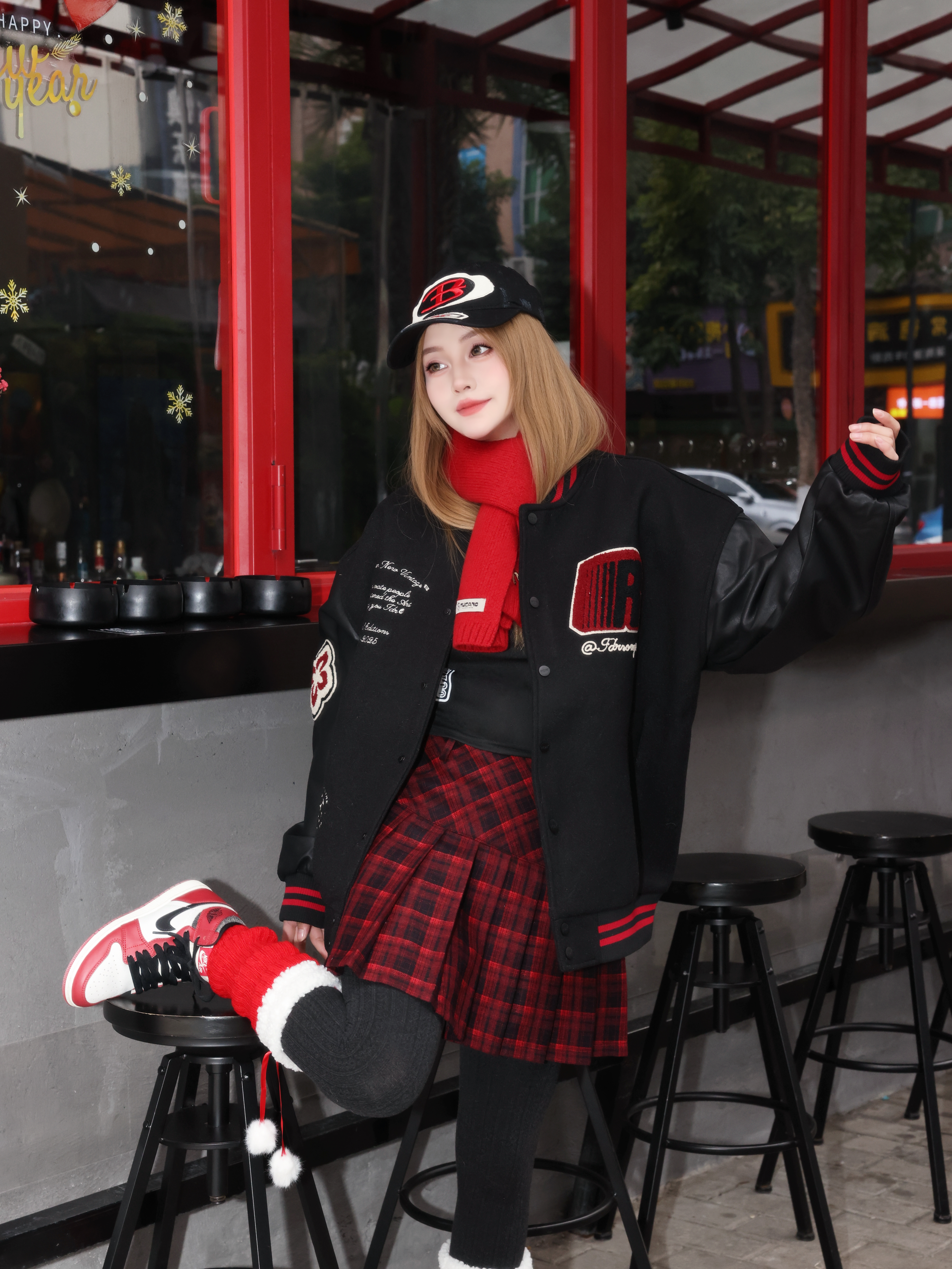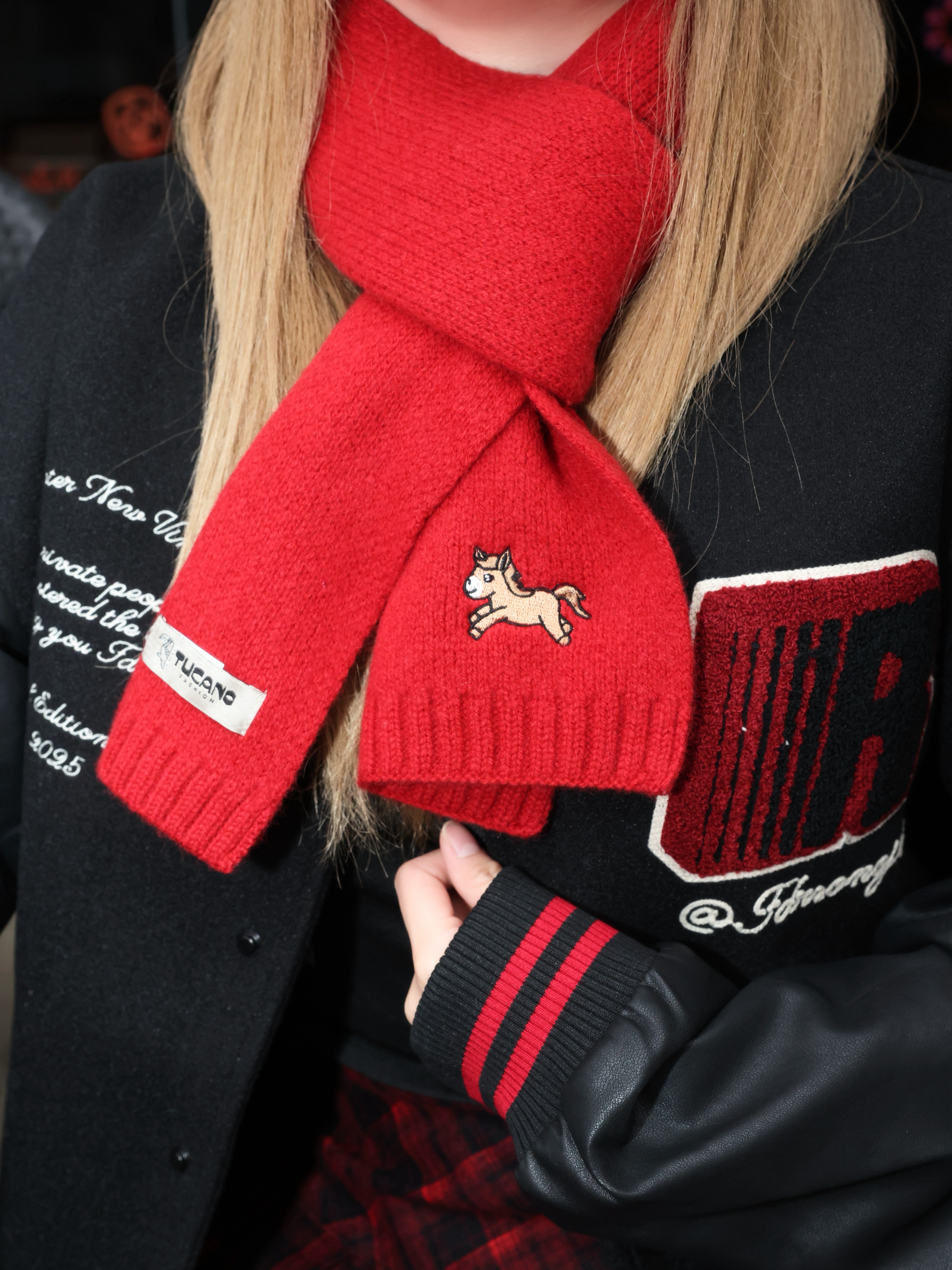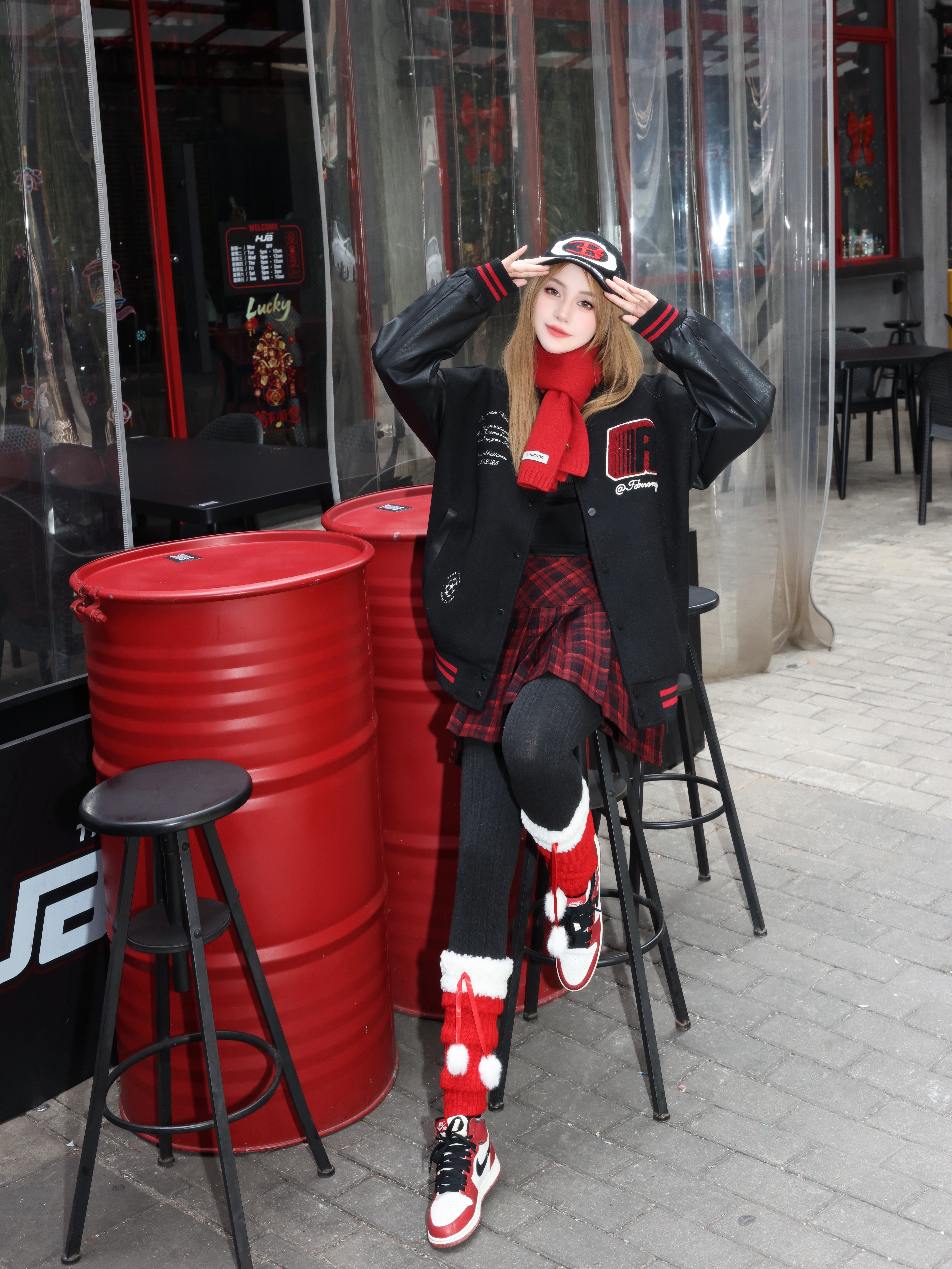 感觉下一秒就过年啦🧨 🐎马年开运穿搭 可以开始准备啦!! 身上搭的围巾🧣 配上礼盒设计真的好适合新年送礼啊! 100%纯羊毛+中国红的颜色❤️ 还有个可可爱爱的精致刺绣吉祥小马元素🐎 搭起来很显气色哦 一身酷酷的美式风夹克 搭今天的红黑色格纹裙 感觉就像是甜酷和学院风的结合 穿上同色系的AJ高帮球鞋会很有氛围哦