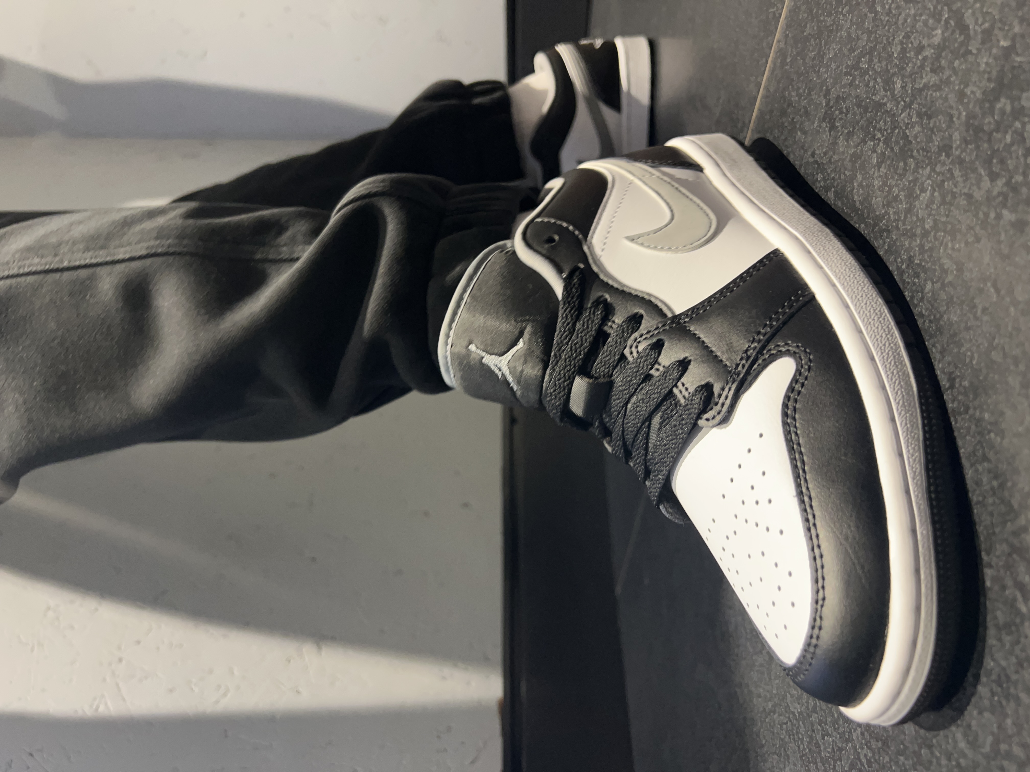 今天与大家分享上脚的鞋款Air Jordan 1 low "shadow" 影子灰,作为最受欢迎的低帮AJ配色之一近年来几乎成了每年都会复刻推出的常青复古百搭鞋款。 鞋款皮革比较好打理低帮造型显腿长深色系鞋款上脚不臃肿,复古的造型轻松搞定各种穿搭上脚舒适度超乎预期日常出街回头率超高,目前5开左右的价格也很友好哪怕是学生党也可以接受。
