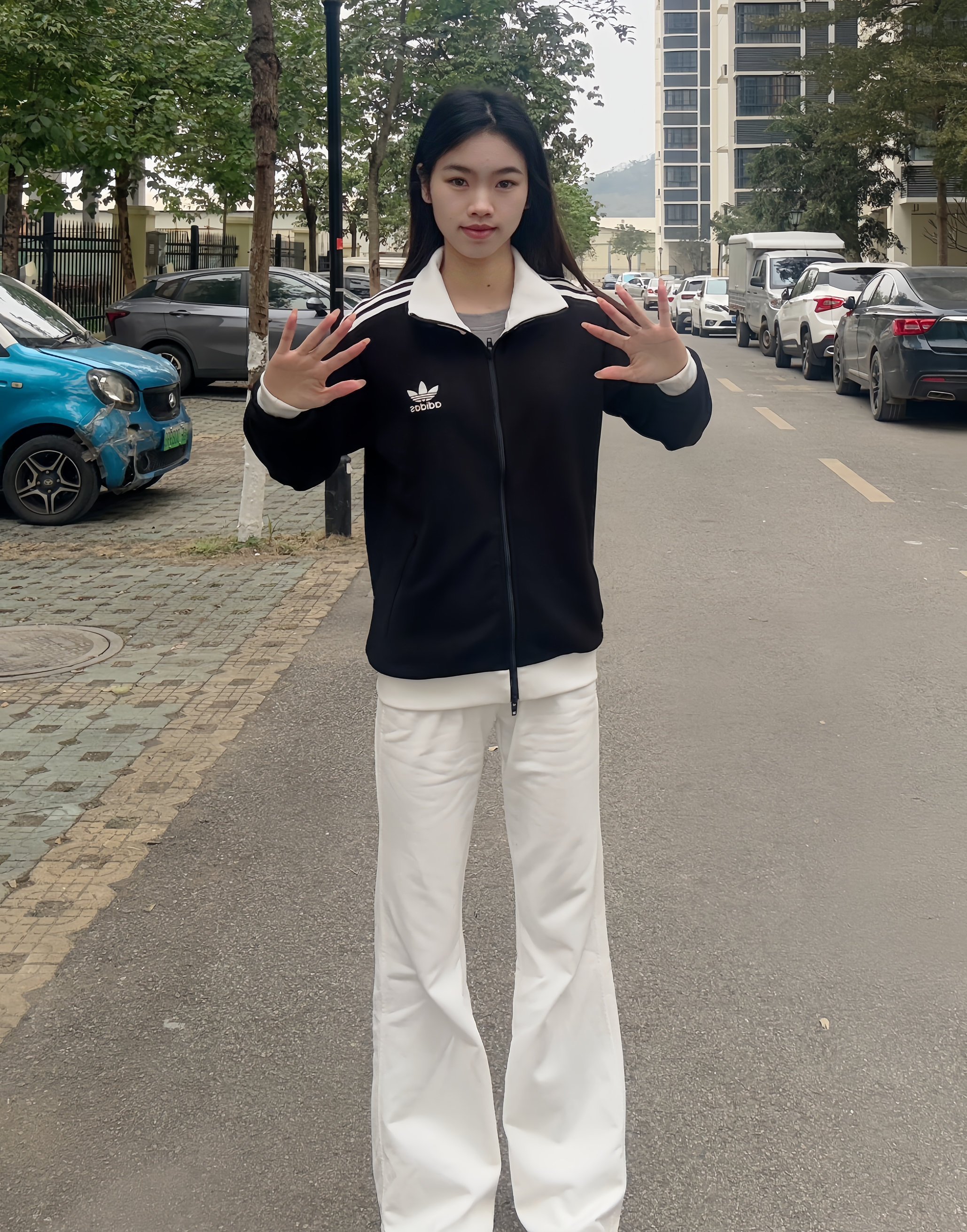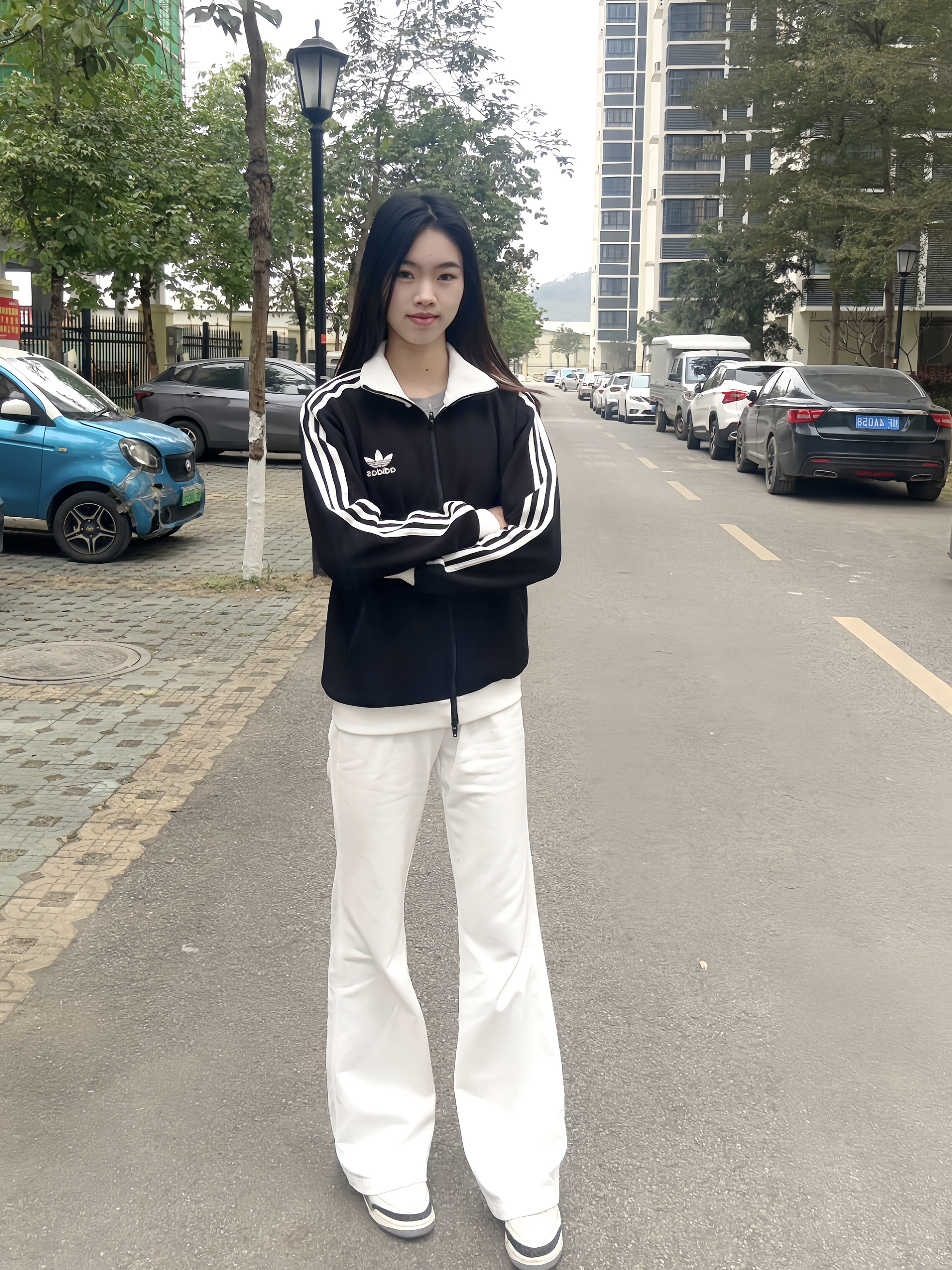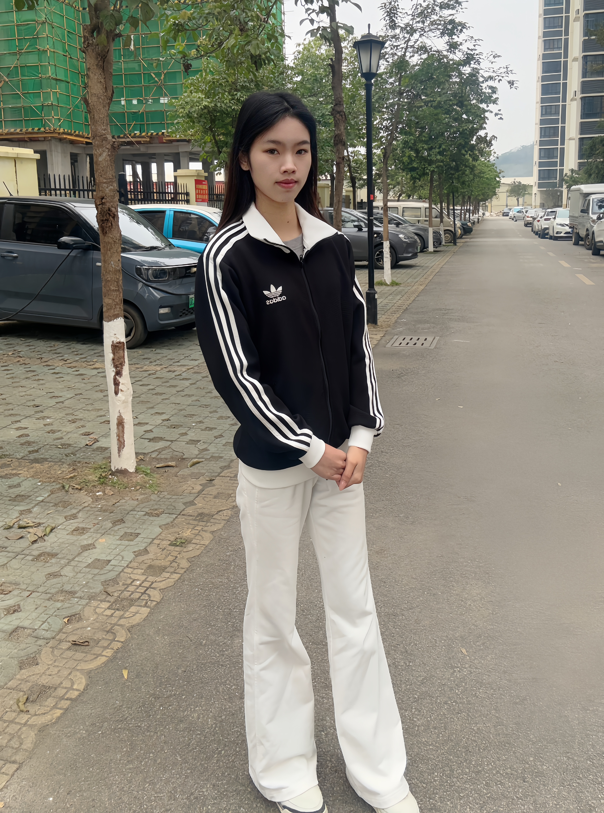 简约大方穿搭,干脆利落的外套🧥让人一眼看中🪄 贝贝们晚上好呀,今天出去玩穿的是经典阿迪外套🧥 面料很舒服,小logo设计很标准~~整体以黑色元素为主,白色元素为辅,回头率超高!🤩🤩 拉链设计是双开,袖子是收缩的很舒服自在💕💕 我选的是S码刚好合身,标准的尺码哦~ ✨✨💫 选中了白色卫裤作为搭档,一身下来显高又显气质呀~平常搭配其他裤子也很很酷,你们最喜欢怎么搭配呢?