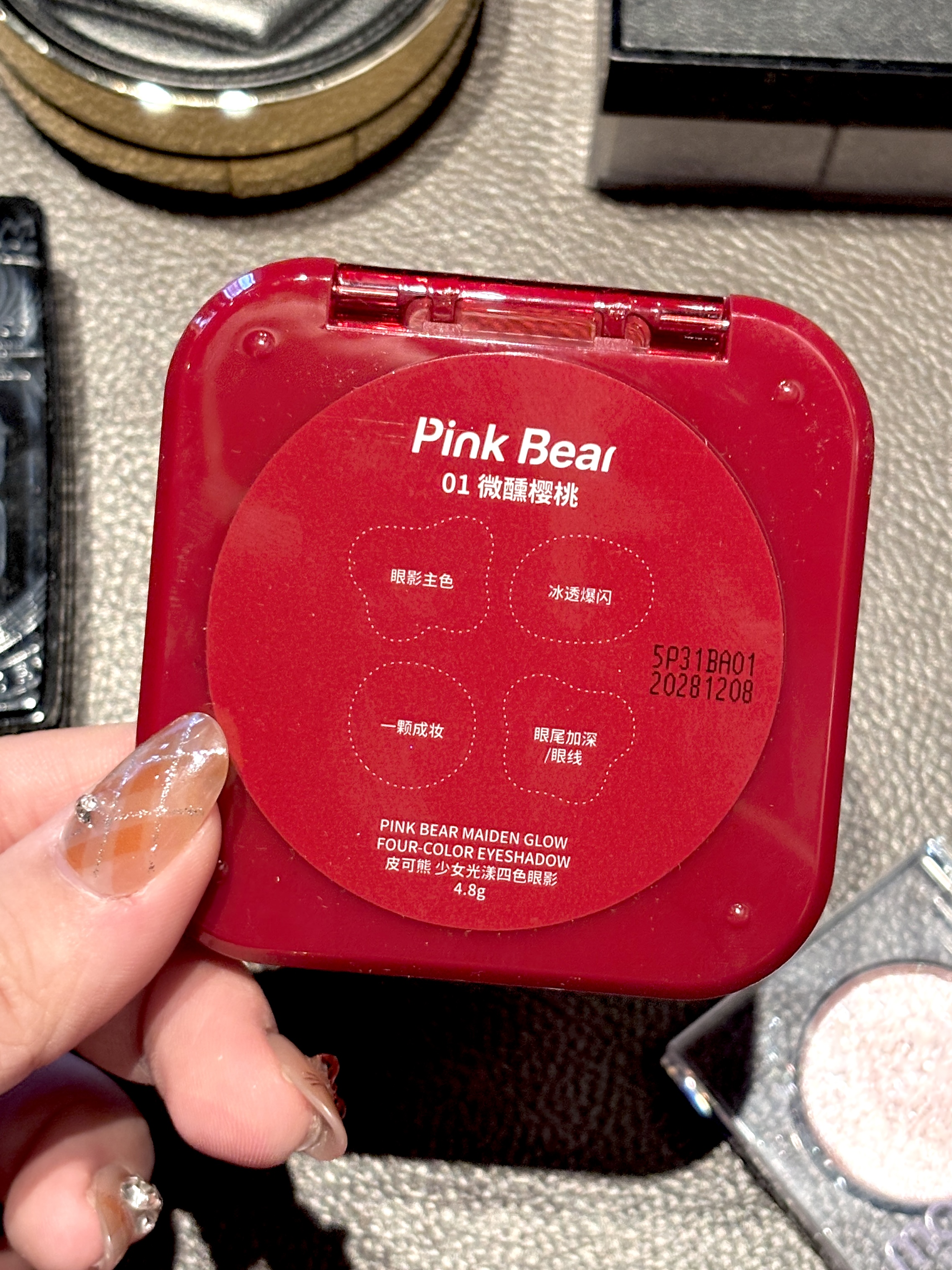 本篇笔记关联了【新年限定】PINK BEAR/皮可熊 四色眼影 显色持久 4.8g 01微醺樱桃等商品,为用户提供真实的使用体验和购买参考。