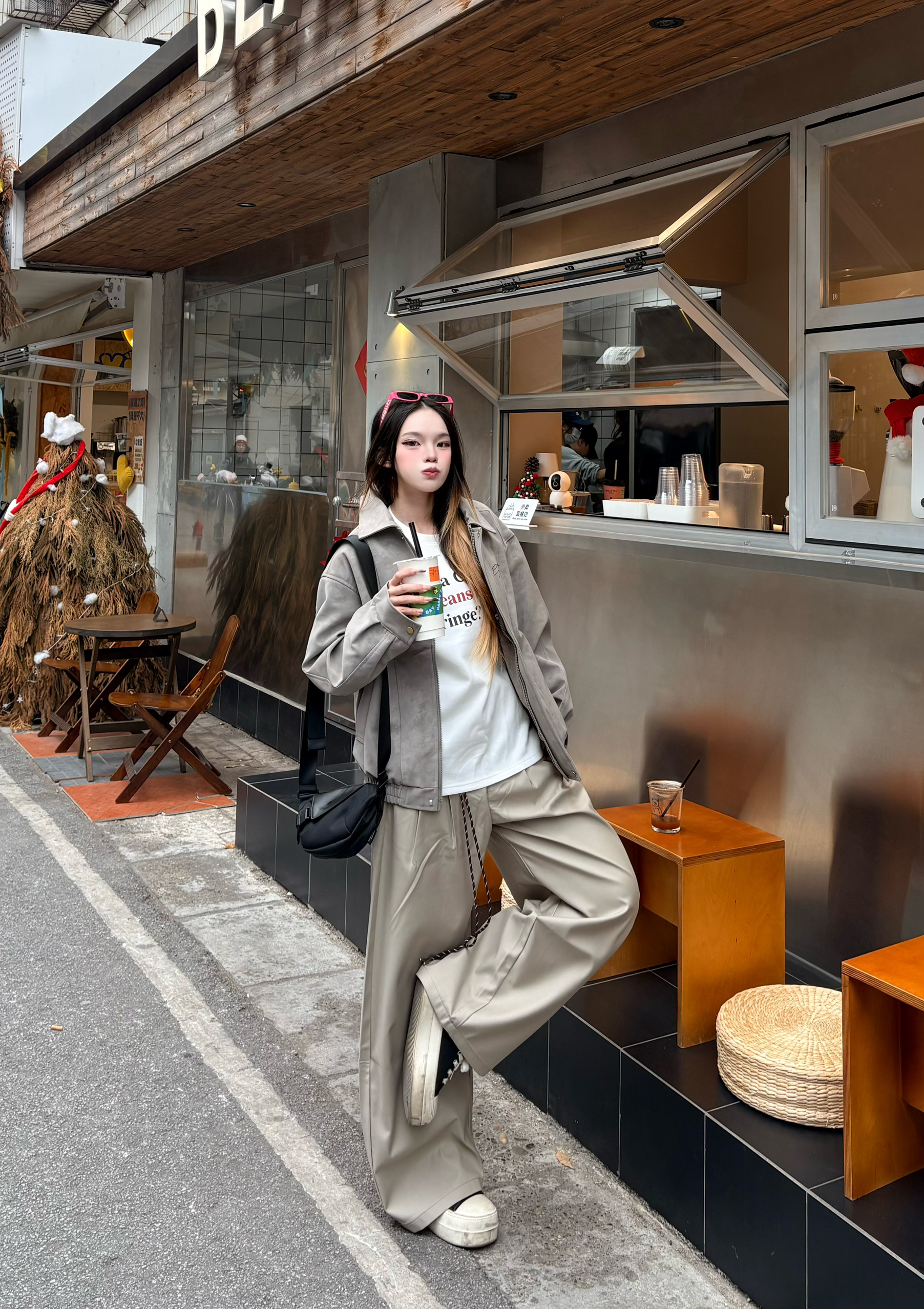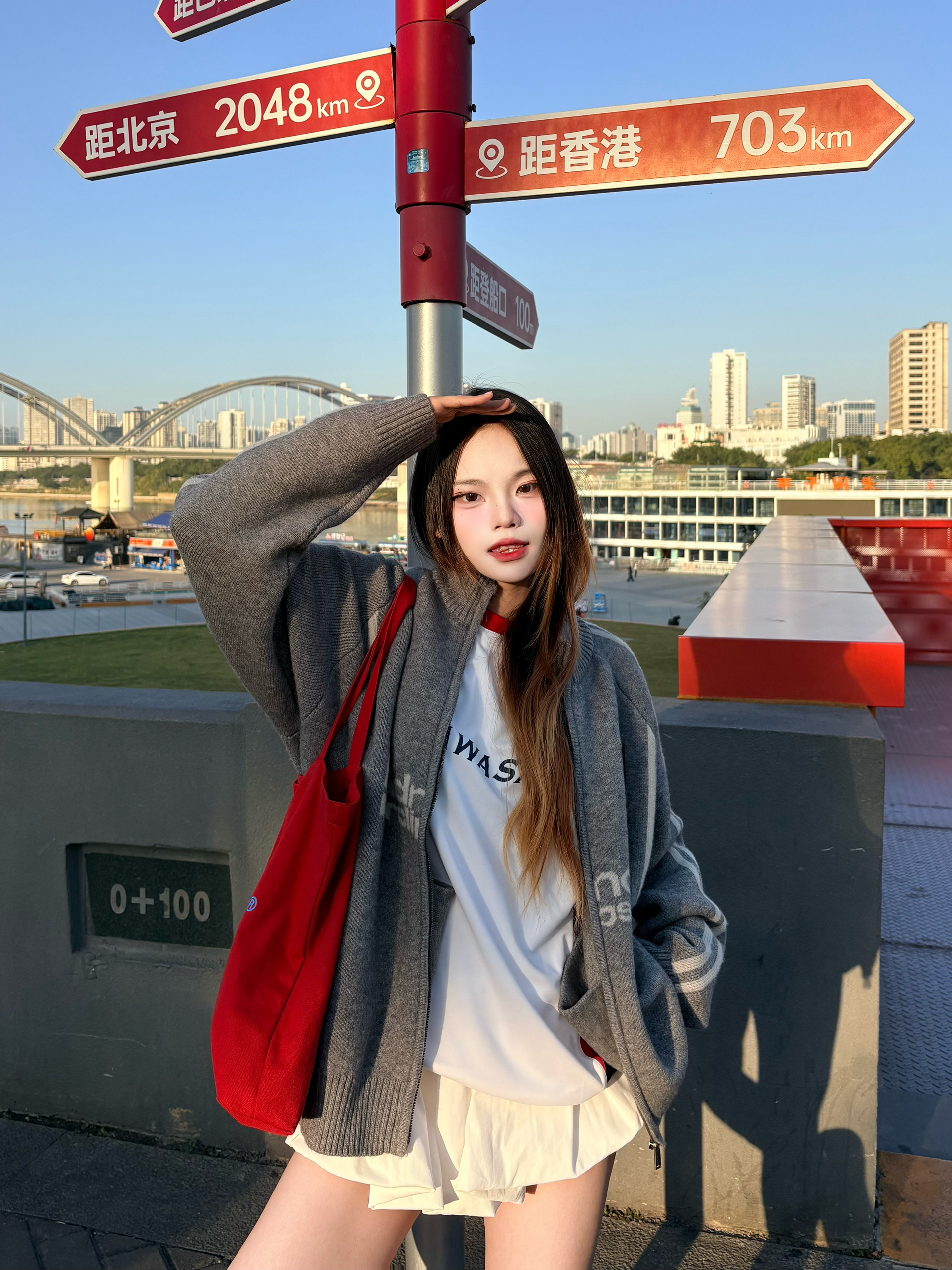 这套灰开衫+白T+长袜的搭配,把早秋松弛感玩明白了 oversize针织衫慵懒又有腔调, 下衣失踪配潮袜+厚底鞋,再拎个红袋点睛, 街头感直接拉满~ 不管是江边打卡还是日常出街,随性又时髦,早秋就靠这一身拿捏潮酷风格~ 164/96 👚m码 👗s码