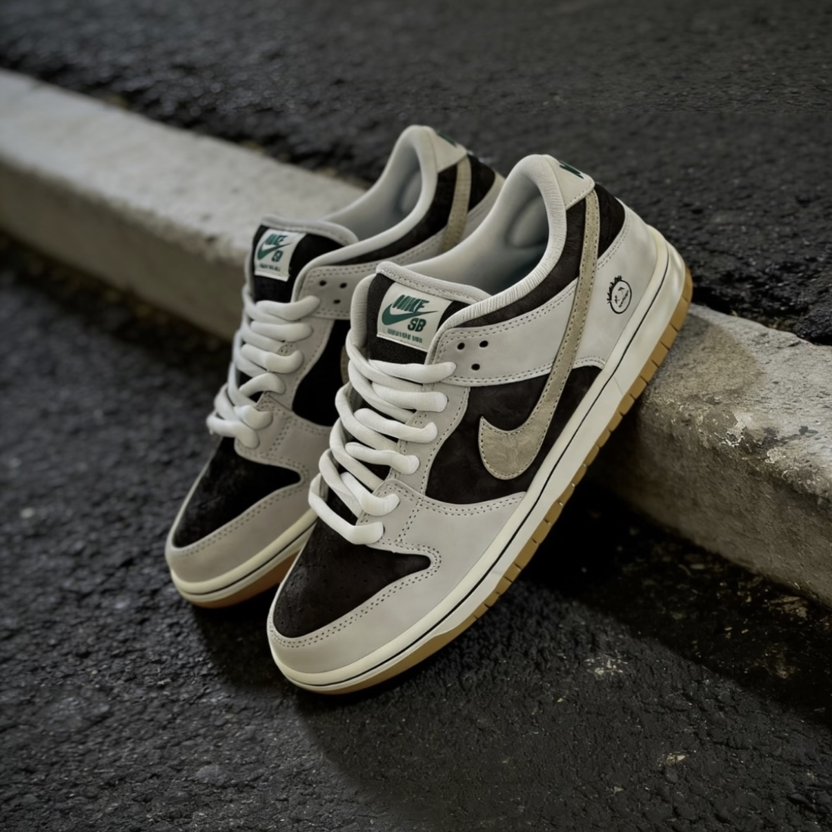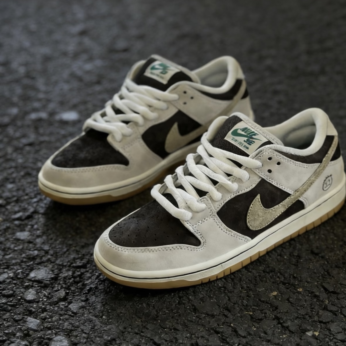 第一眼就被这杯「冰咖」的高级感俘获!冷灰褐色麂皮与米白皮革的拼接,犹如一杯完美的冷萃拿铁,色调醇厚又清冷。细腻的麂皮质感与Swoosh的做旧效果,让复古气息直接拉满。 上脚体验惊喜十足:麂皮部分柔软亲肤,几乎无需磨合。Dunk经典的版型提供了优秀的包裹感与脚踝支撑,中底软硬适中,通勤逛街毫无压力。 搭配上堪称“万能调和剂”。低饱和的灰褐色系能完美融入秋冬衣橱,无论是搭配卡其裤打造Cityboy...