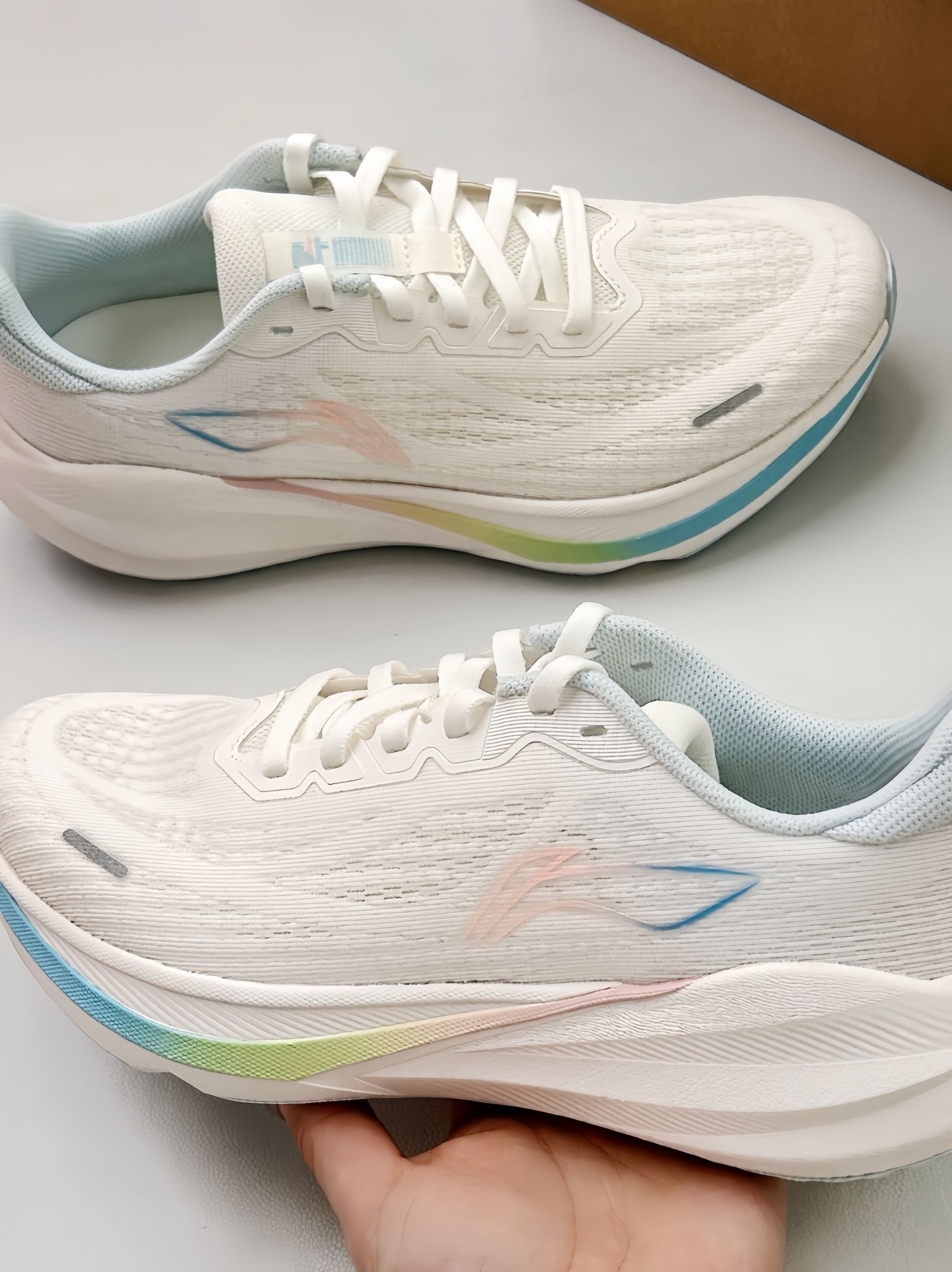 马上春天就到啦🍃给自己安排一双跑鞋咯 介双李宁小白跑鞋👟还不错 鞋底软软哒~穿起来好舒服呀!!! 配色还是蛮协调滴😍 不错✓ 感觉是好适合🈴春天的颜色 过年也可以🉑穿 百搭款式 好搭配 体测什么的都可以穿