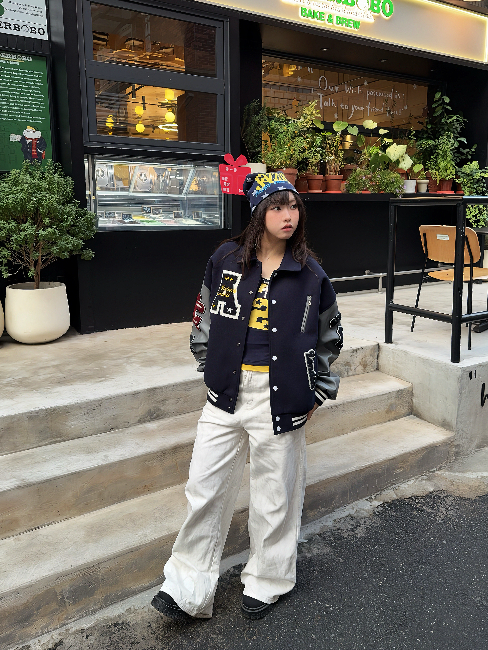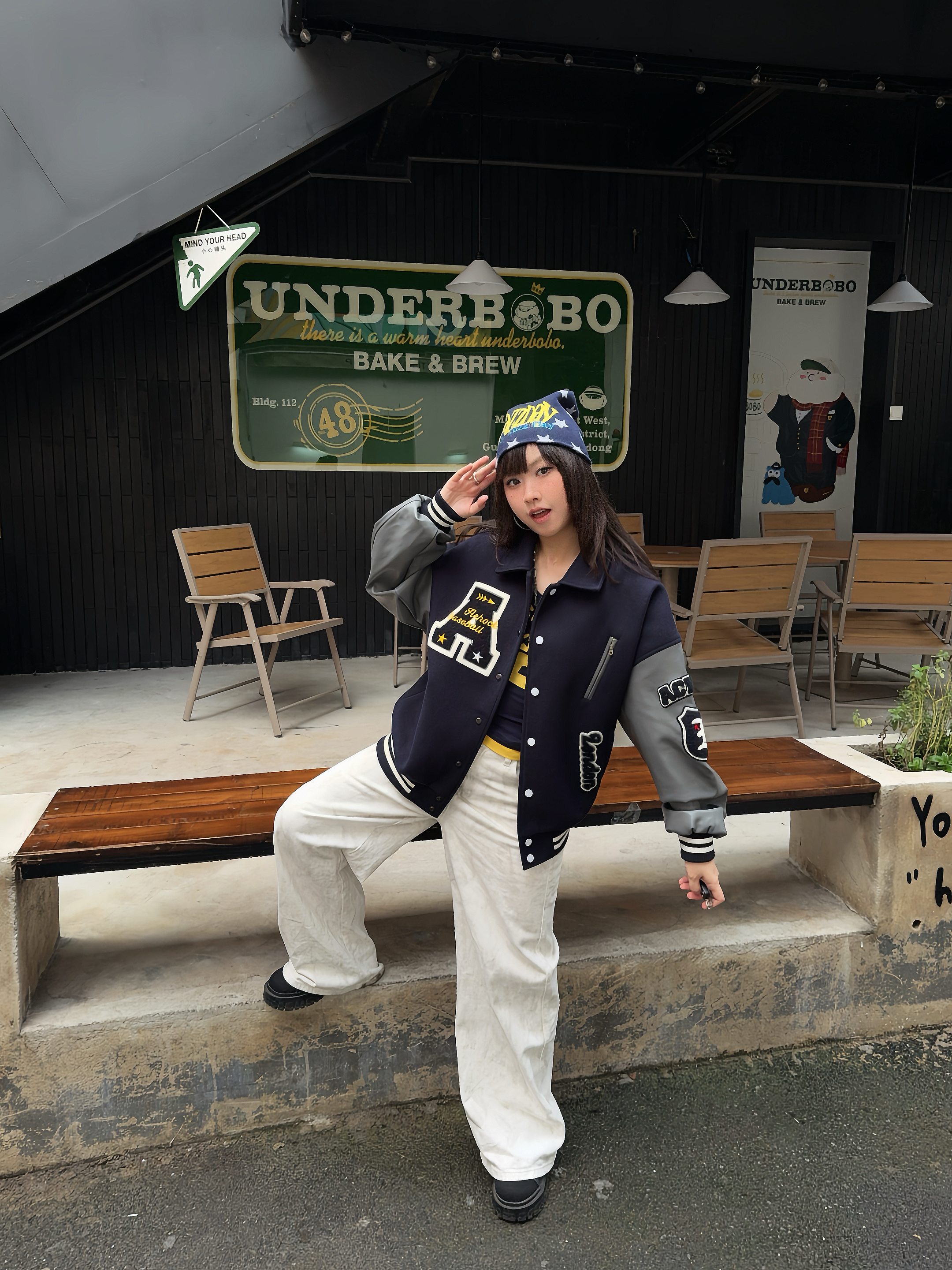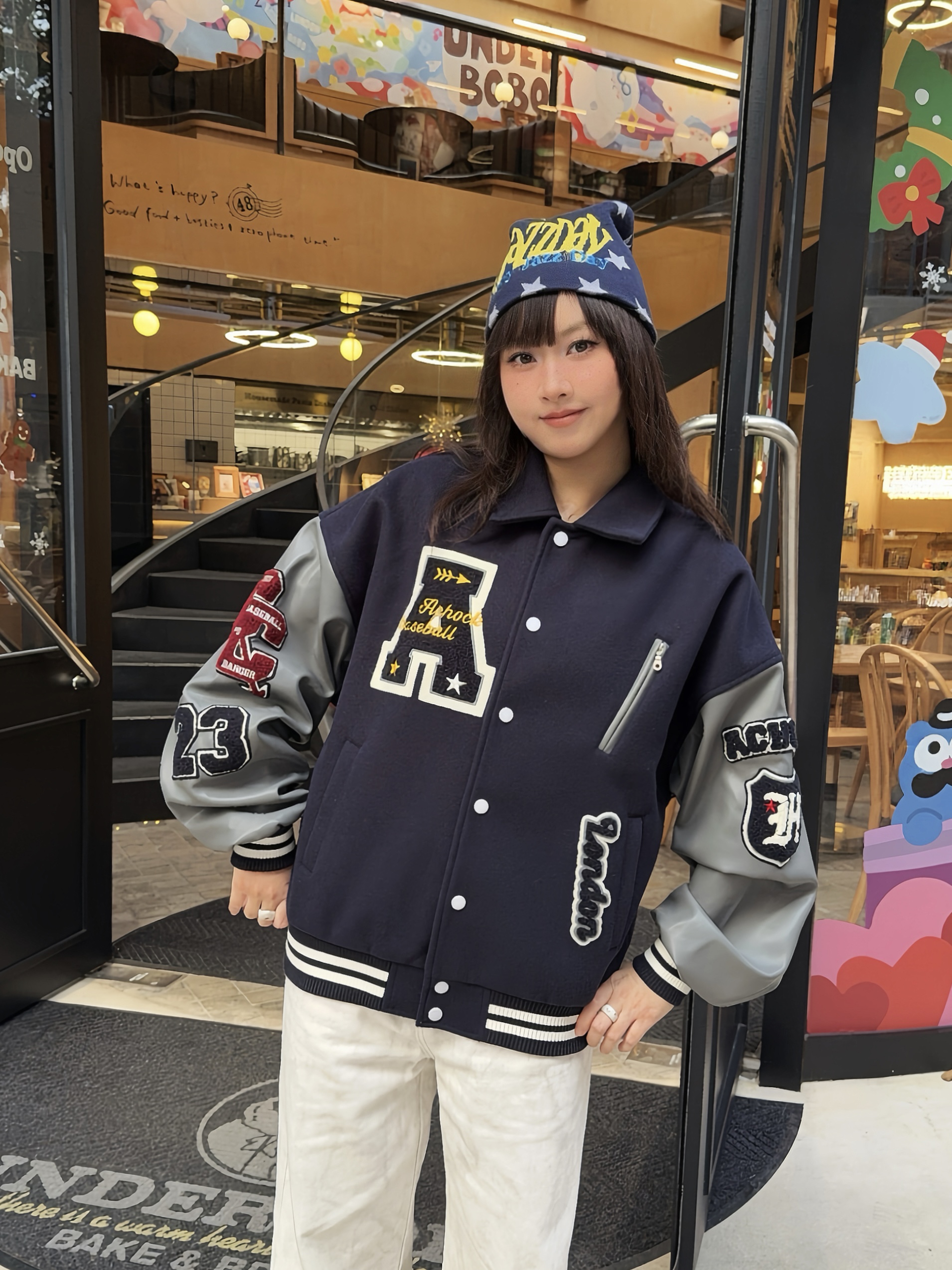 我的私藏棒球服外套穿搭⚾️ 📎秋冬少不了Achock棒球服外套,这件是蓝灰撞色,复古街头感💯,上身版型挺阔很有质感,搭配了同色系内搭+针织帽,这个冬天时髦出街啦~