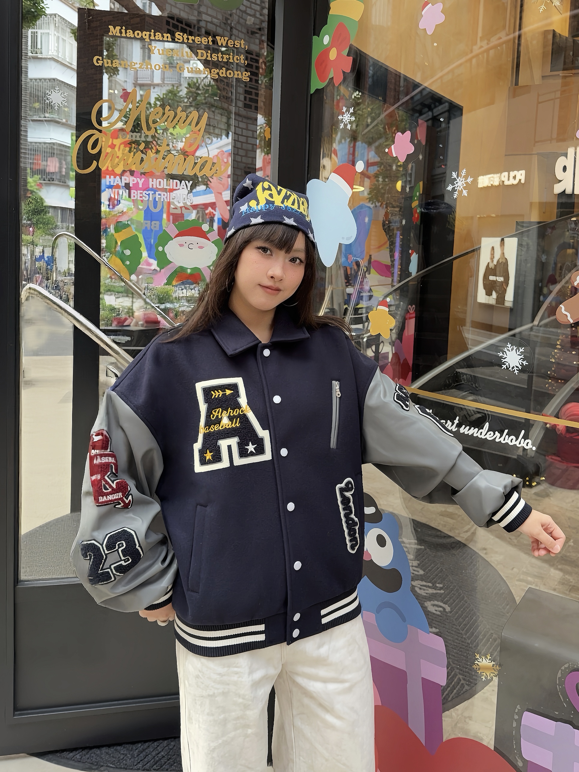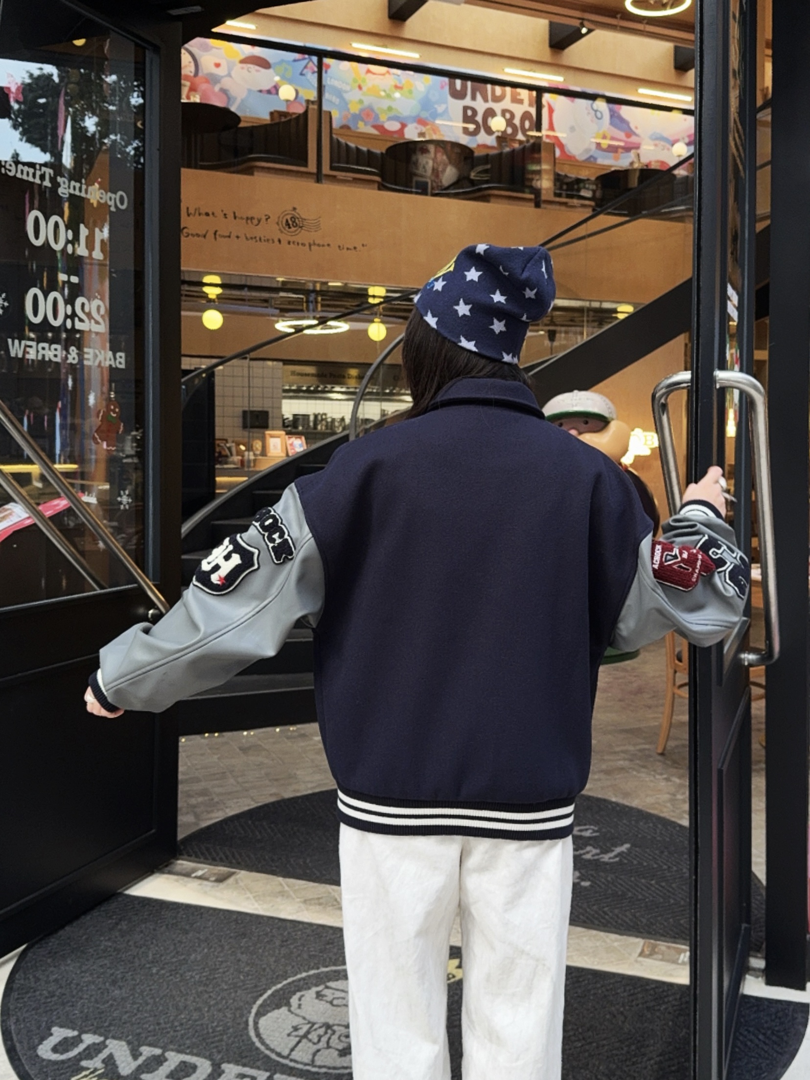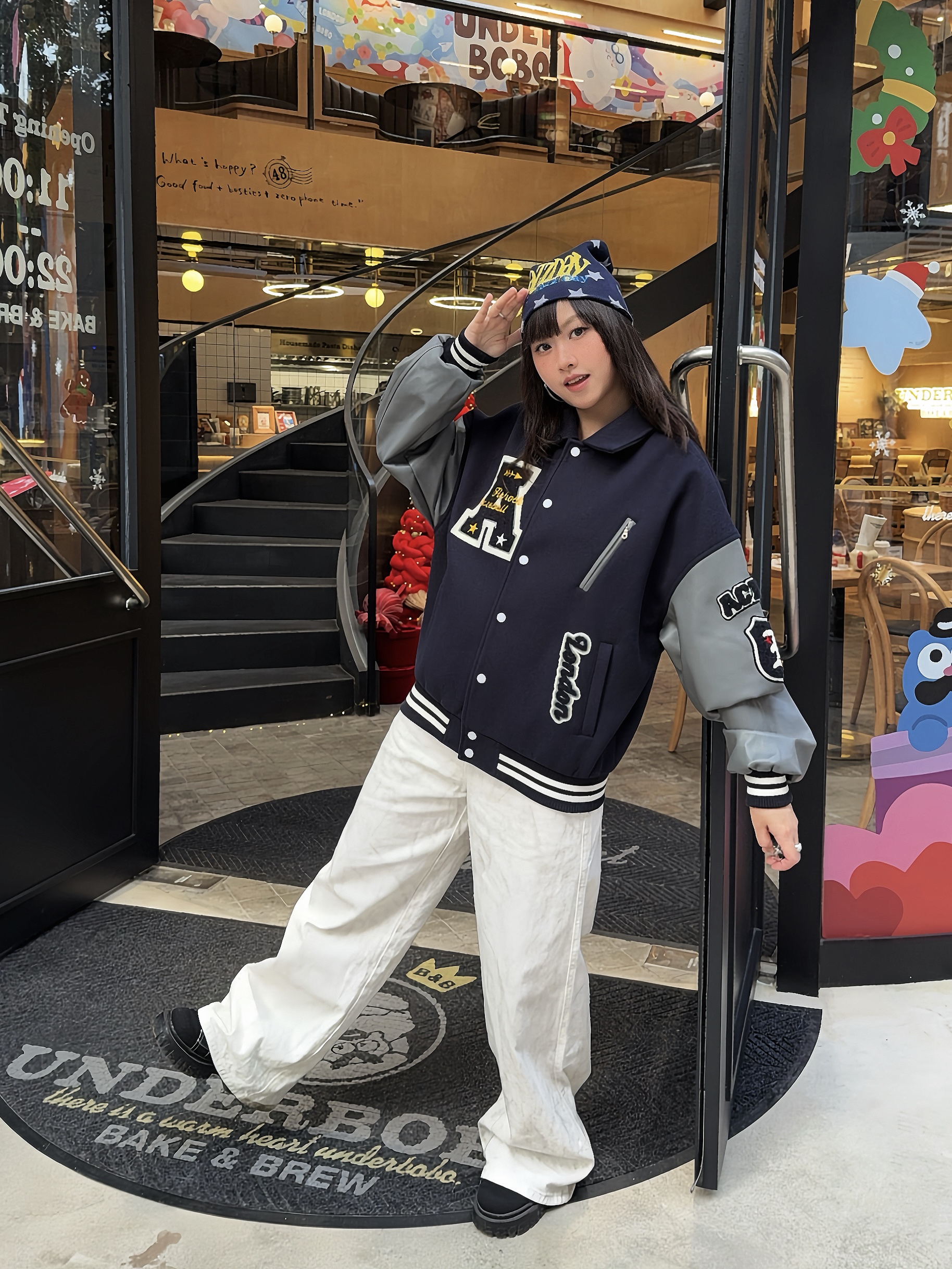我的私藏棒球服外套穿搭⚾️ 📎秋冬少不了Achock棒球服外套,这件是蓝灰撞色,复古街头感💯,上身版型挺阔很有质感,搭配了同色系内搭+针织帽,这个冬天时髦出街啦~