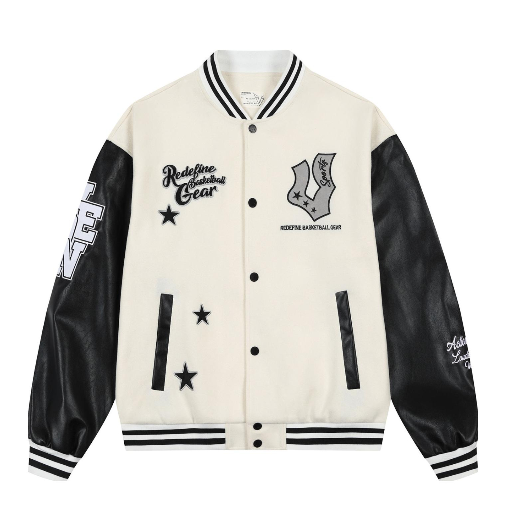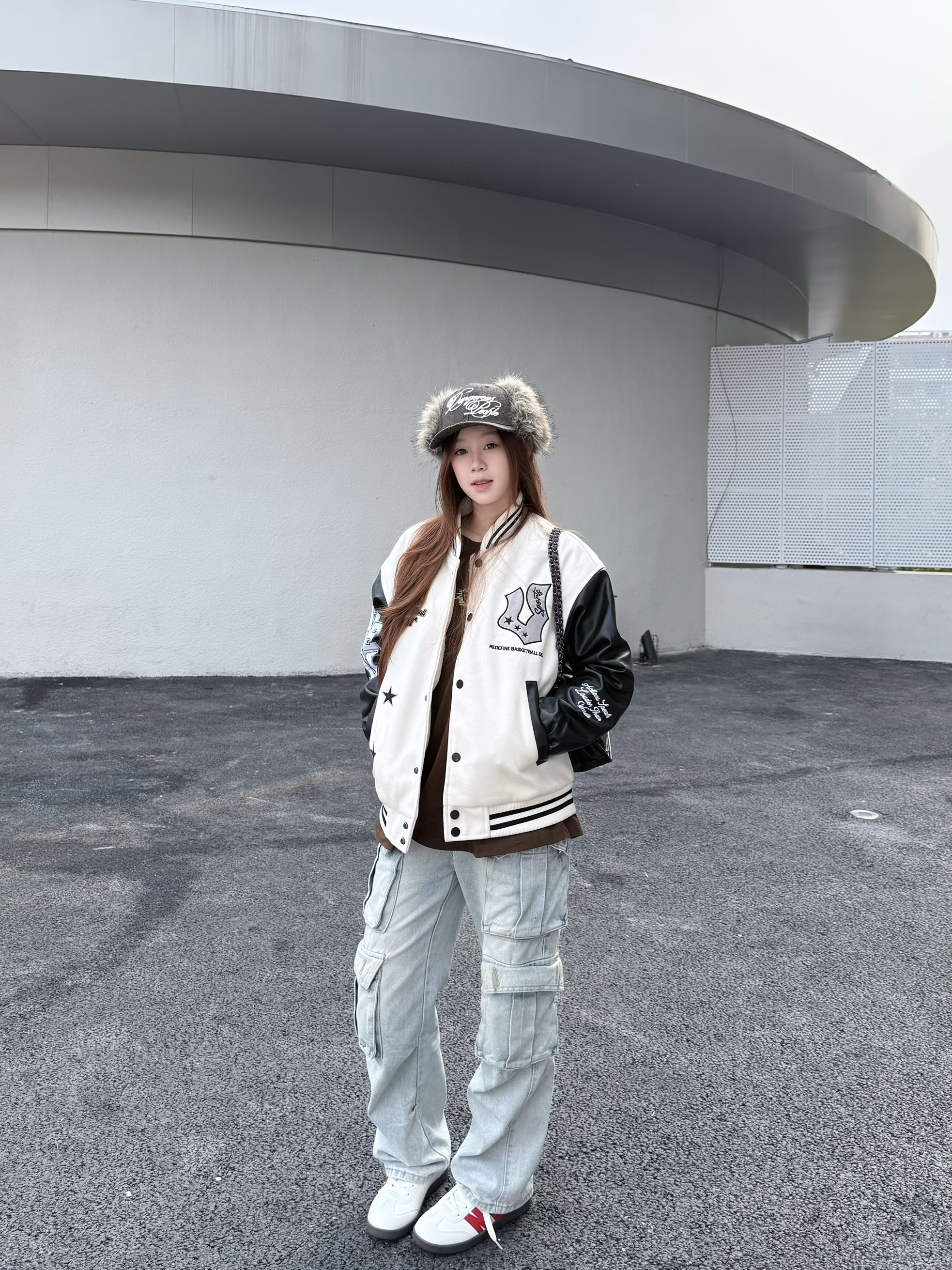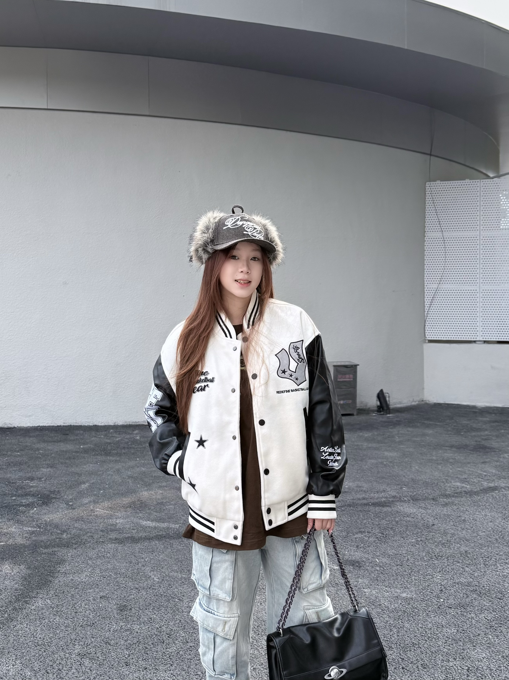 维的星驰棒球服真的太好穿了 宽松但不邋遢的随性版型 一上身气质就立住了🆗 ▪️整体设计是撞色+立体刺绣字母,细节在线 近看更有质感,PU皮袖一穿就是美式复古氛围🤠 ▪️它最大的优点就是百!搭!白黑配色不容易踩雷,15~23℃穿刚刚好,里面穿一件T恤或薄卫衣就很舒服啦👔 我160/45kg穿最小码哦