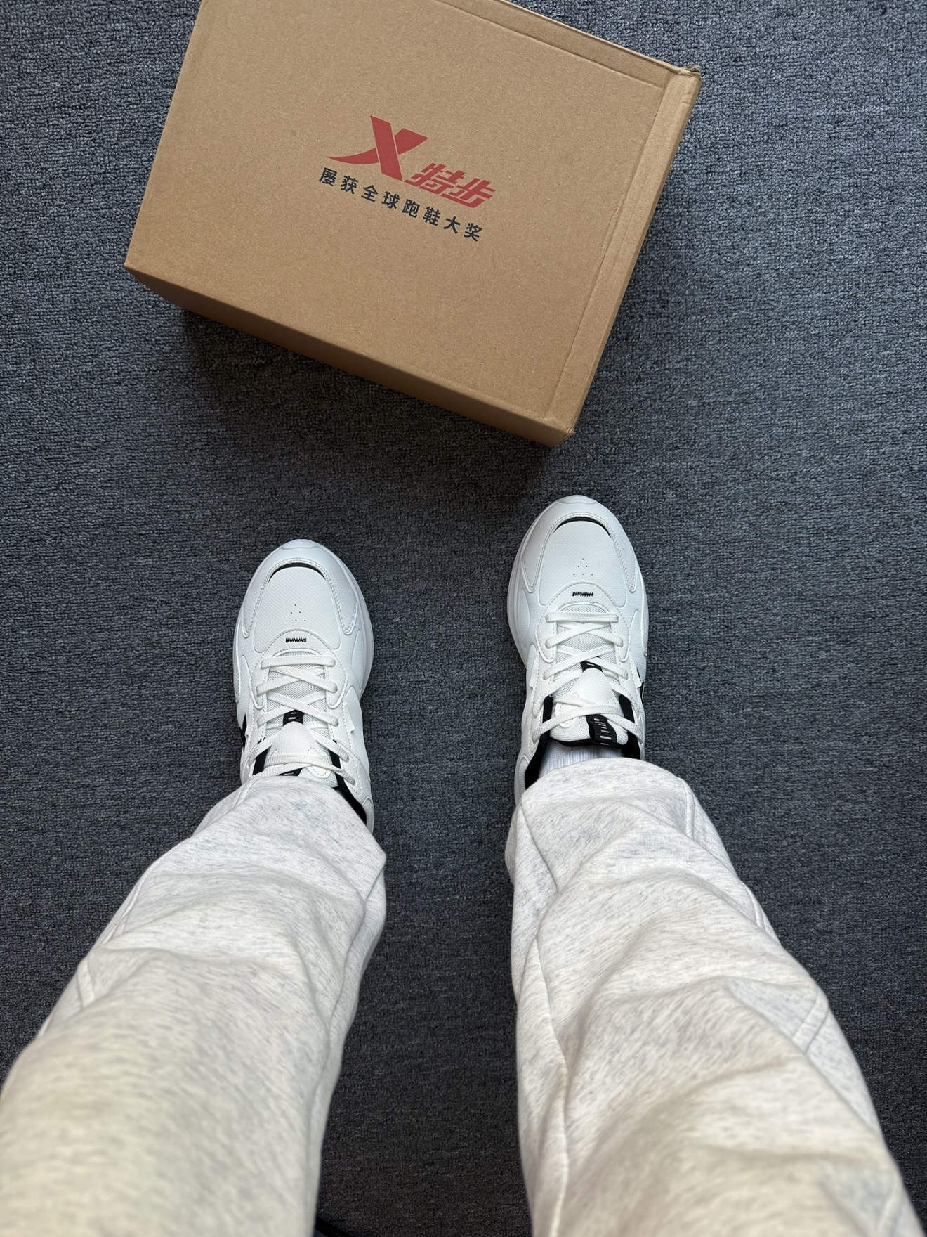 - 潮流穿搭🤠 选择 特步 复古「跑鞋」👞 外观:鞋面为白色 侧面黑色logo 流线型设计 材质:鞋面为合成革鞋面 外底为橡胶 性能:增高约 3.5 cm 增高效果还不错 脚感:脚感韧弹 慢跑和通勤都合适 尺码:正常选择 鞋楦舒适 适配:上班族 & 学生党 皮革鞋面很好打理 鞋面强度在线 秋冬通勤穿 防水防污💦 双11送礼物很合适🌟 目前的性价比真的很高❗️ 身高|体重|鞋码 :172...