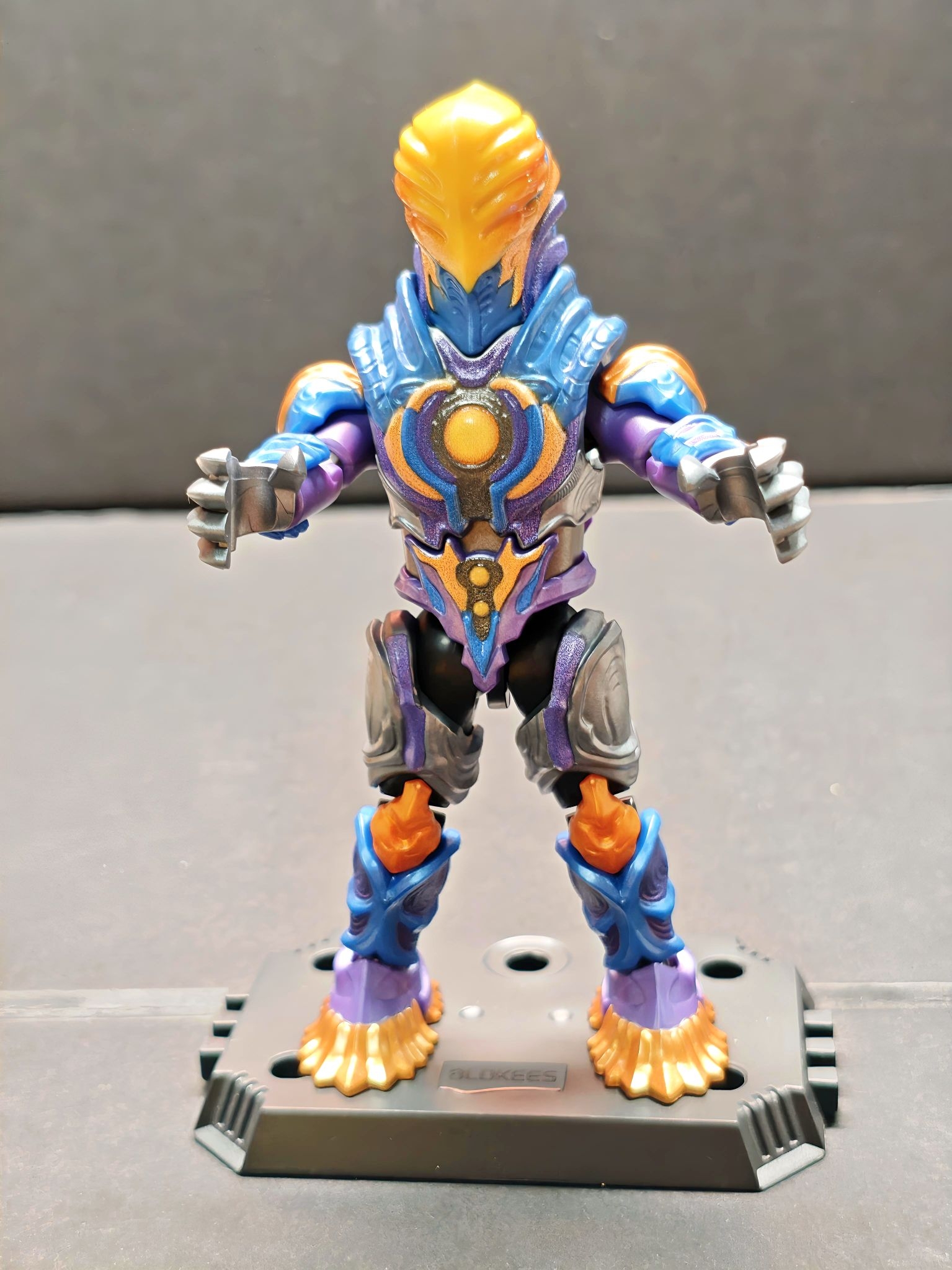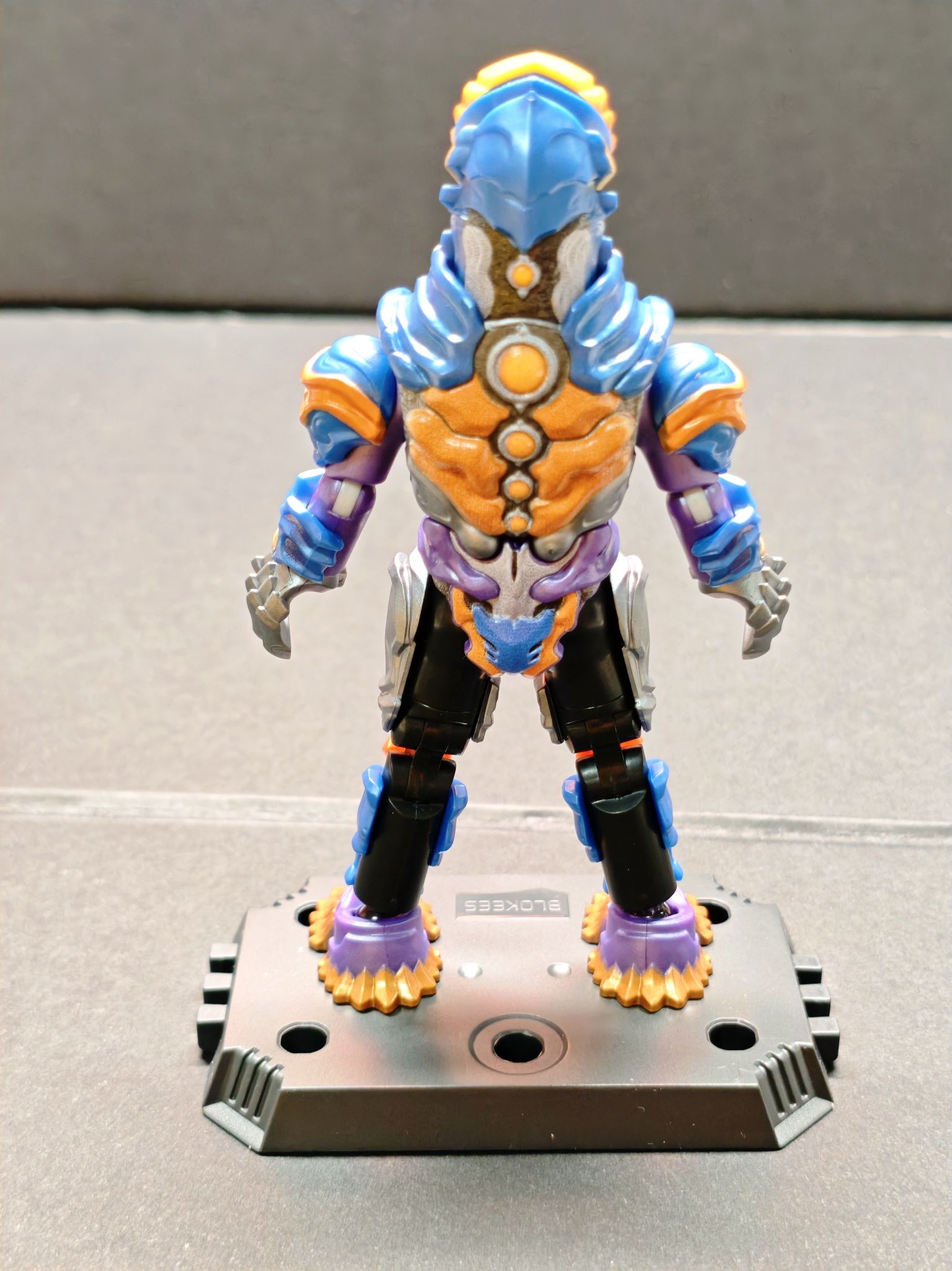 今天拆到布鲁可奥特曼里的阿布索留特·迪亚波罗啦!蓝紫橙撞色超有冲击力,装甲纹理也做得很细腻,往展示架上一摆,气场直接拉满~
