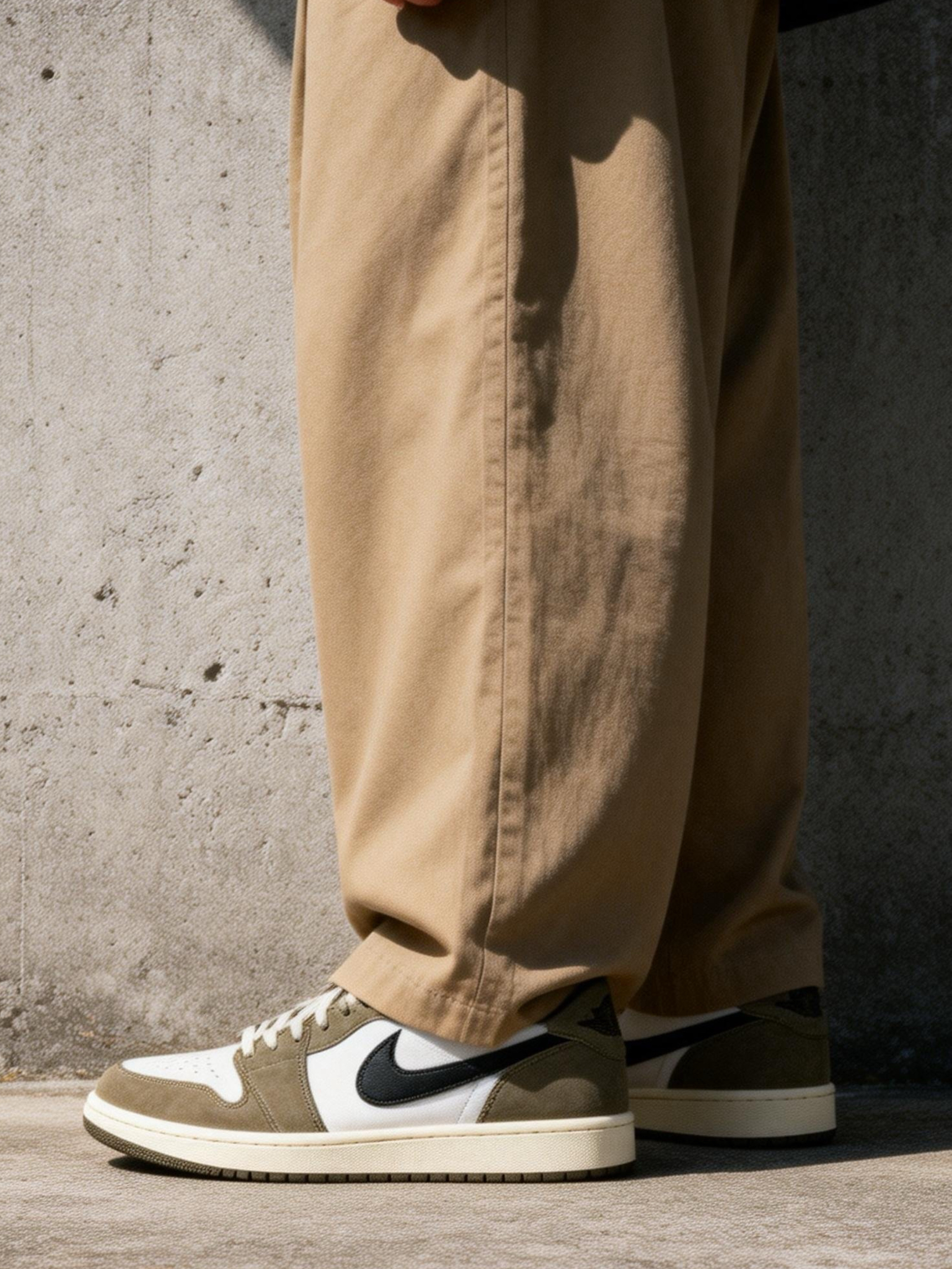 橄榄绿麂皮+白色皮革+黑色Swoosh的配色组合非常耐看,麂皮材质自带高级感,整体色调偏大地色系,秋冬季节搭配深色或卡其色系裤装都很协调,属于不易过时的经典配色。 低帮设计比高帮更显腿长,对身高和腿型要求更低,日常搭配工装裤、牛仔裤、运动裤都合适,男女皆可穿,属于"怎么搭都不出错"的鞋型。