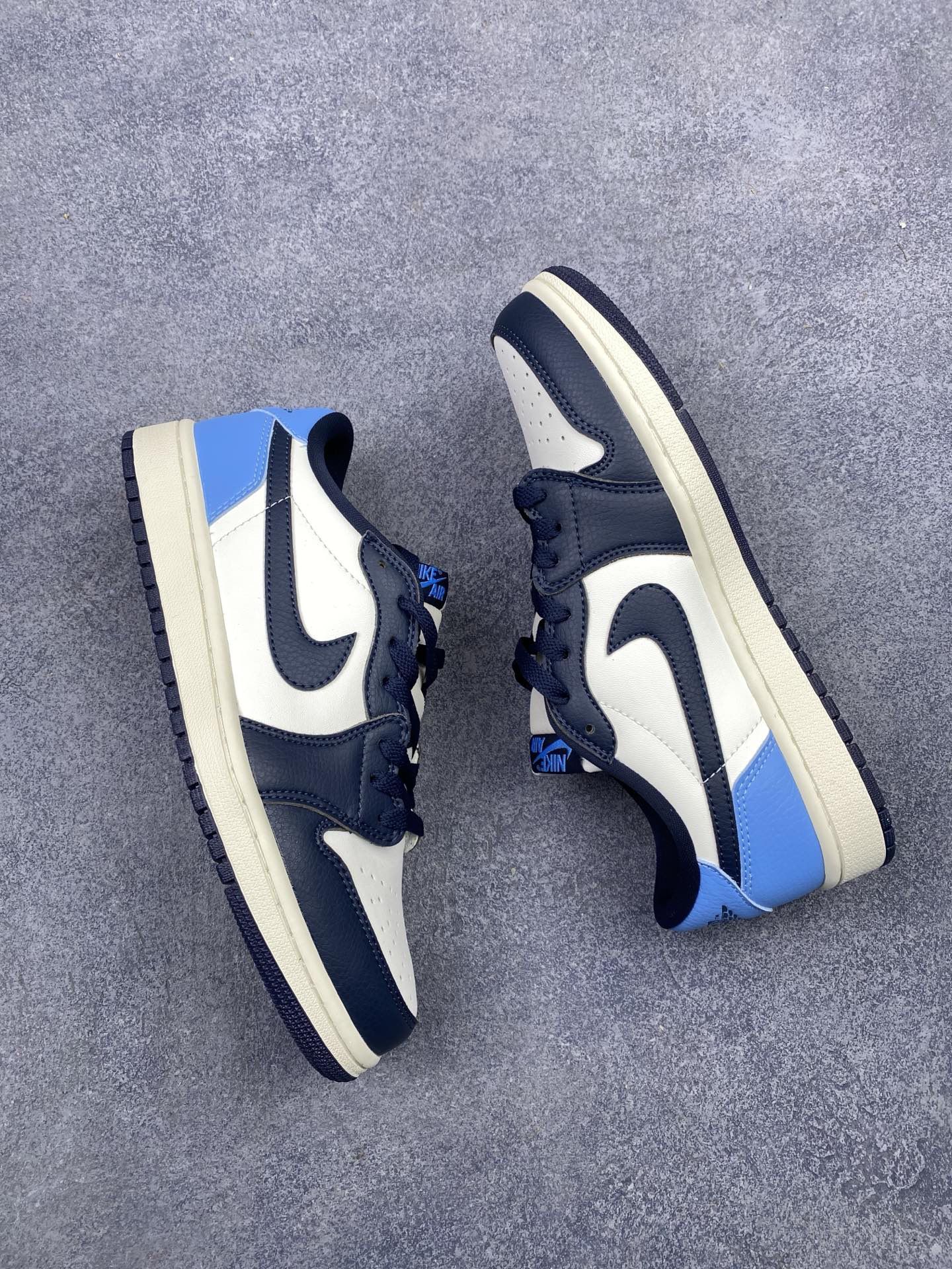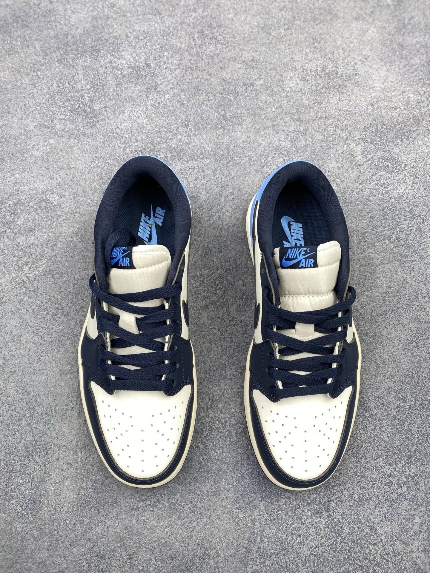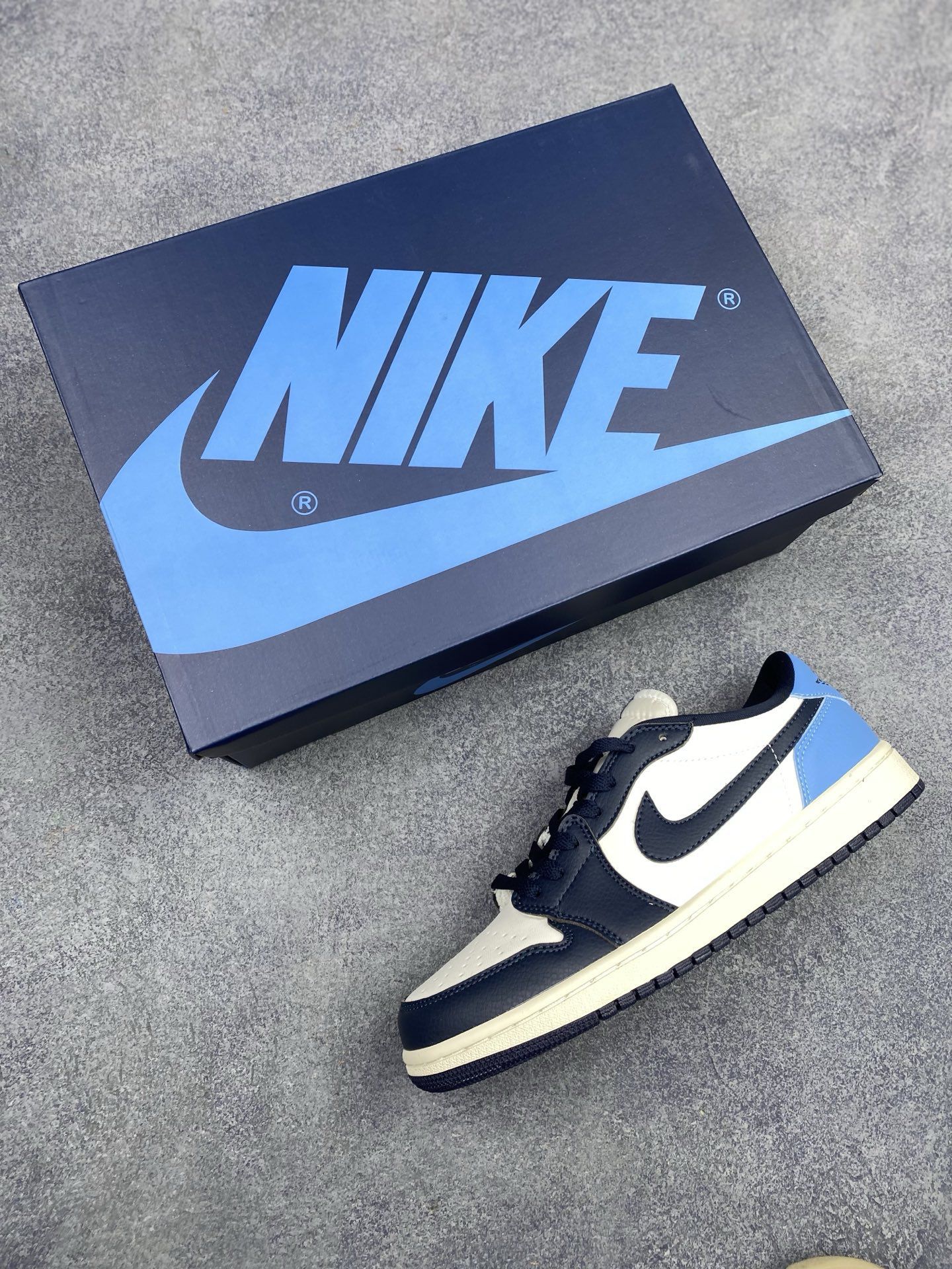 这双AJ1米白+藏青+浅蓝的配色经典且低饱和度,兼具复古感与清爽度,不管是休闲裤、牛仔裤还是运动装都能适配,风格兼容性强;低帮版型比高帮更轻便利落,日常穿搭无束缚感。